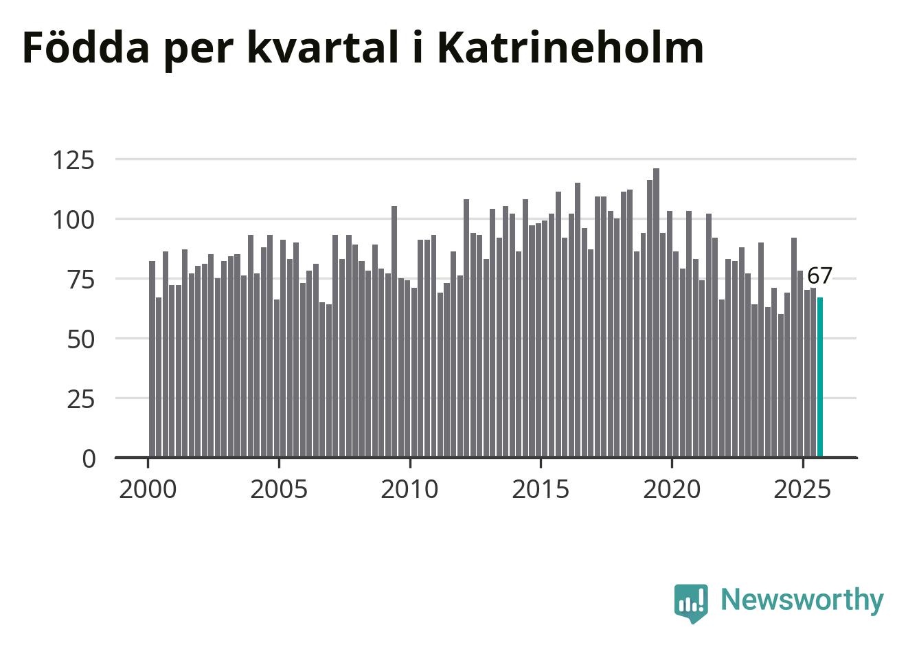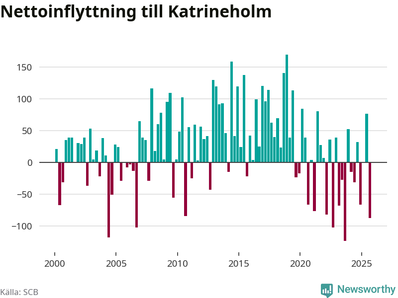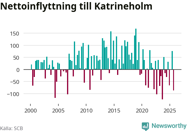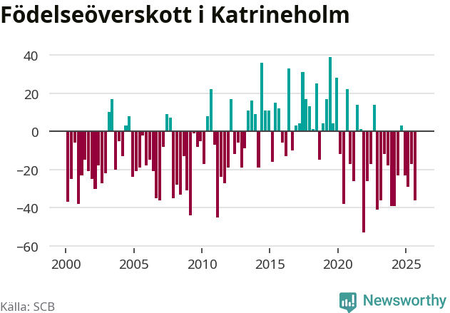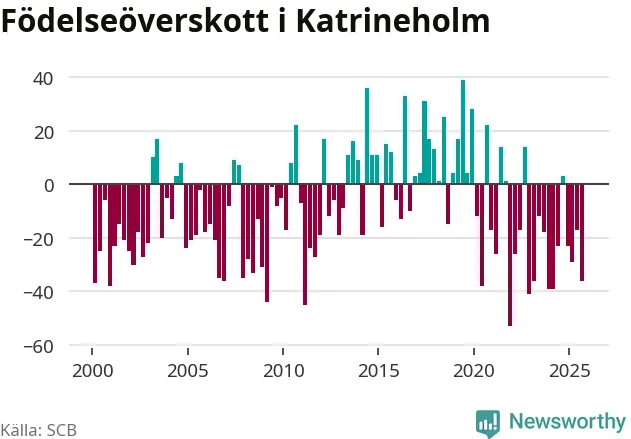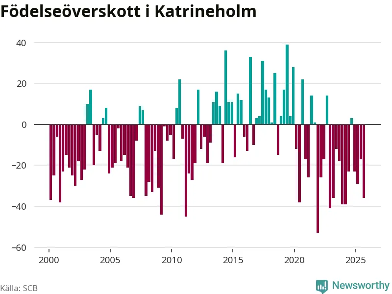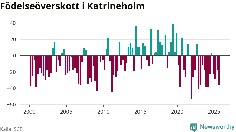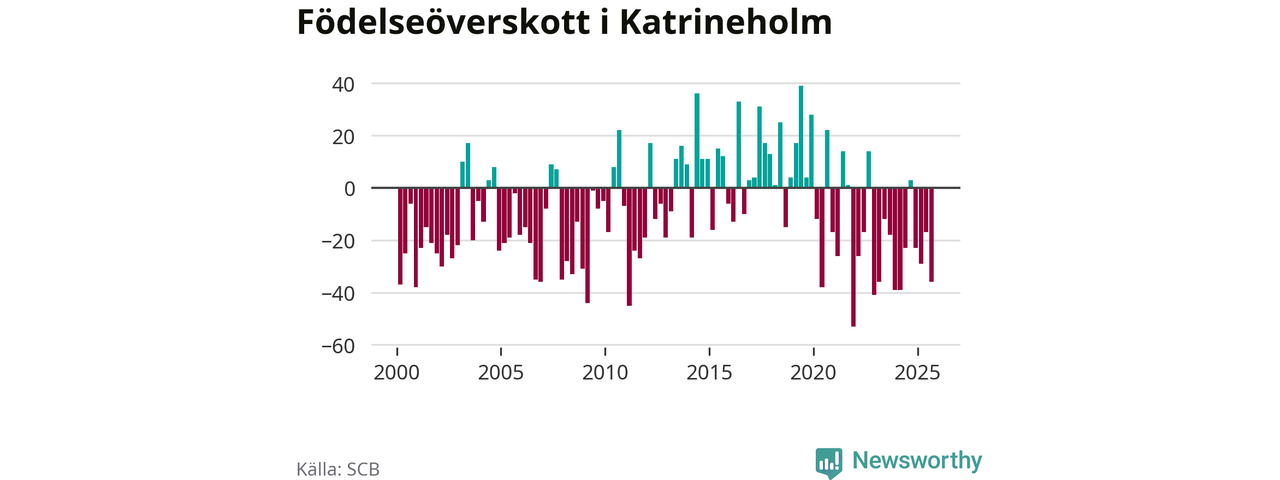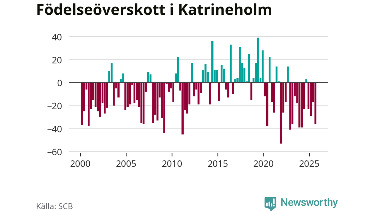 Enligt SCB:s siffror föddes 67 barn i Katrineholm under det senaste kvartalet. Samtidigt avled 103 personer. Katrineholm hade alltså ett negativt födelsenetto. Historiskt sett har kommunen haft ungefär lika många kvartal med positivt flyttnetto som negativt.