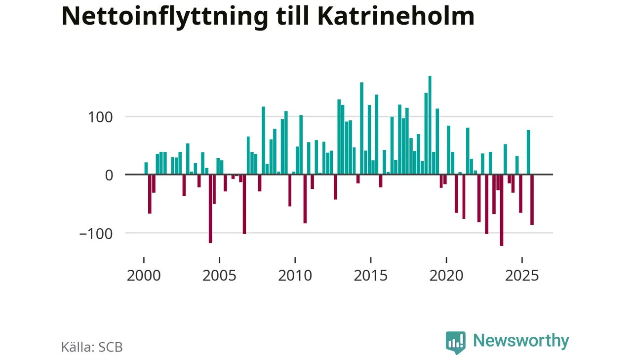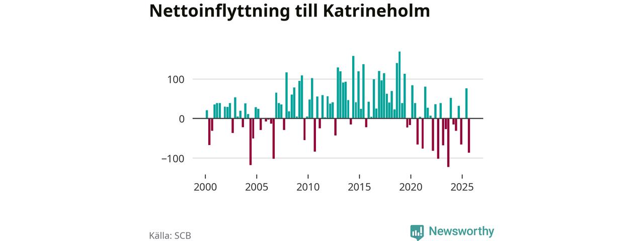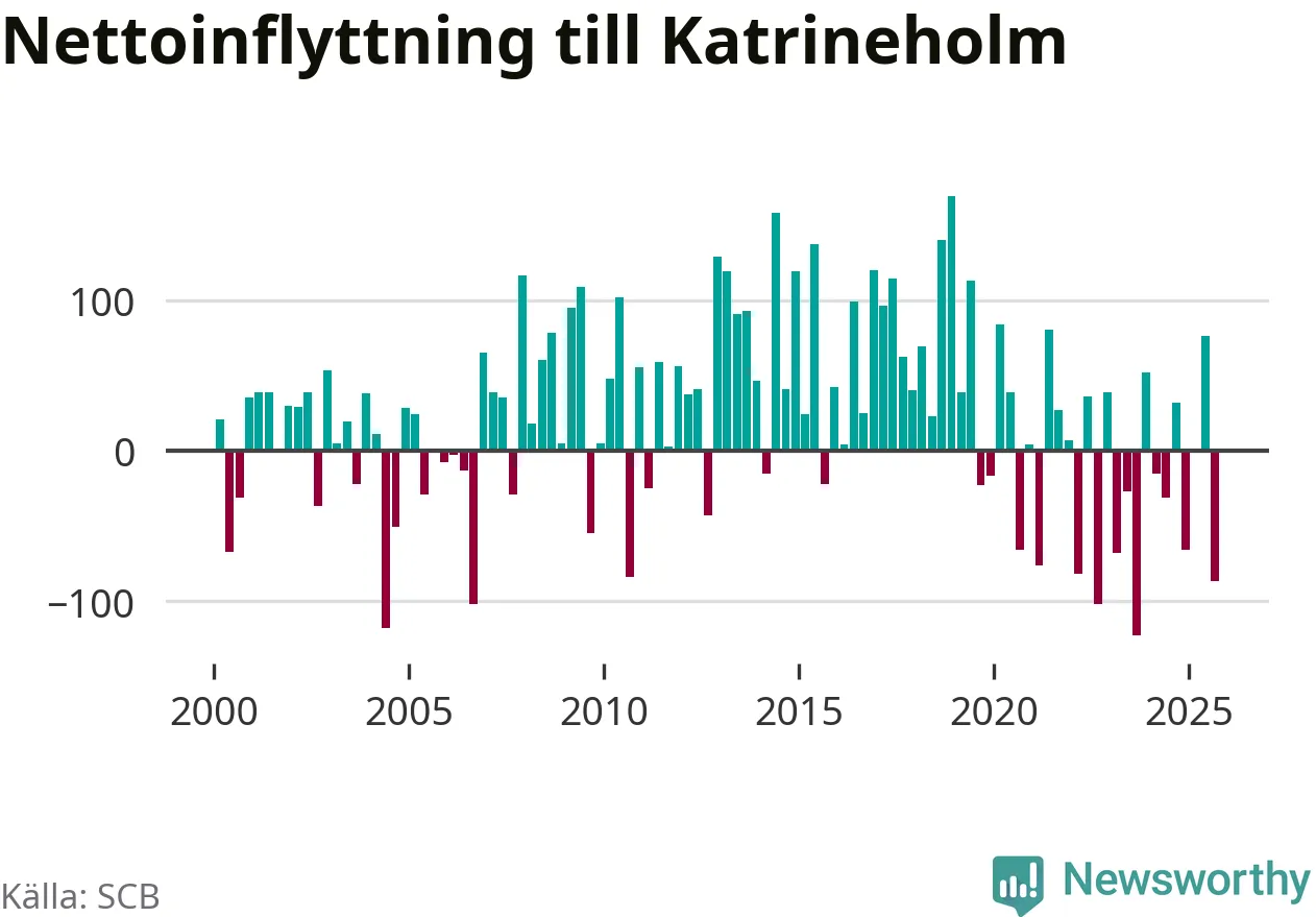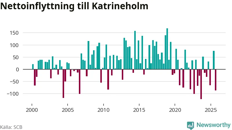 Under tredje kvartalet 2025 flyttade 454 personer till kommunen medan 541 personer flyttade därifrån. Det är historiskt sett en stor utflyttning under ett kvartal. Sedan seklets början har Katrineholm oftast haft ett positivt flyttnetto.