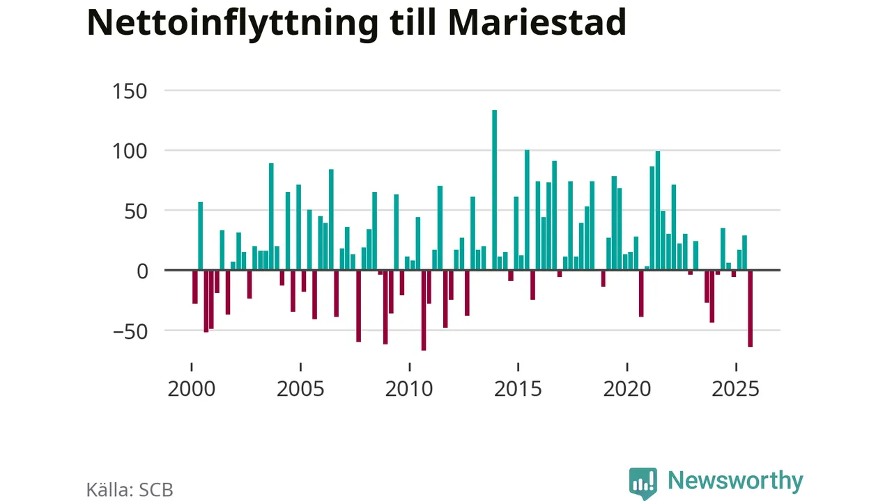 Antalet avlidna var större än antalet födda – och fler flyttade från än till Mariestads kommun. Befolkningen minskade under det tredje kvartalet 2025. Det visar nya siffror från SCB.