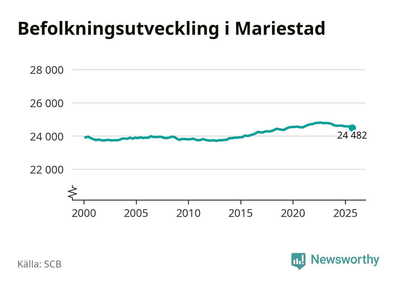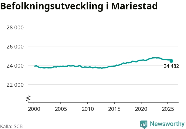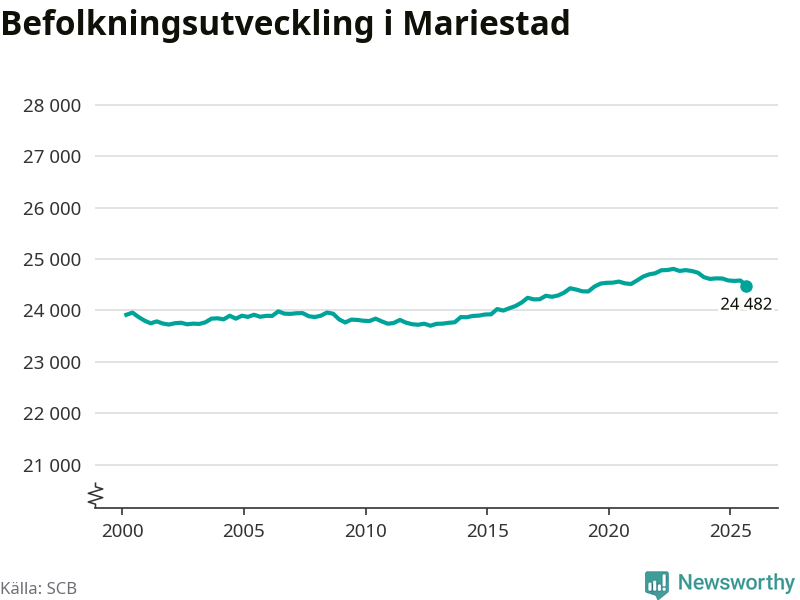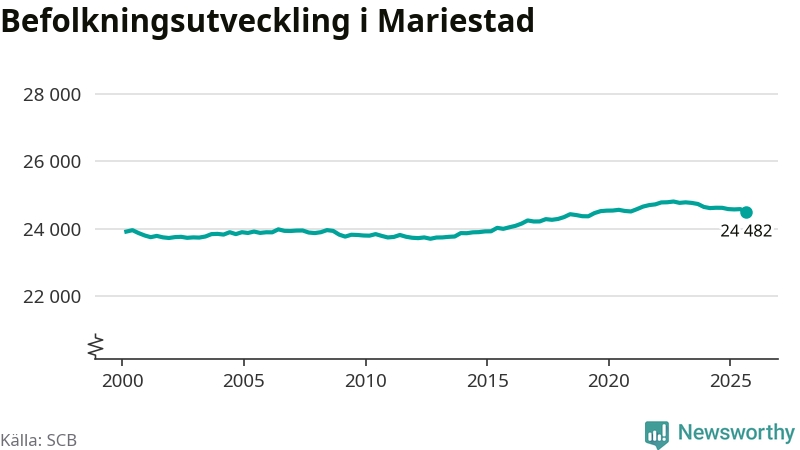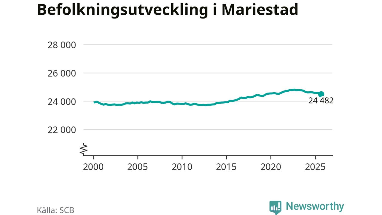 Befolkningen minskade i Mariestads kommun under det tredje kvartalet 2025. Den 30 september bodde enligt SCB:s senaste siffror 24 482 personer i kommunen, vilket är 100 färre än i slutet av andra kvartalet.