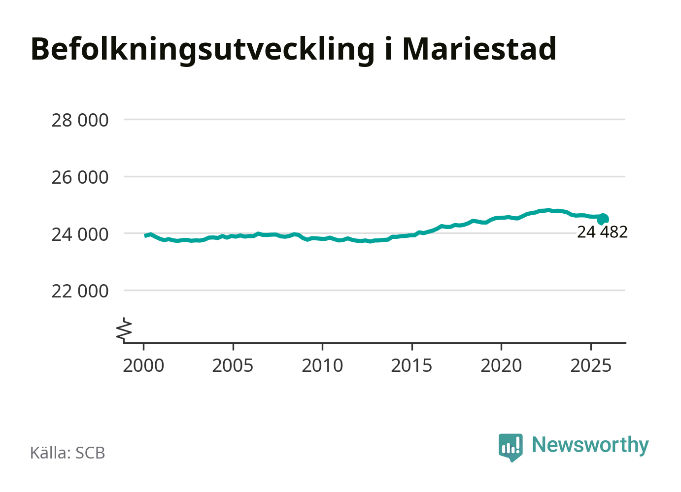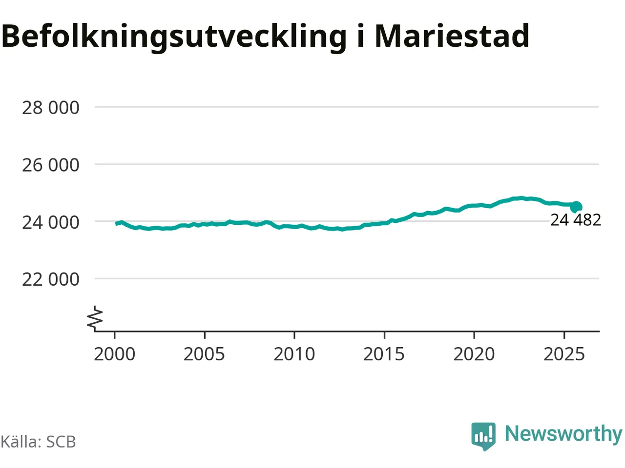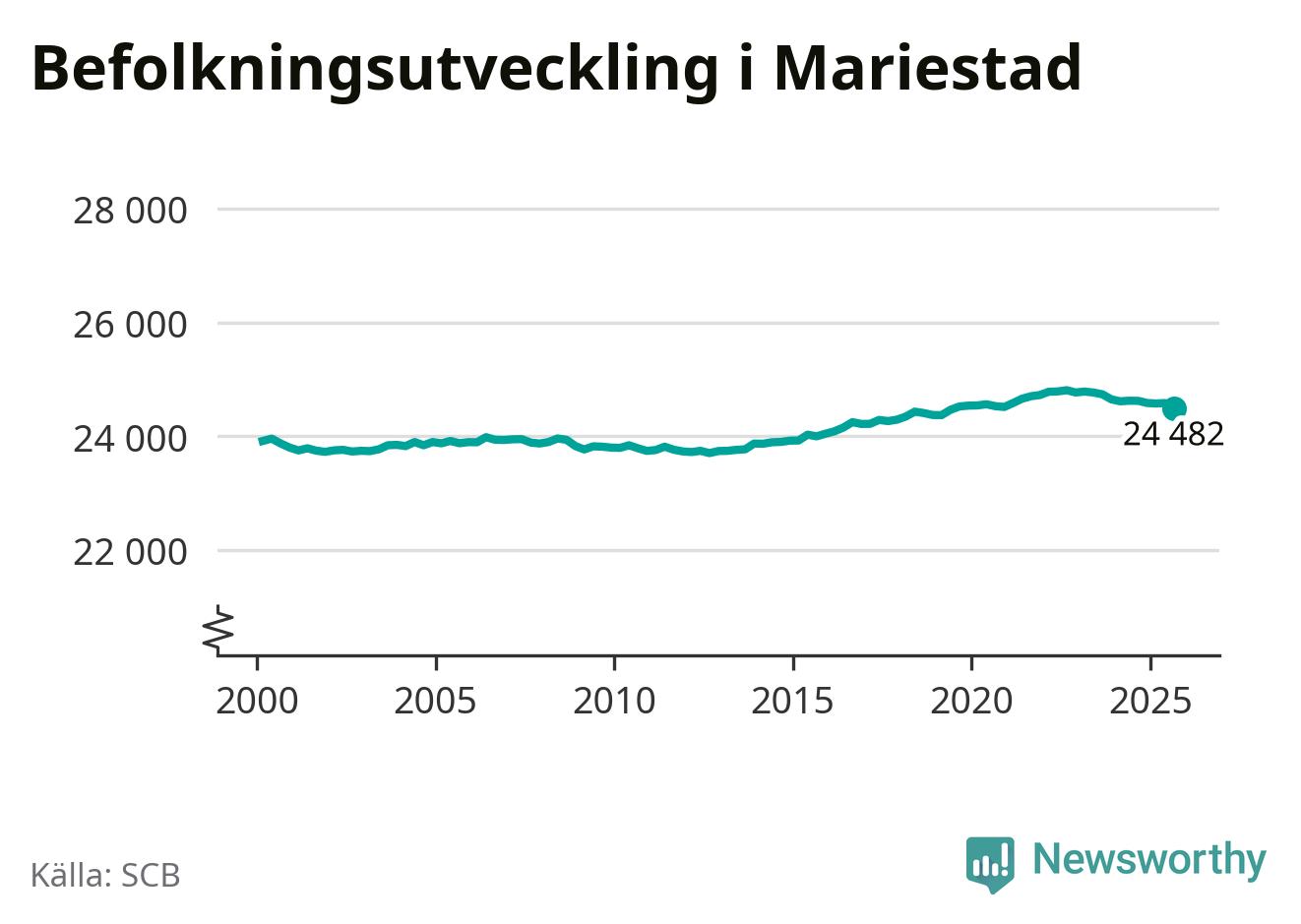 Befolkningen minskade i Mariestads kommun under det tredje kvartalet 2025. Den 30 september bodde enligt SCB:s senaste siffror 24 482 personer i kommunen, vilket är 100 färre än i slutet av andra kvartalet.