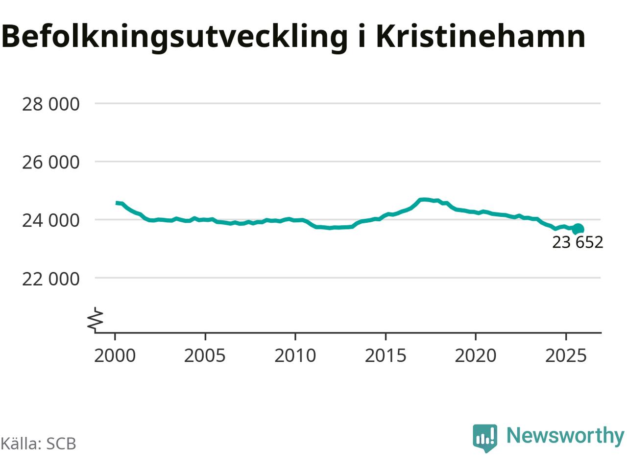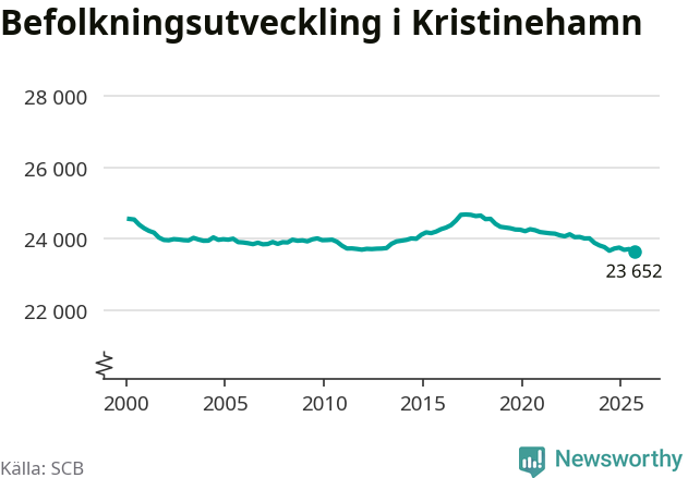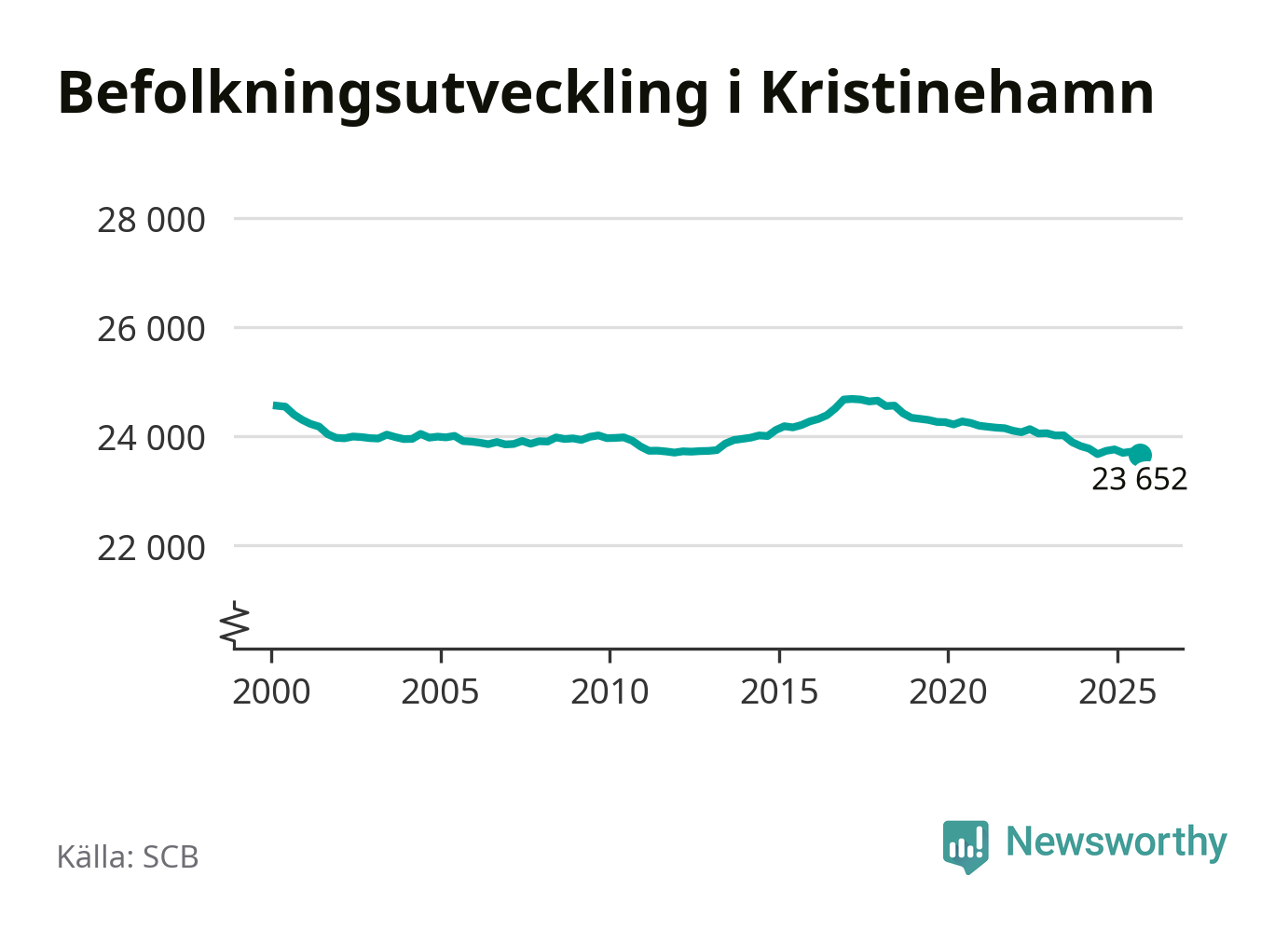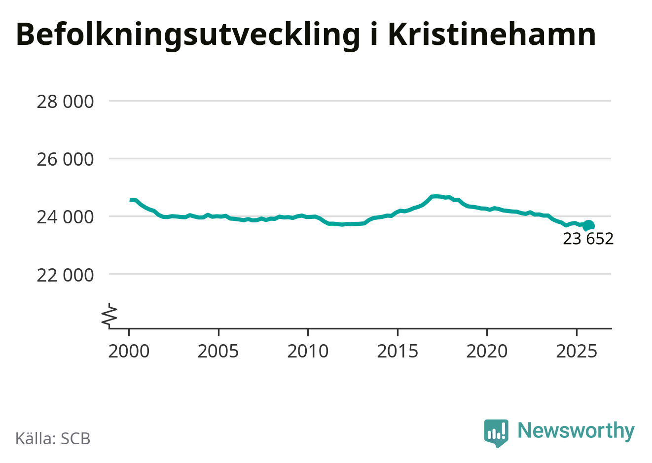 Befolkningen minskade i Kristinehamns kommun under det tredje kvartalet 2025. Den 30 september bodde enligt SCB:s senaste siffror 23 652 personer i kommunen, vilket är 63 färre än i slutet av andra kvartalet. Minskningen är procentuellt sett en av de största i Värmland.
