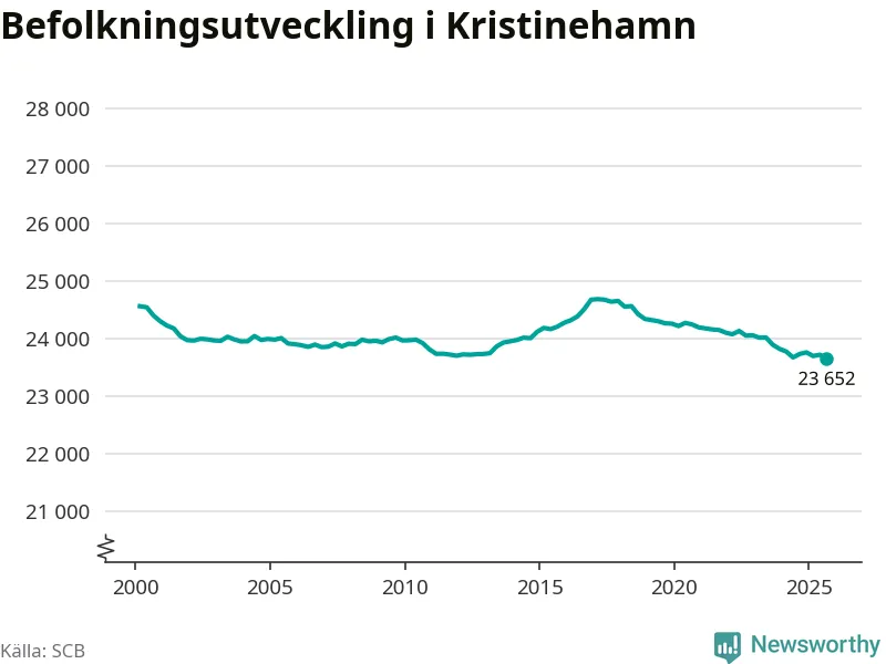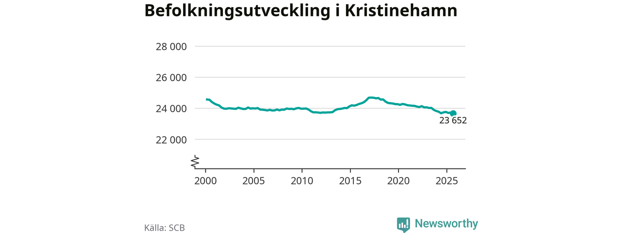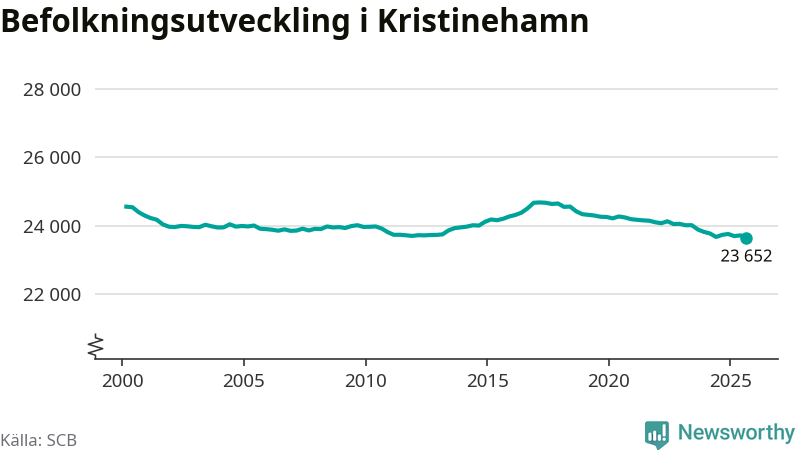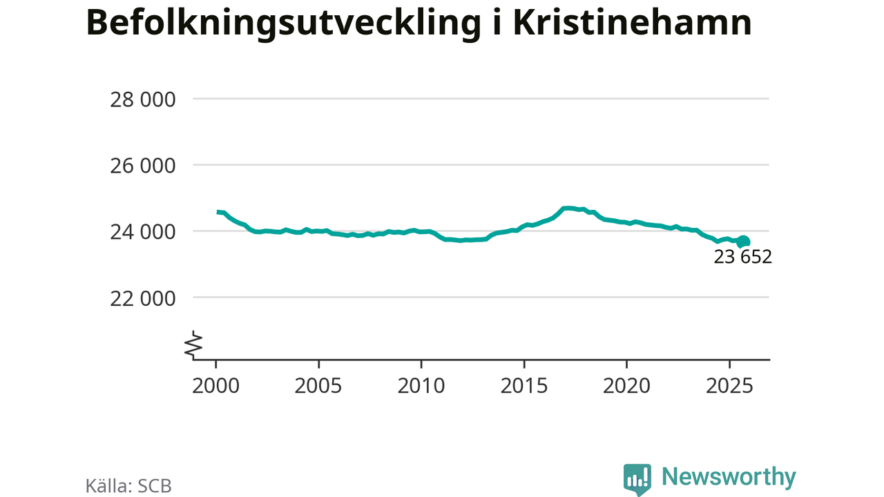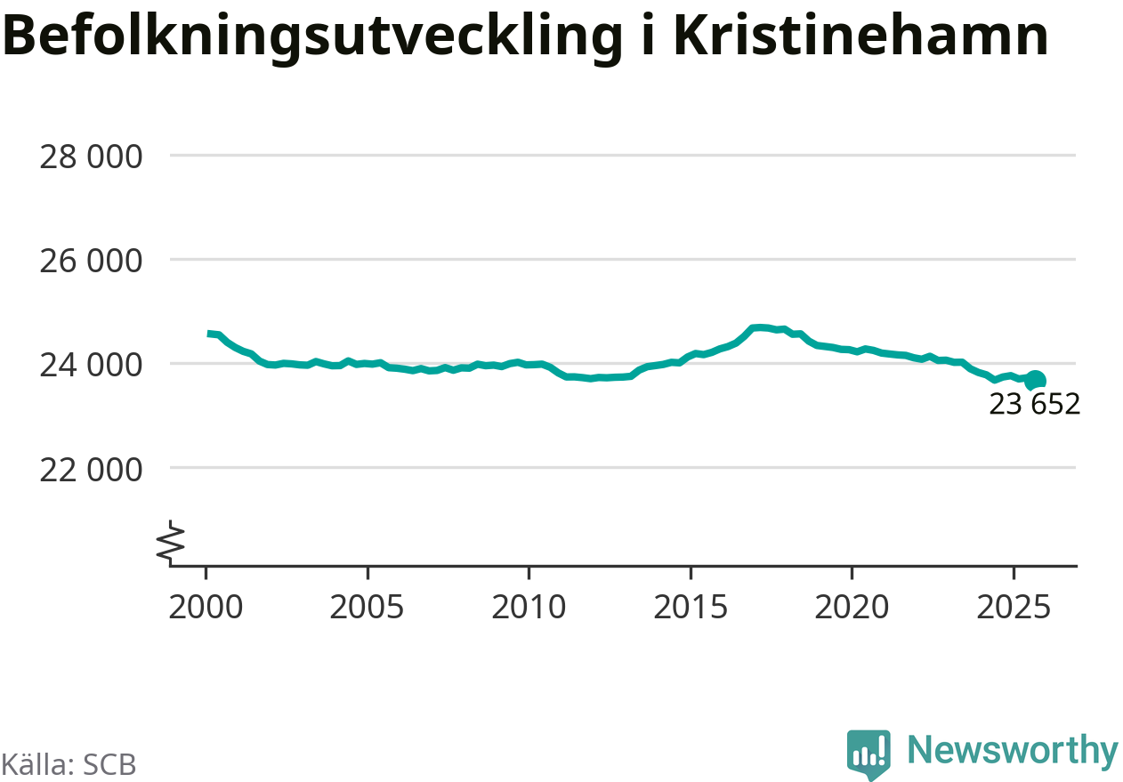 Befolkningen minskade i Kristinehamns kommun under det tredje kvartalet 2025. Den 30 september bodde enligt SCB:s senaste siffror 23 652 personer i kommunen, vilket är 63 färre än i slutet av andra kvartalet. Minskningen är procentuellt sett en av de största i Värmland.