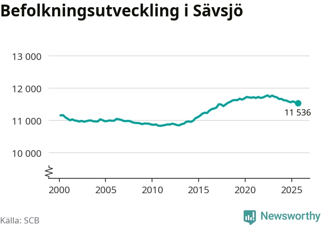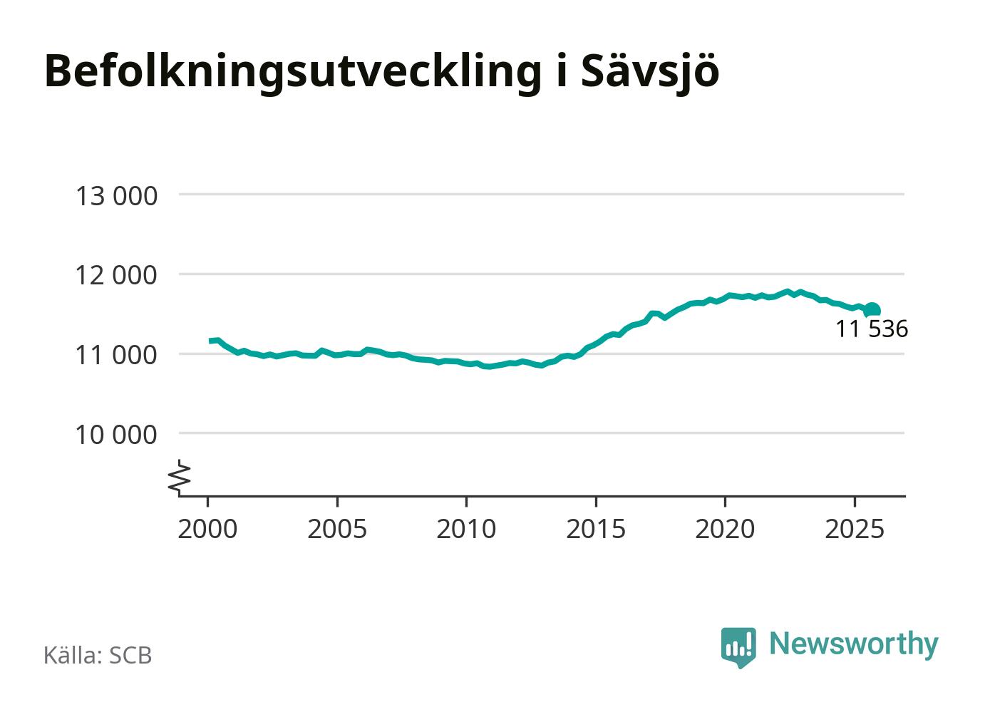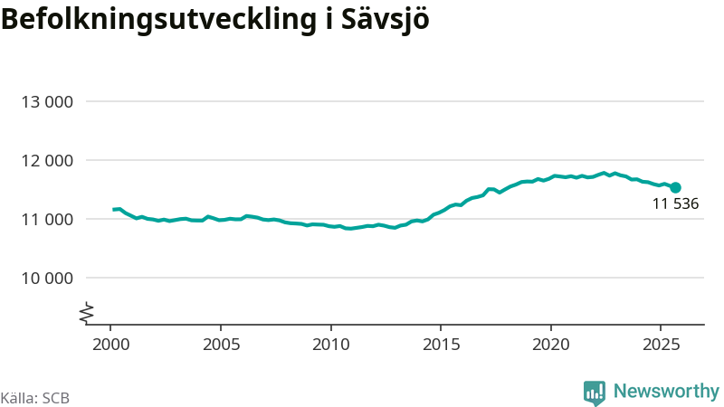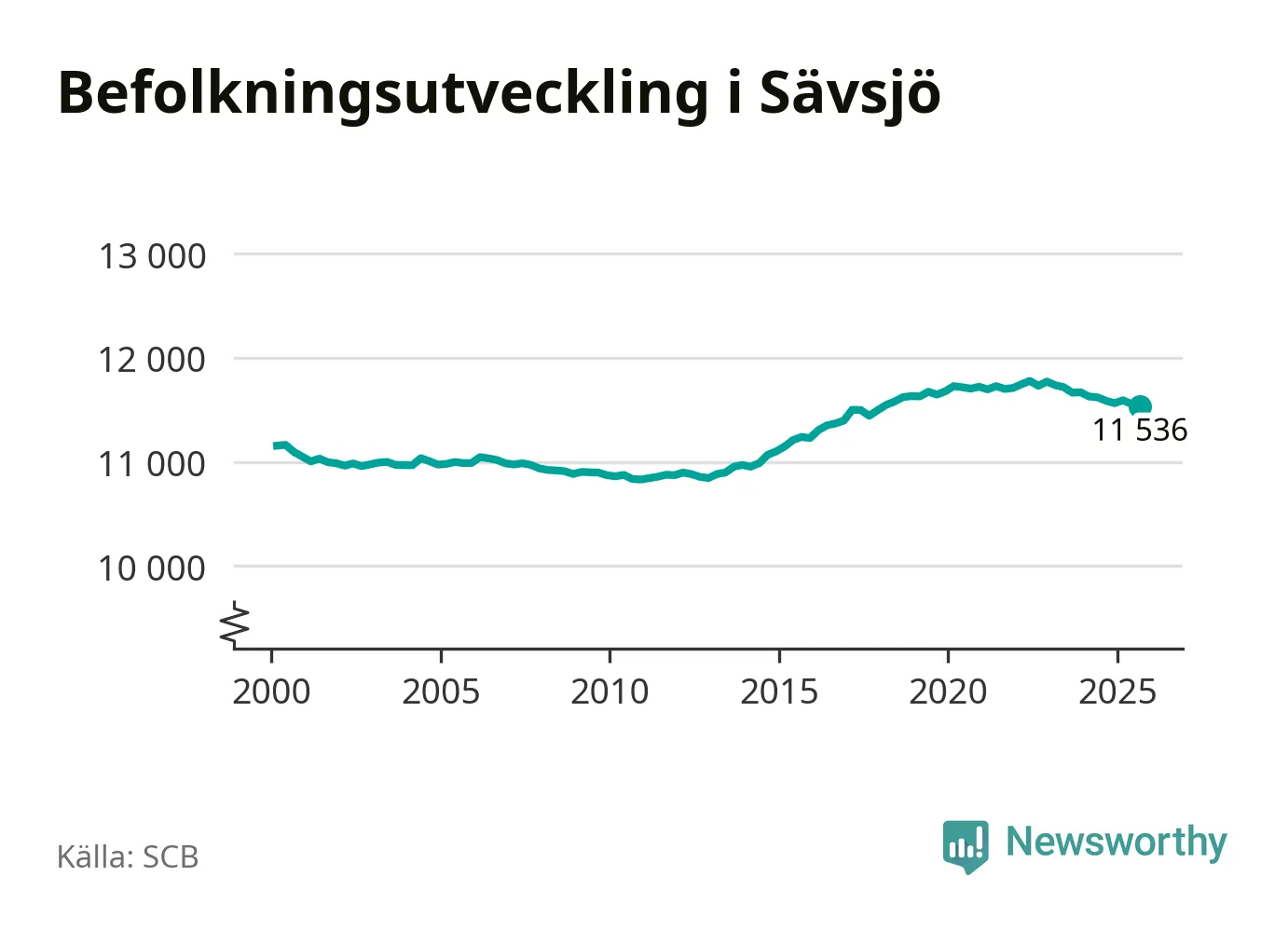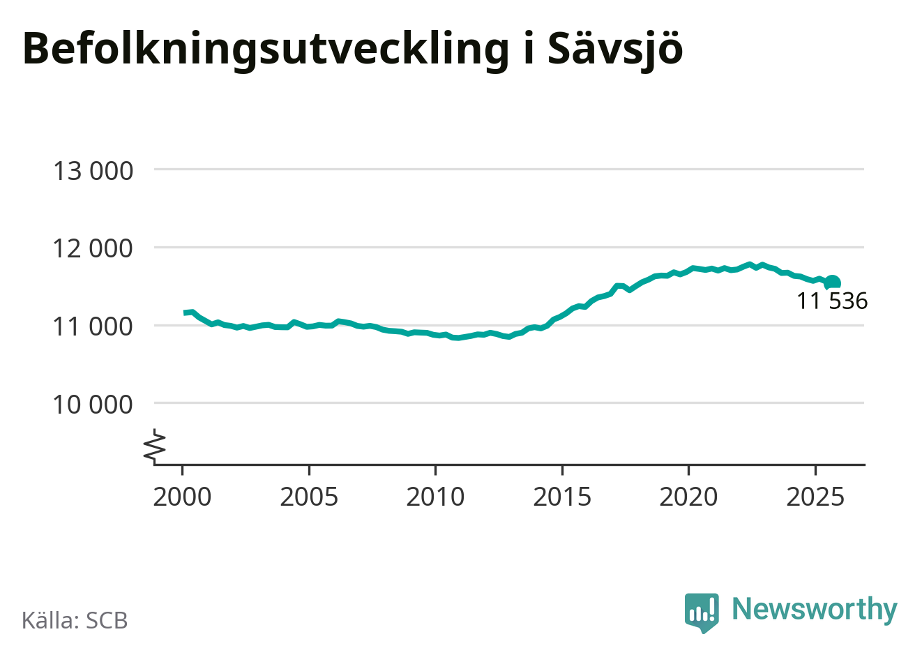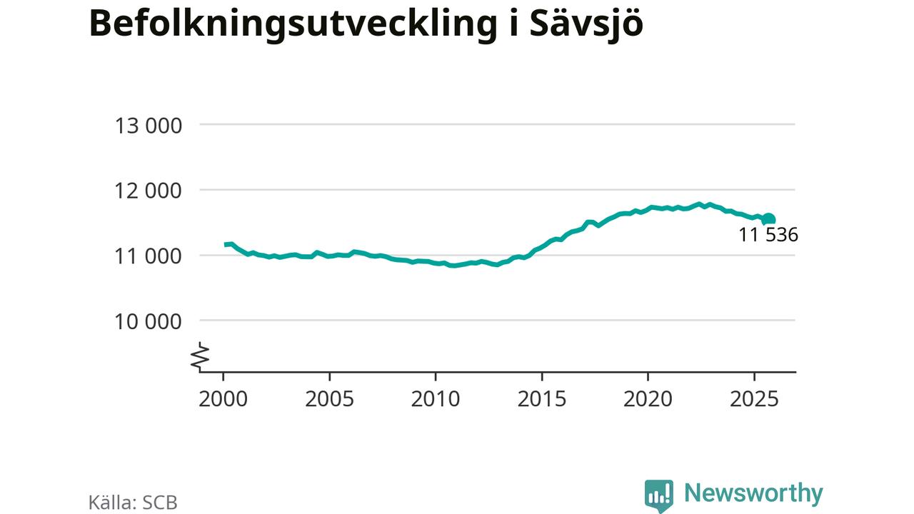 Befolkningen minskade i Sävsjö kommun under det tredje kvartalet 2025. Den 30 september bodde enligt SCB:s senaste siffror 11 536 personer i kommunen, vilket är 20 färre än i slutet av andra kvartalet.