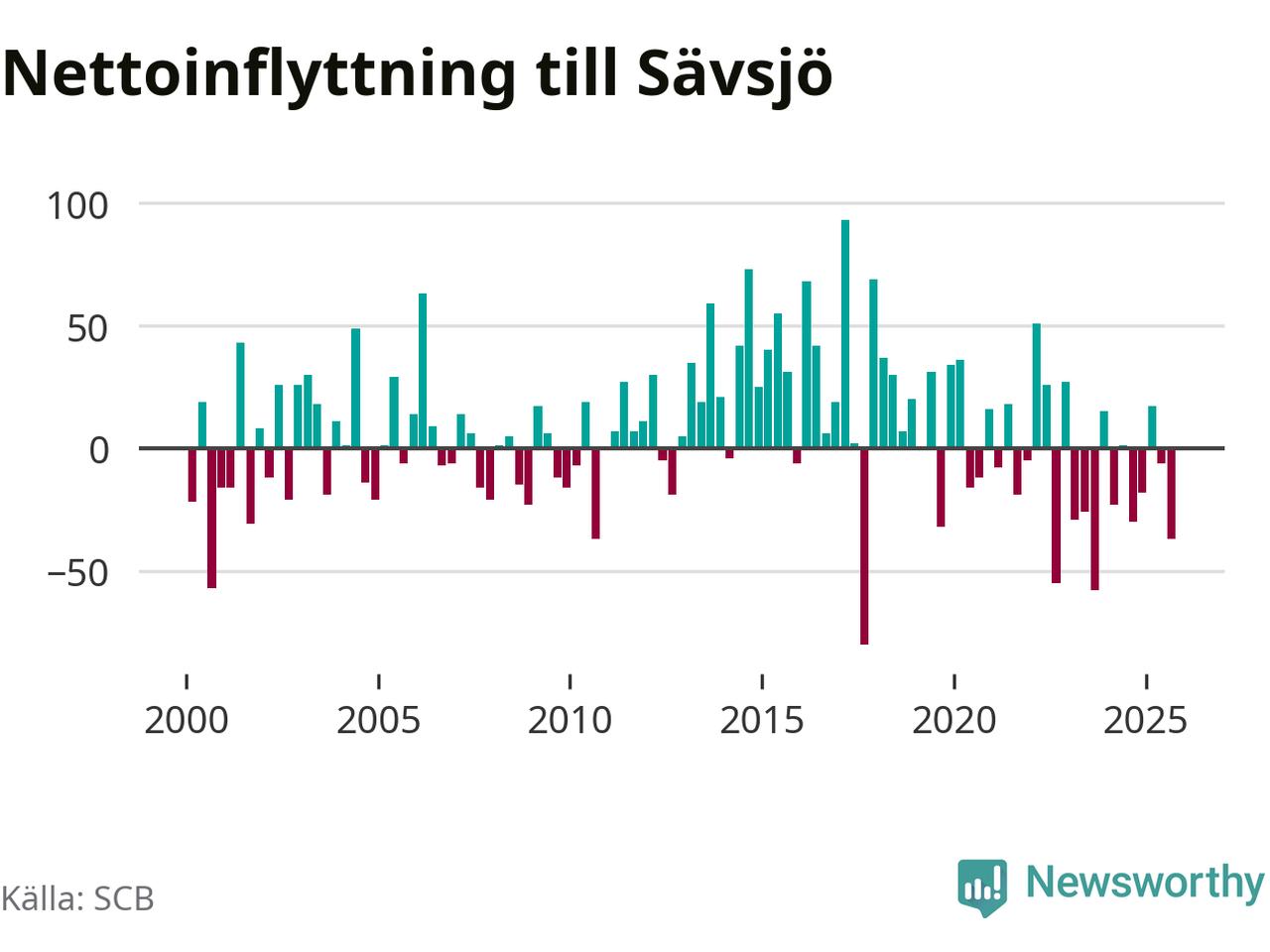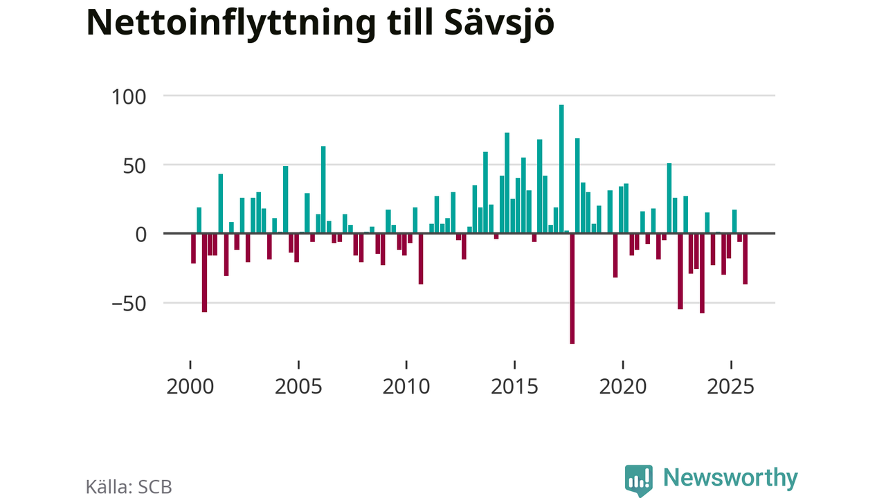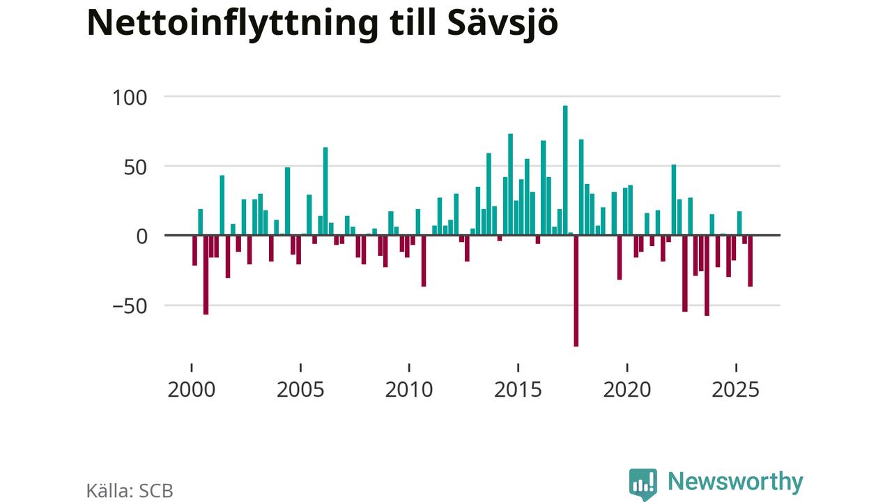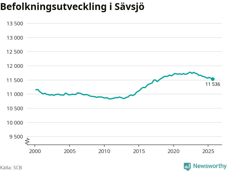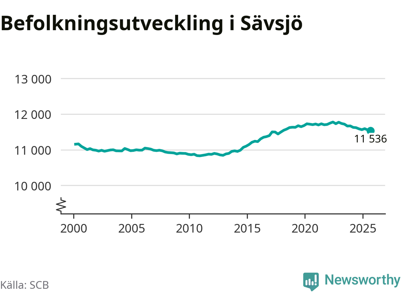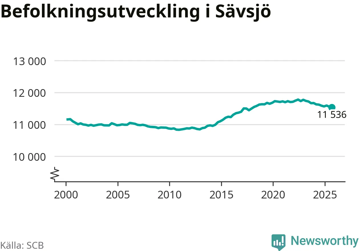 Befolkningen minskade i Sävsjö kommun under det tredje kvartalet 2025. Den 30 september bodde enligt SCB:s senaste siffror 11 536 personer i kommunen, vilket är 20 färre än i slutet av andra kvartalet.