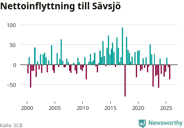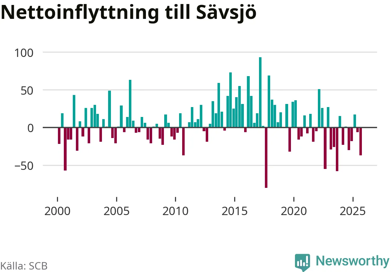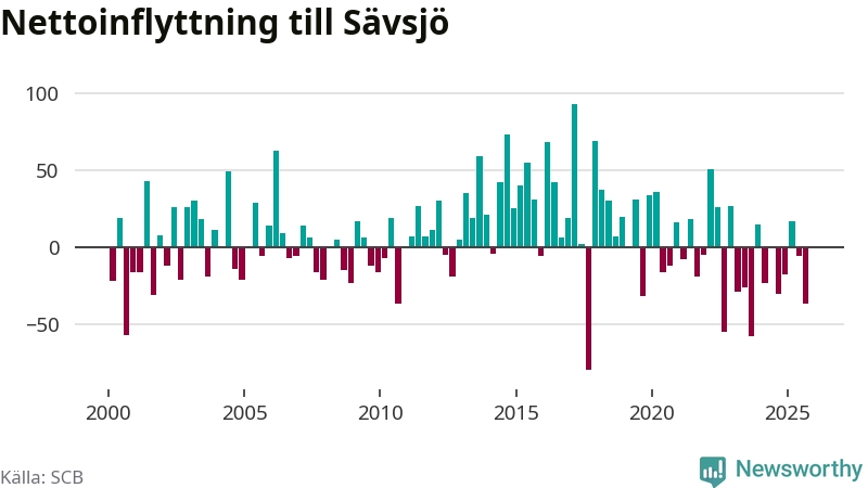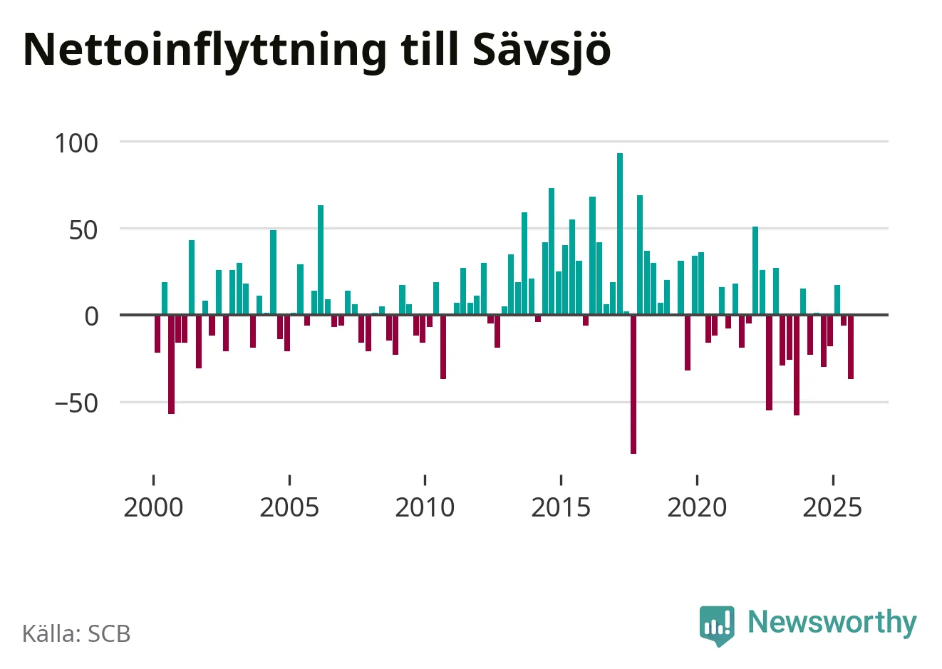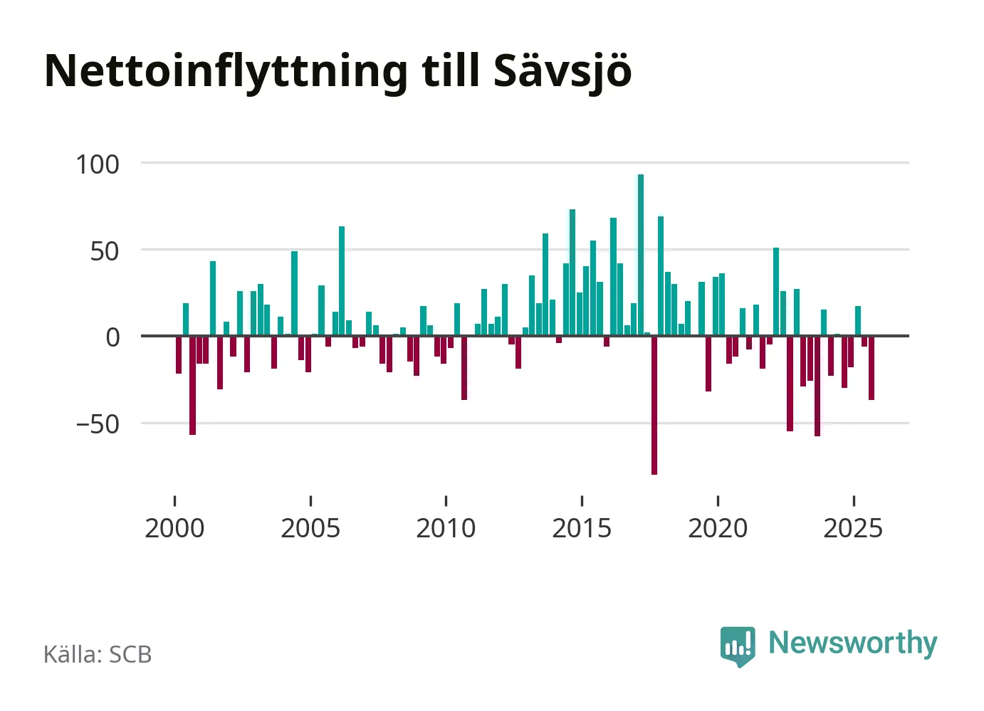 Under tredje kvartalet 2025 flyttade 153 personer till kommunen medan 190 personer flyttade därifrån. Sedan seklets början har Sävsjö oftast haft ett positivt flyttnetto.