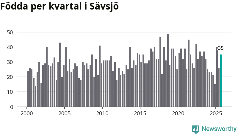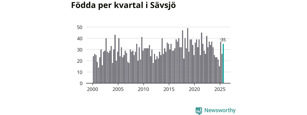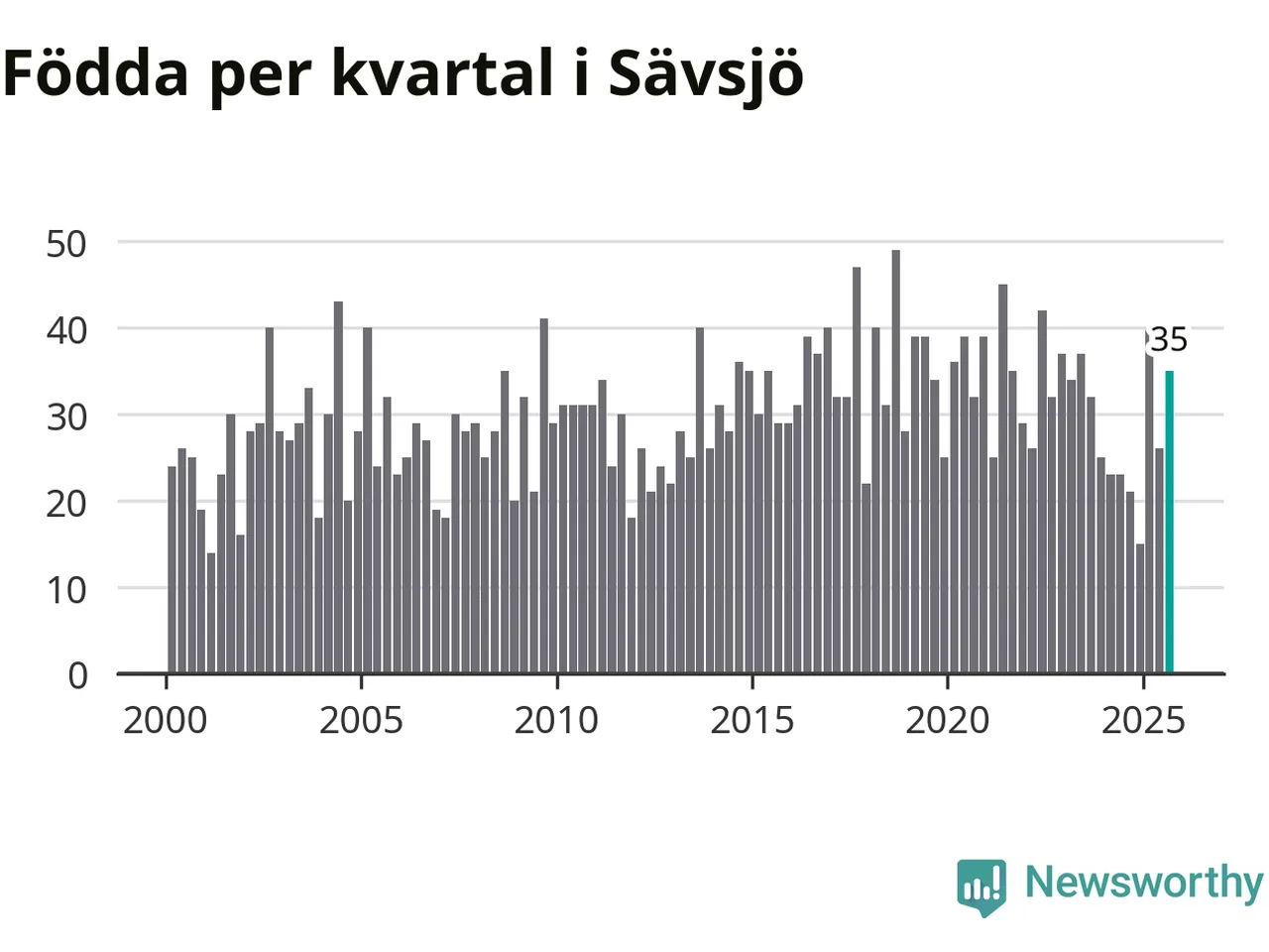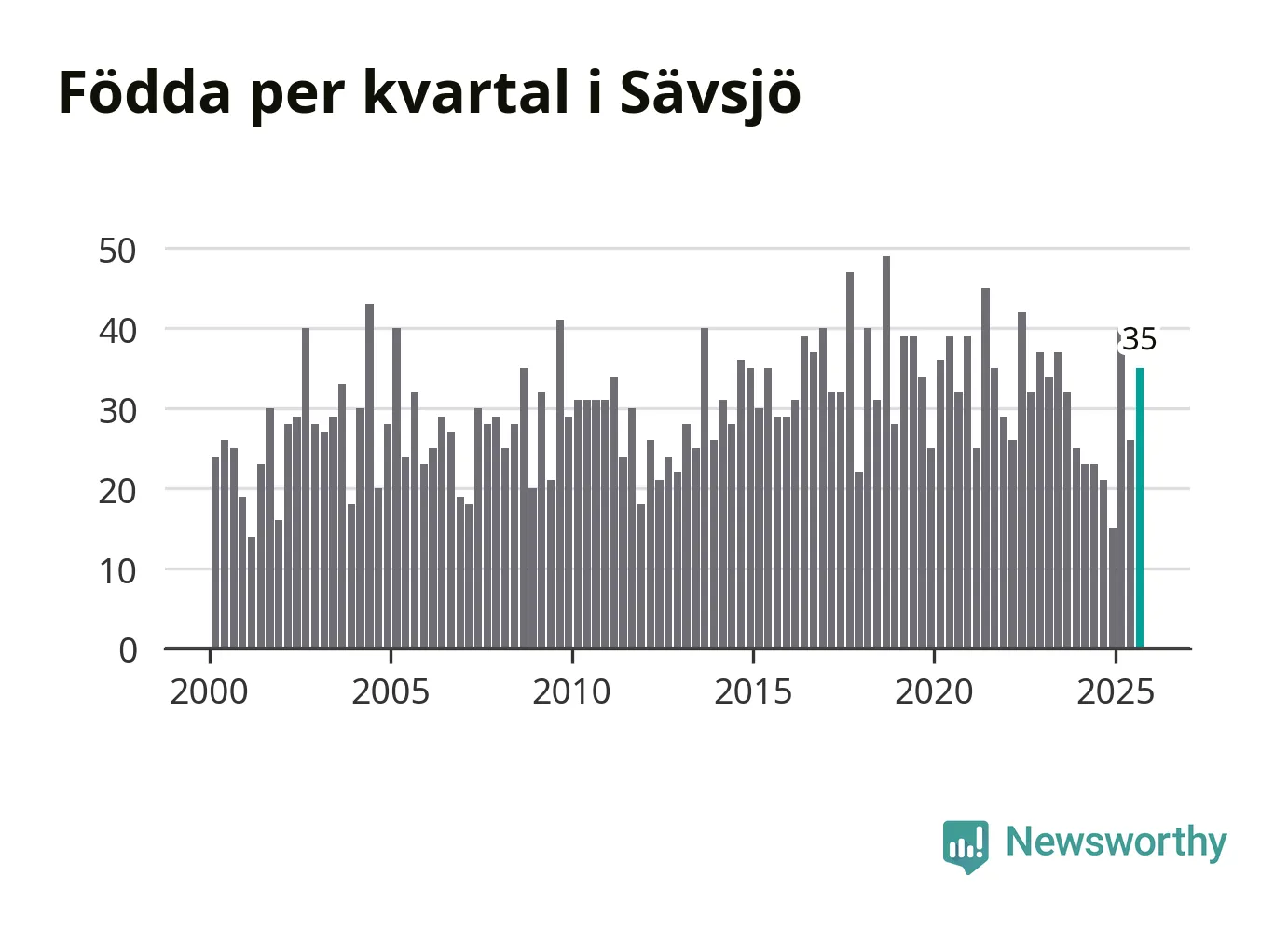 Enligt SCB:s siffror föddes 35 barn i Sävsjö under det senaste kvartalet. Samtidigt avled relativt få – 23 personer. Sävsjö hade alltså ett positivt födelsenetto. Historiskt sett har kommunen haft ungefär lika många kvartal med positivt flyttnetto som negativt.