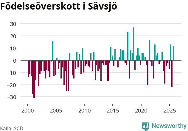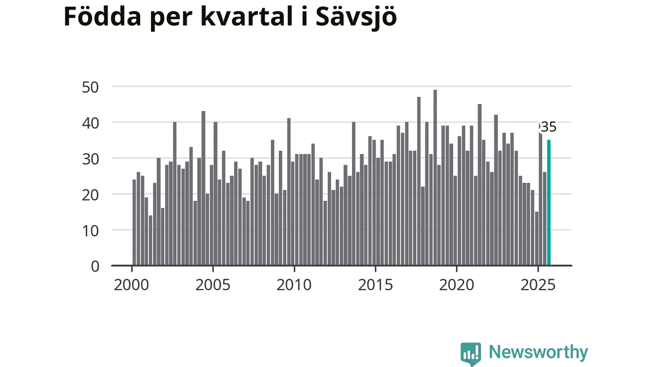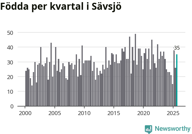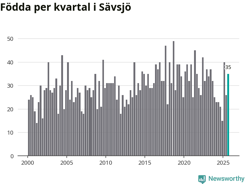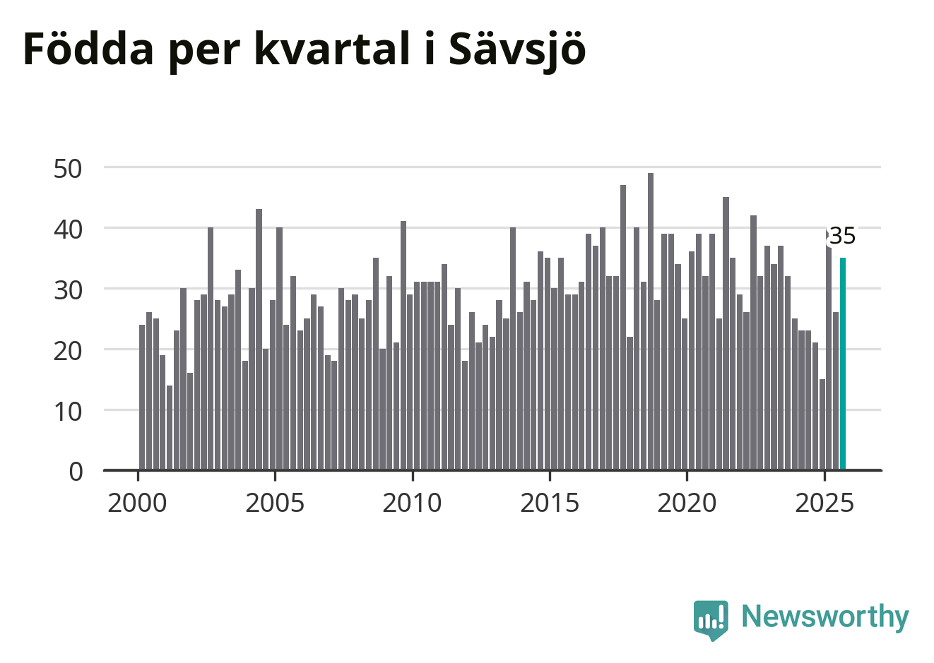 Enligt SCB:s siffror föddes 35 barn i Sävsjö under det senaste kvartalet. Samtidigt avled relativt få – 23 personer. Sävsjö hade alltså ett positivt födelsenetto. Historiskt sett har kommunen haft ungefär lika många kvartal med positivt flyttnetto som negativt.