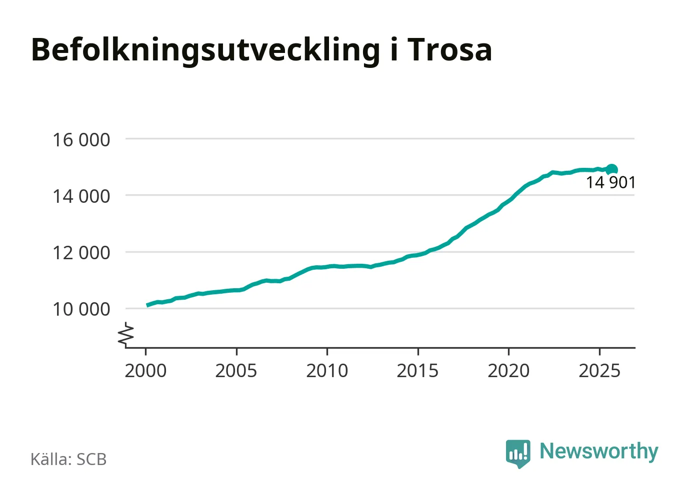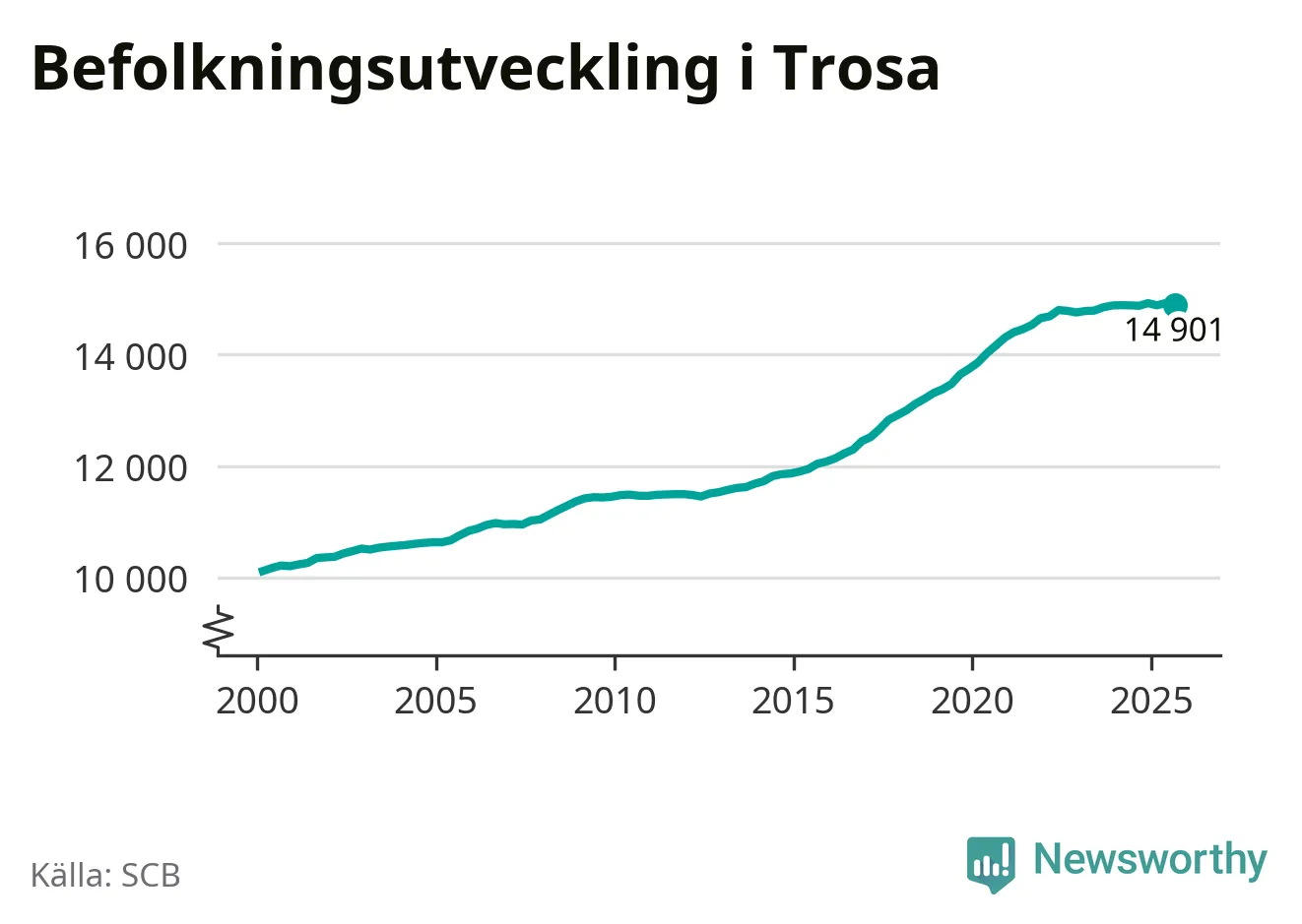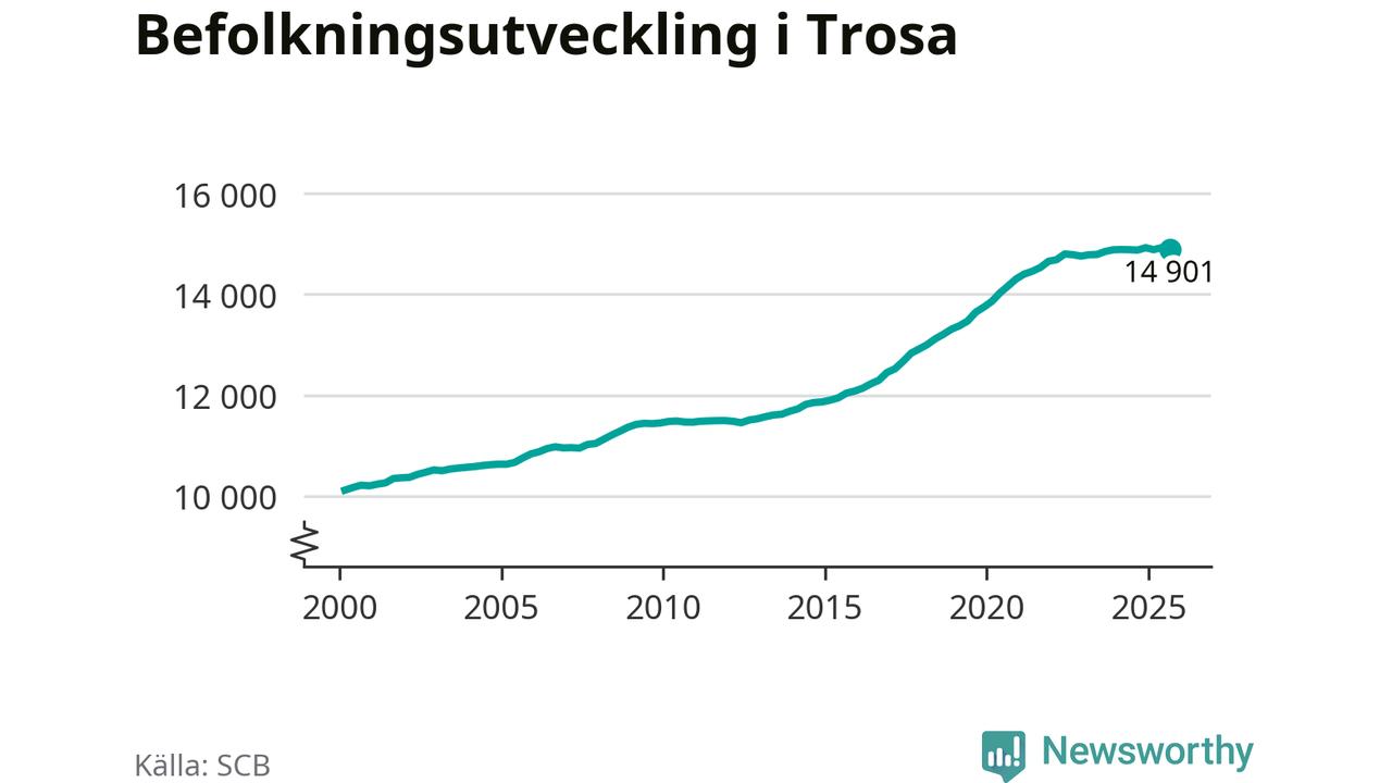 Befolkningen minskade i Trosa kommun under det tredje kvartalet 2025. Den 30 september bodde enligt SCB:s senaste siffror 14 901 personer i kommunen, vilket är 28 färre än i slutet av andra kvartalet.