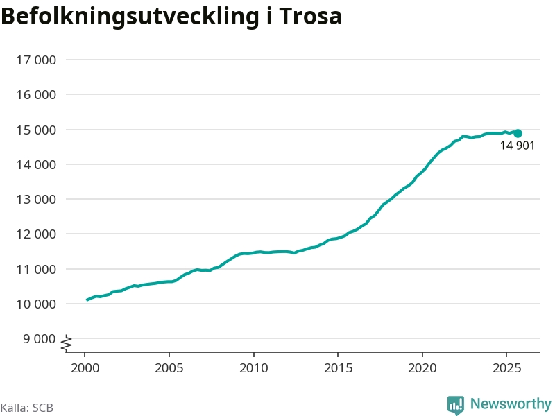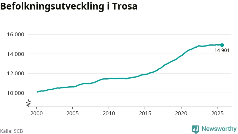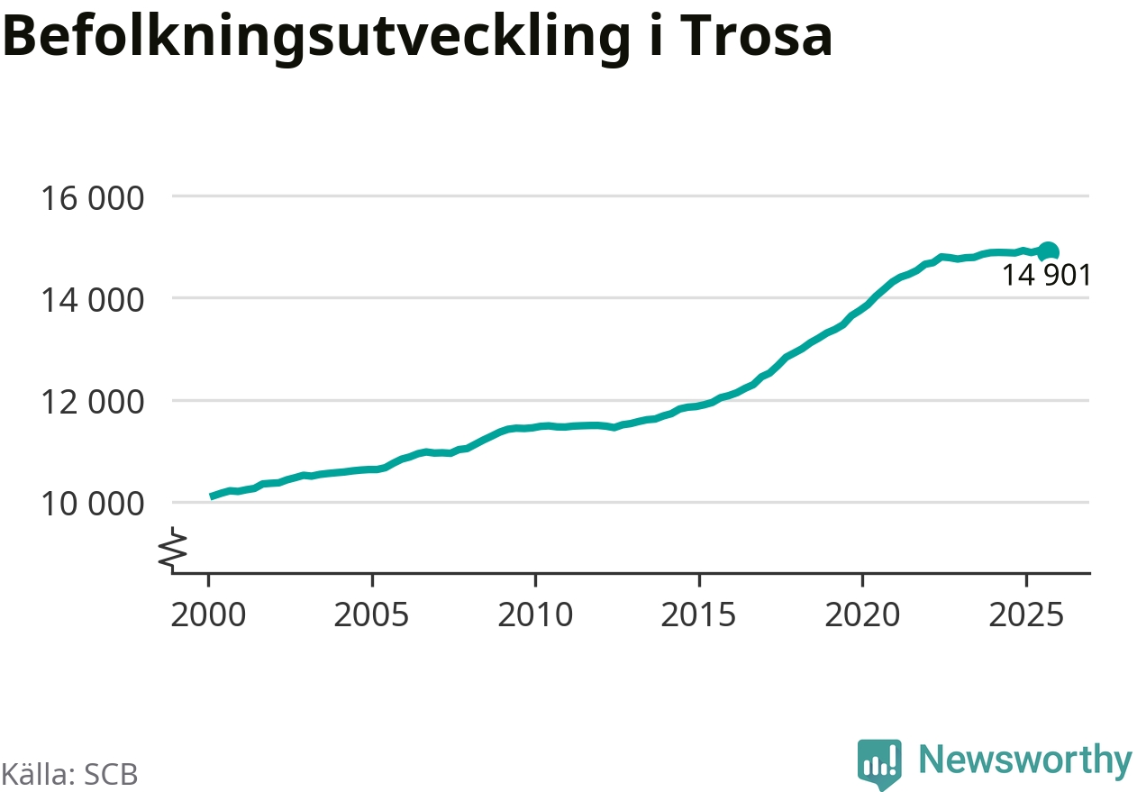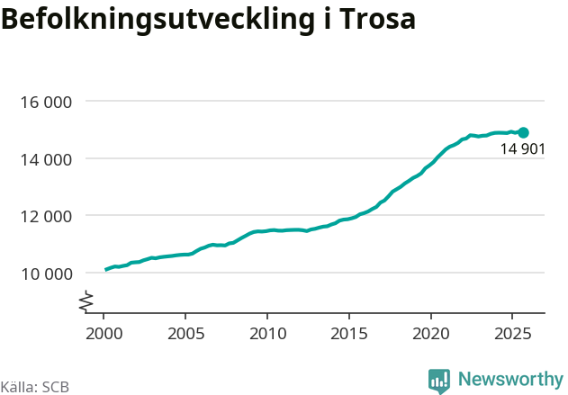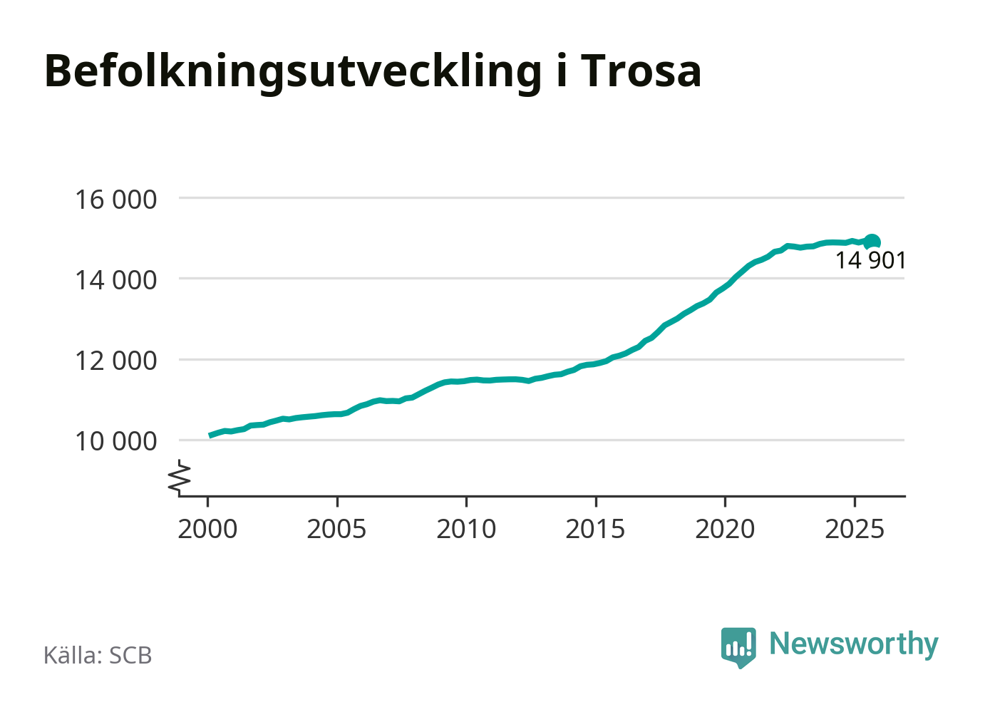 Befolkningen minskade i Trosa kommun under det tredje kvartalet 2025. Den 30 september bodde enligt SCB:s senaste siffror 14 901 personer i kommunen, vilket är 28 färre än i slutet av andra kvartalet.