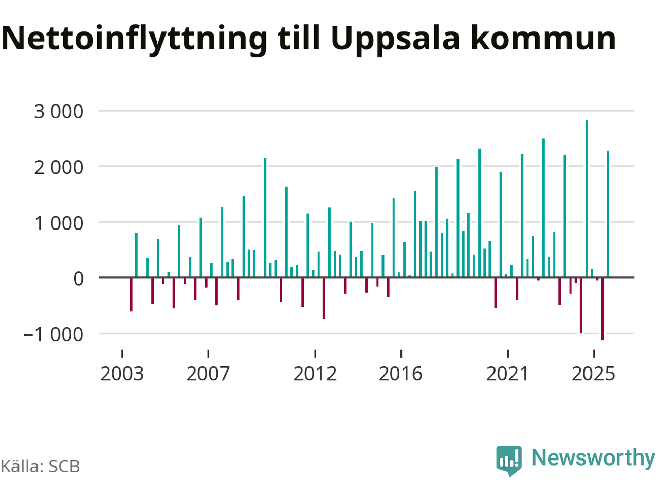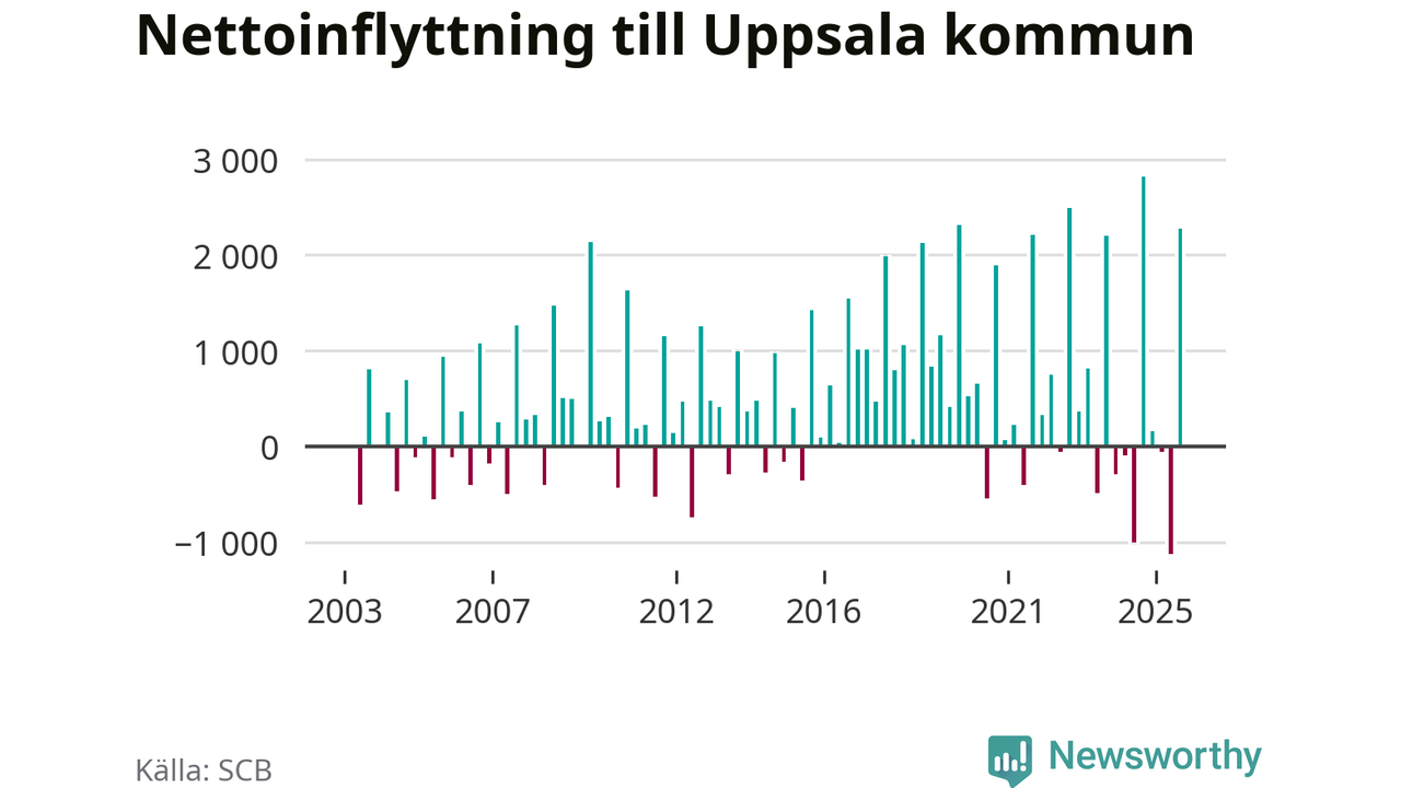 4 831 personer flyttade från Uppsala kommun under det tredje kvartalet 2025. Det är ovanligt många, visar SCB:s senaste befolkningssiffror.