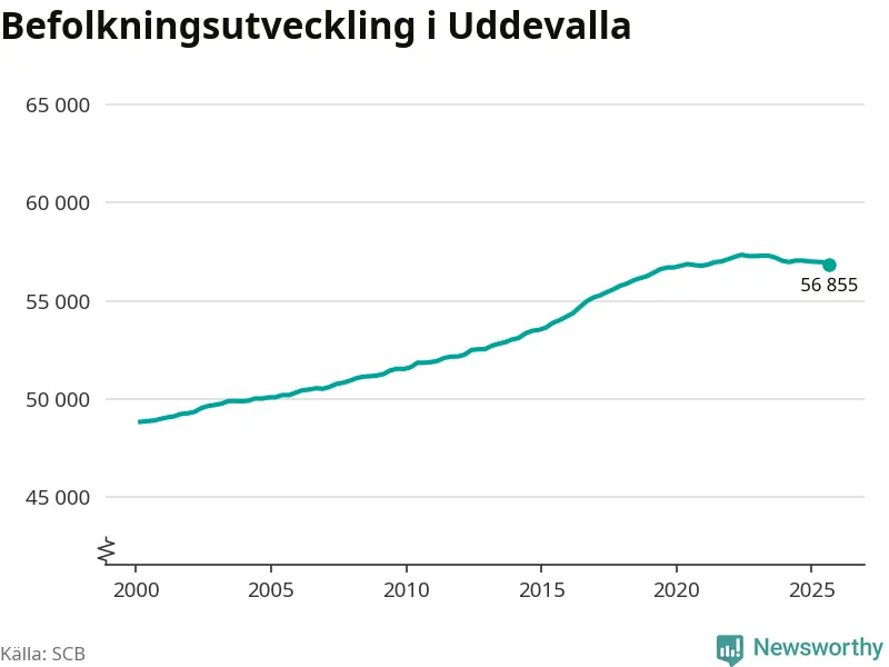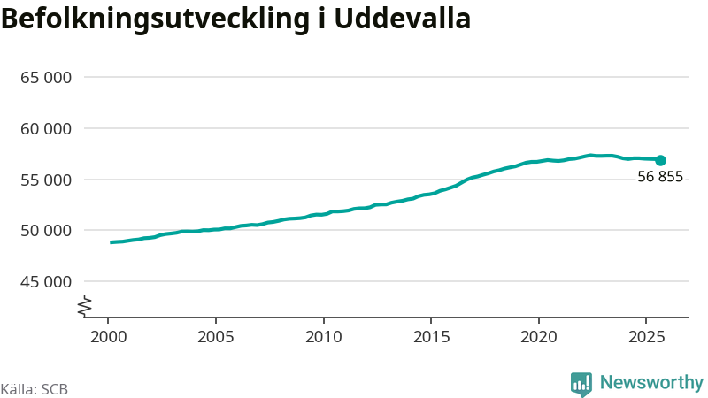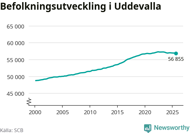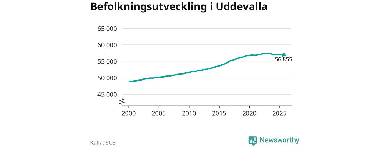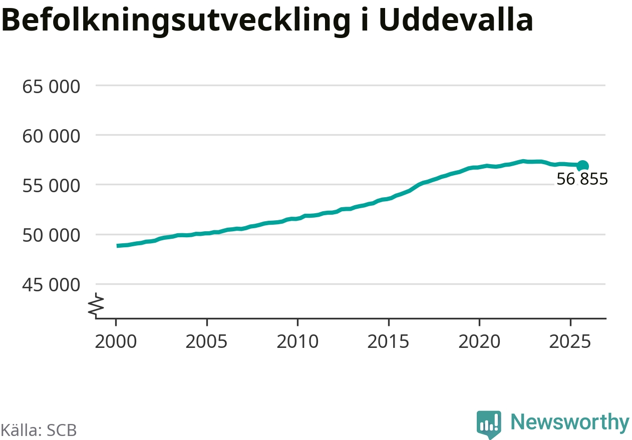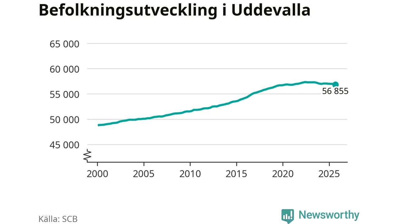 Befolkningen minskade i Uddevalla kommun under det tredje kvartalet 2025. Den 30 september bodde enligt SCB:s senaste siffror 56 855 personer i kommunen, vilket är 119 färre än i slutet av andra kvartalet.