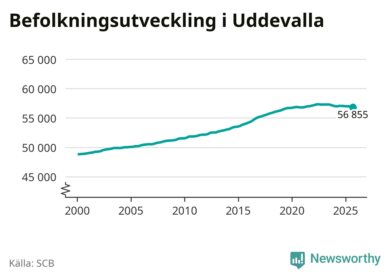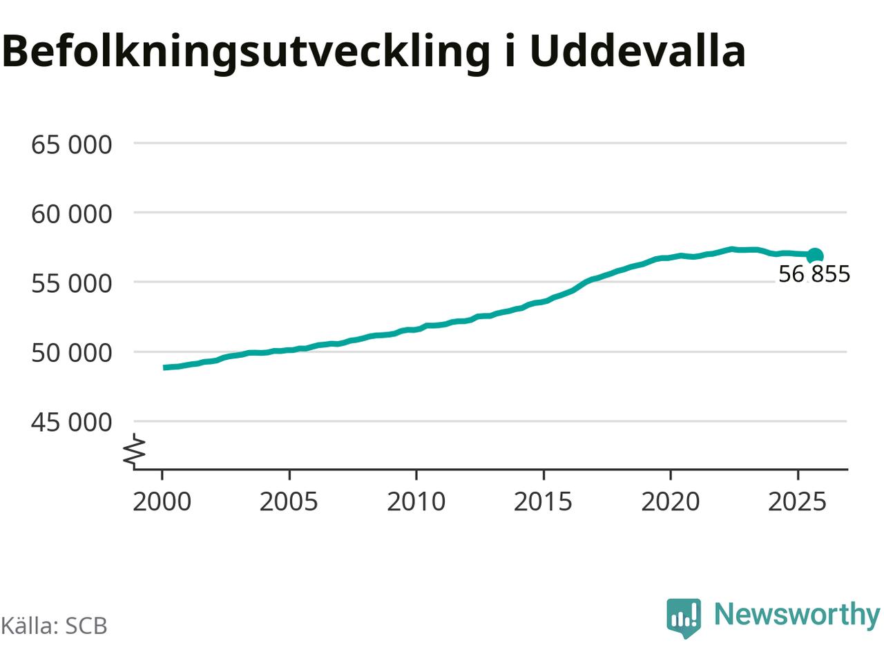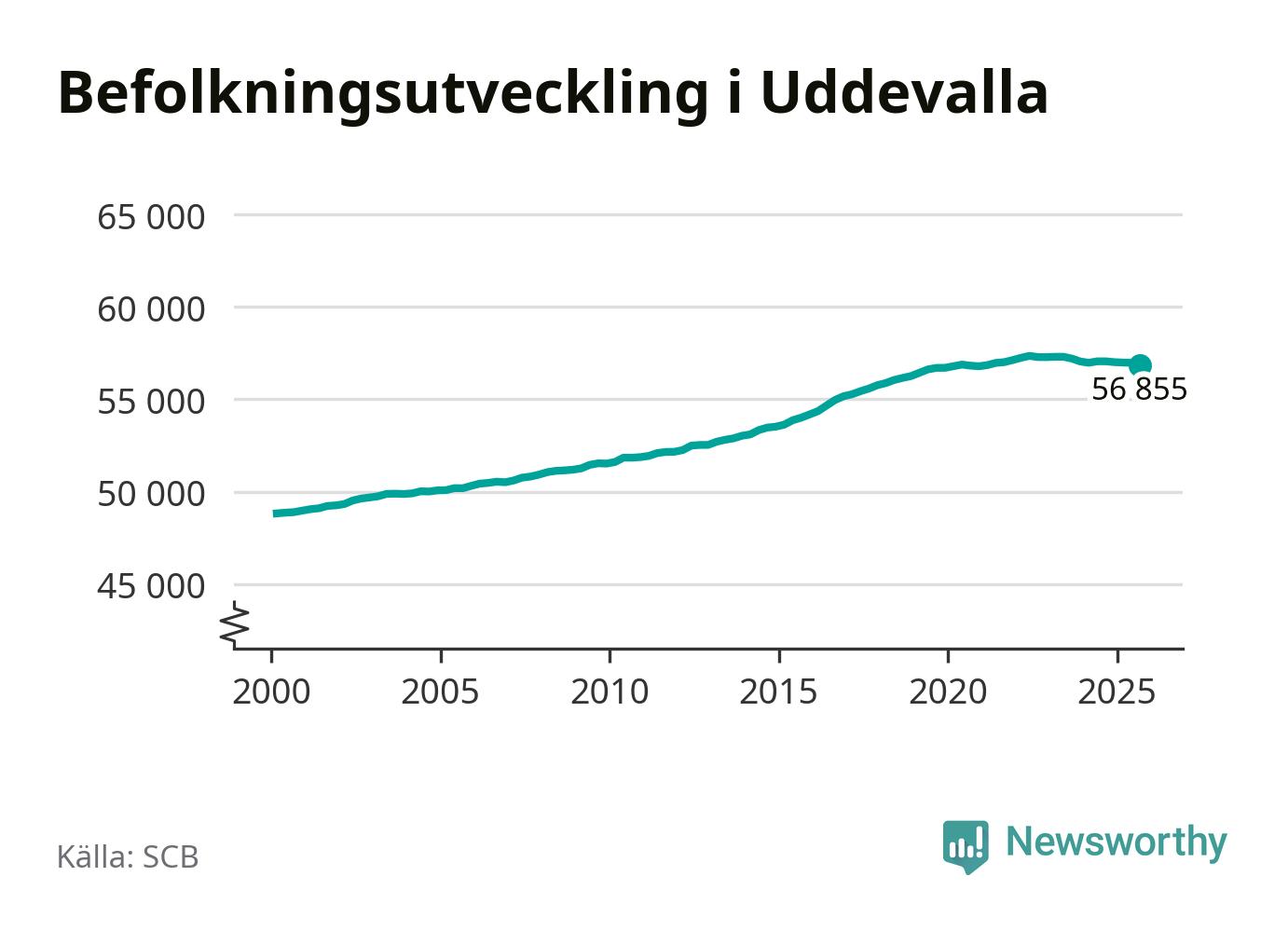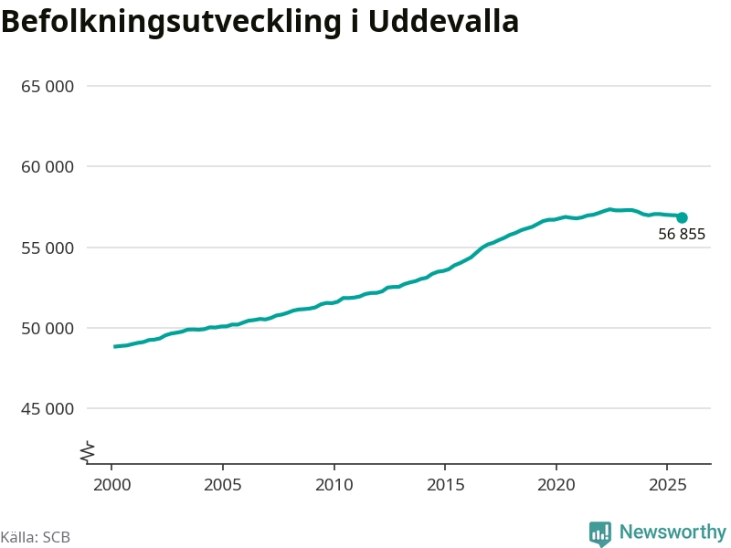 Befolkningen minskade i Uddevalla kommun under det tredje kvartalet 2025. Den 30 september bodde enligt SCB:s senaste siffror 56 855 personer i kommunen, vilket är 119 färre än i slutet av andra kvartalet.