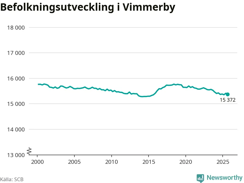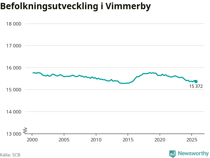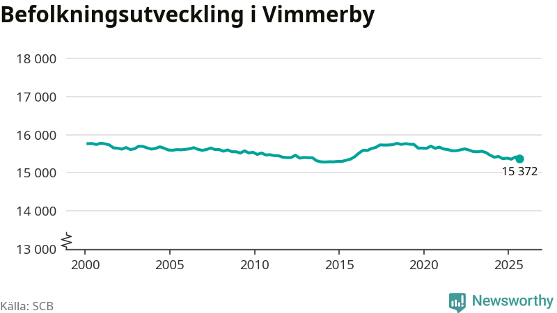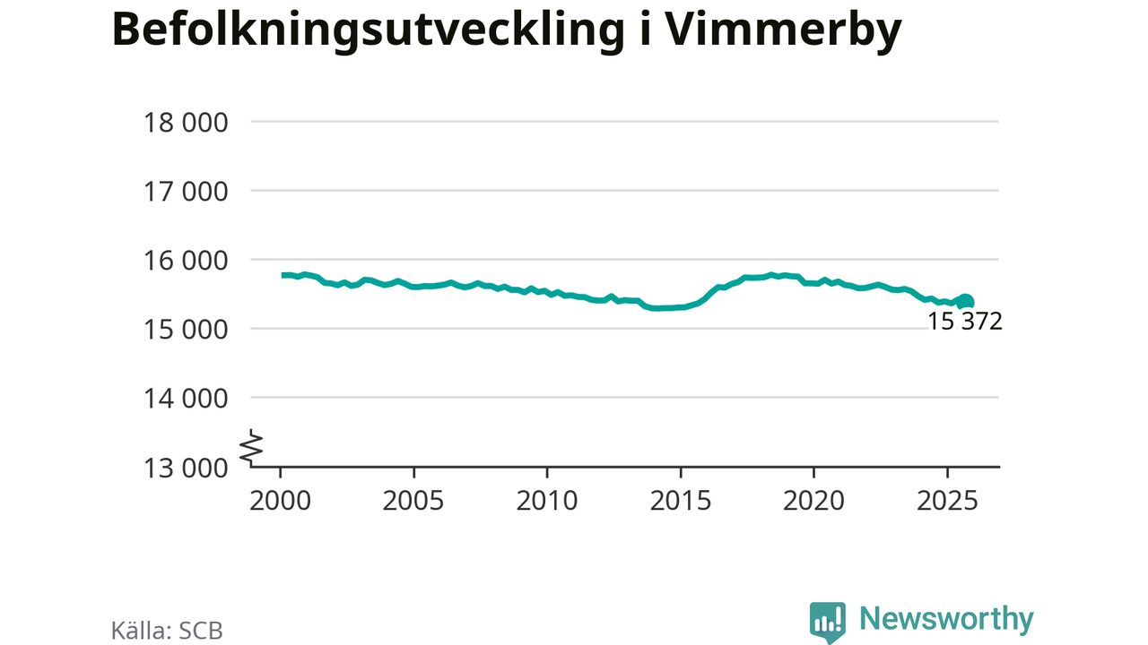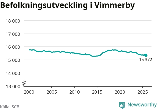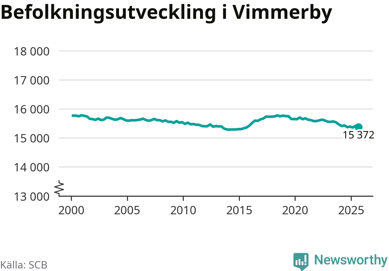Befolkningen minskade i Vimmerby kommun under det tredje kvartalet 2025. Den 30 september bodde enligt SCB:s senaste siffror 15 372 personer i kommunen, vilket är 42 färre än i slutet av andra kvartalet.