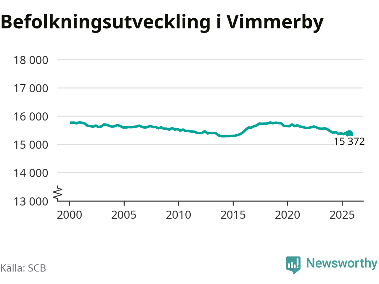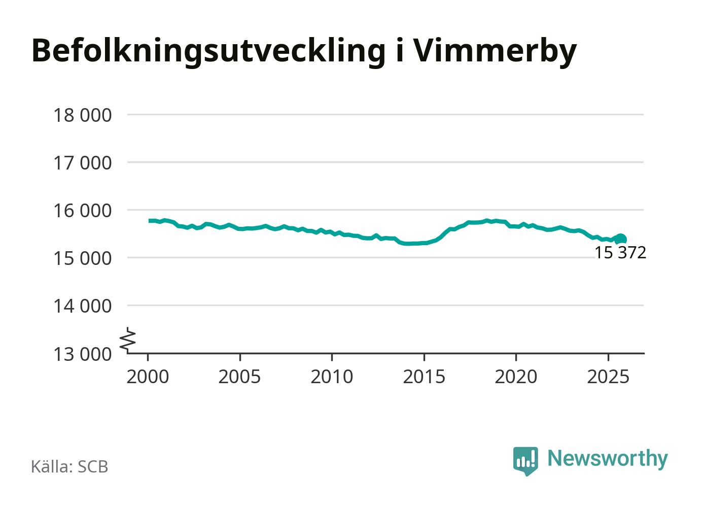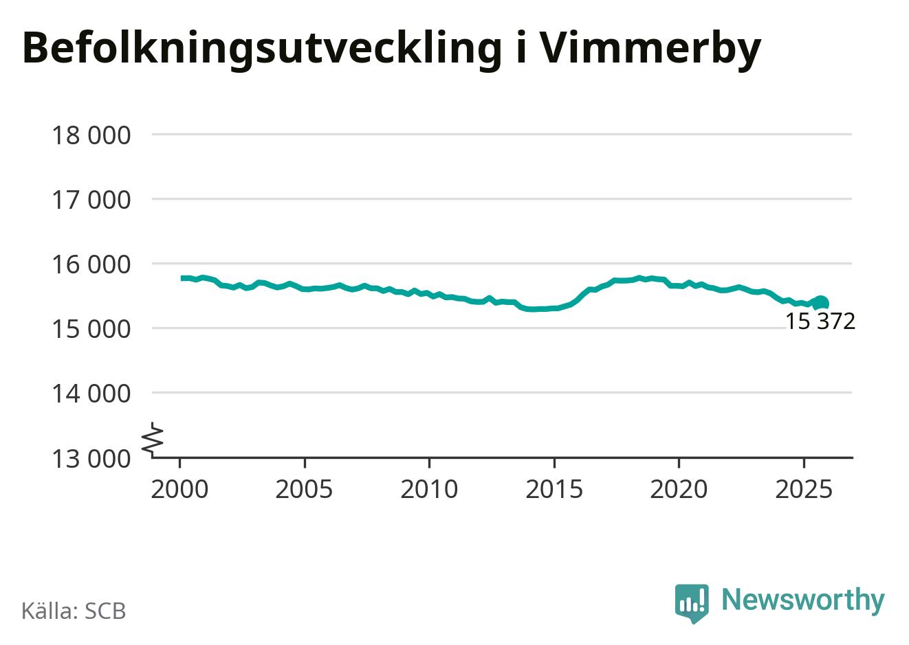 Befolkningen minskade i Vimmerby kommun under det tredje kvartalet 2025. Den 30 september bodde enligt SCB:s senaste siffror 15 372 personer i kommunen, vilket är 42 färre än i slutet av andra kvartalet.