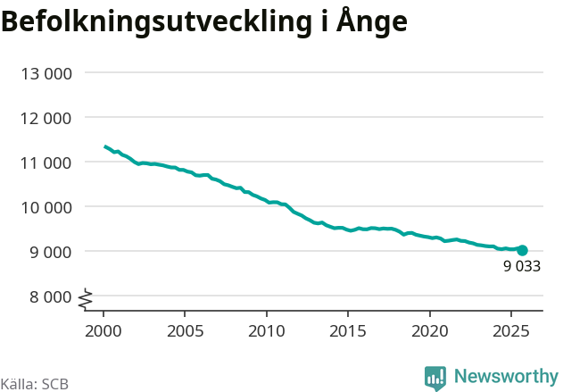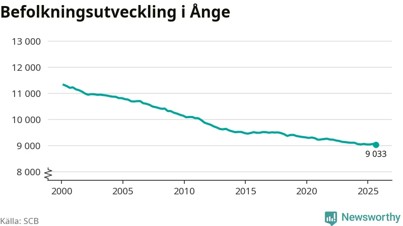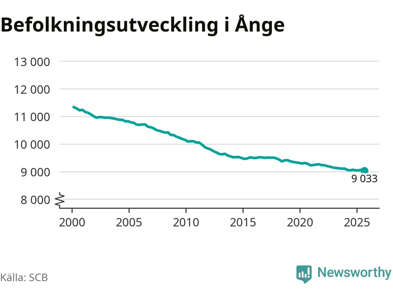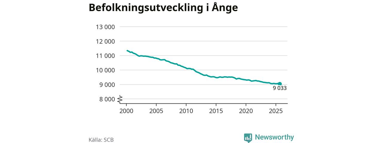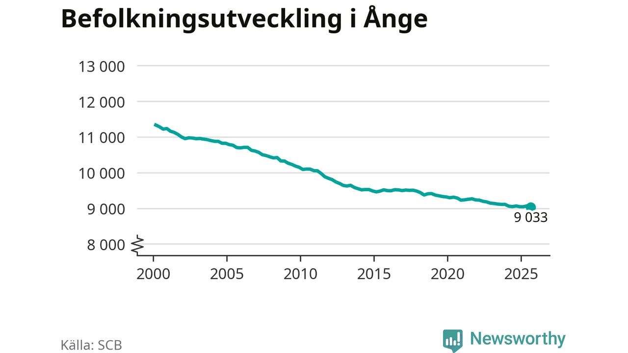 Befolkningen minskade i Ånge kommun under det tredje kvartalet 2025. Den 30 september bodde enligt SCB:s senaste siffror 9 033 personer i kommunen, vilket är 33 färre än i slutet av andra kvartalet. Minskningen är procentuellt sett en av de största i Västernorrland.