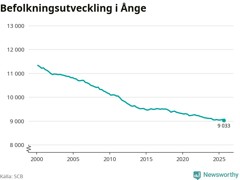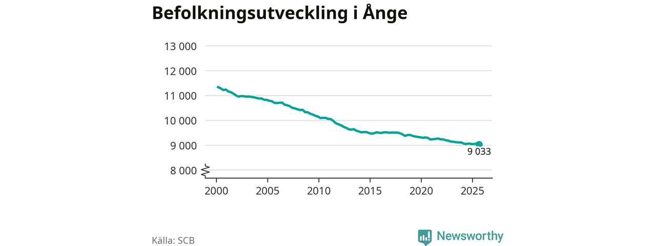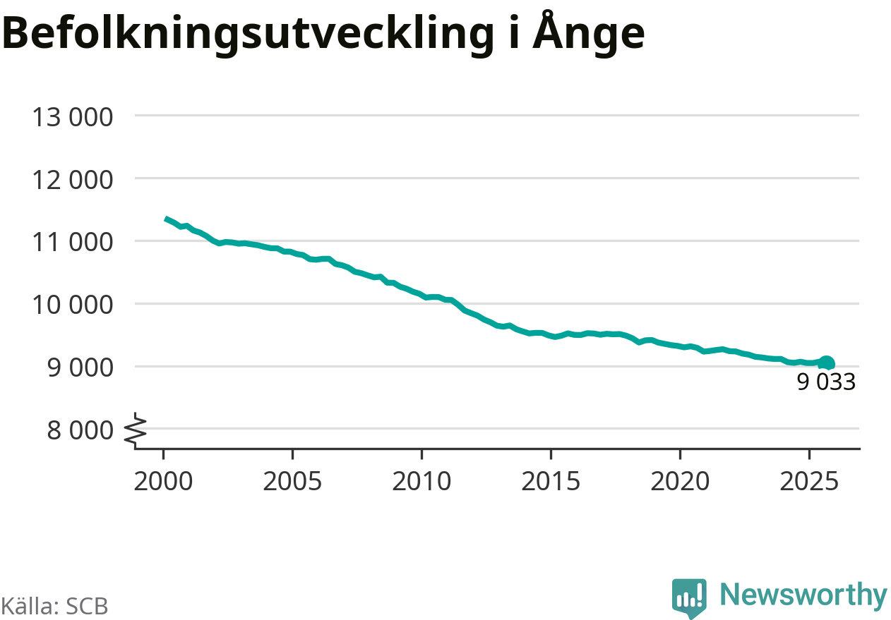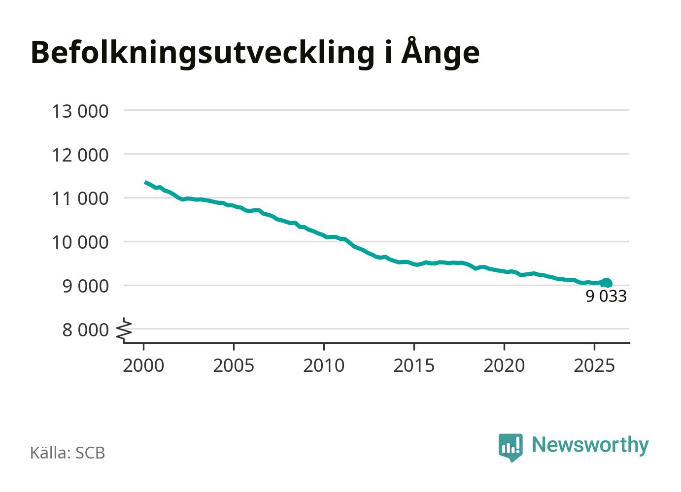 Befolkningen minskade i Ånge kommun under det tredje kvartalet 2025. Den 30 september bodde enligt SCB:s senaste siffror 9 033 personer i kommunen, vilket är 33 färre än i slutet av andra kvartalet. Minskningen är procentuellt sett en av de största i Västernorrland.