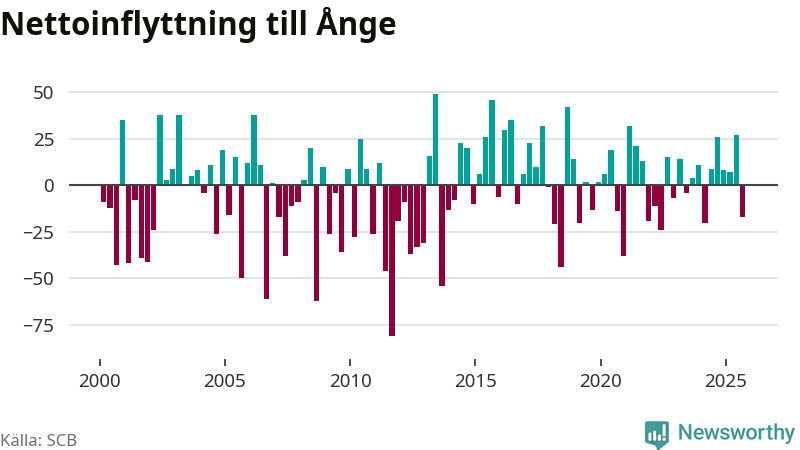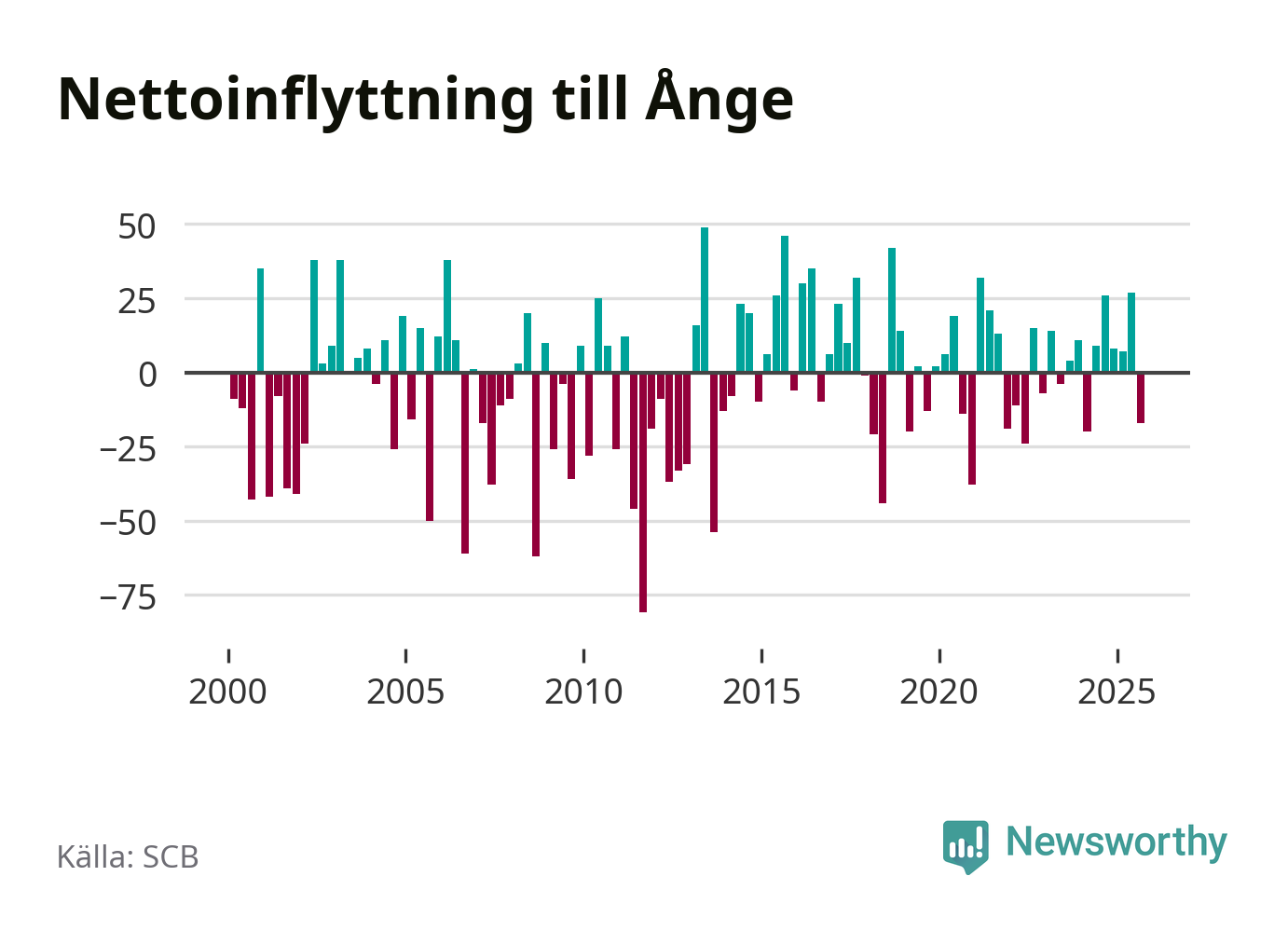 Under tredje kvartalet 2025 flyttade 95 personer till kommunen medan 112 personer flyttade därifrån. Sedan seklets början har Ånge oftast haft ett positivt flyttnetto.