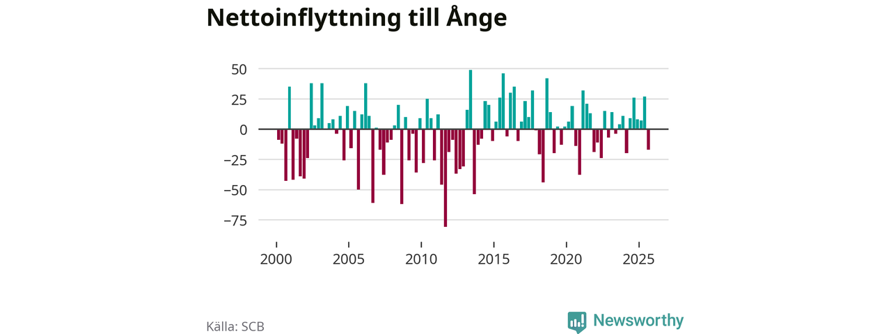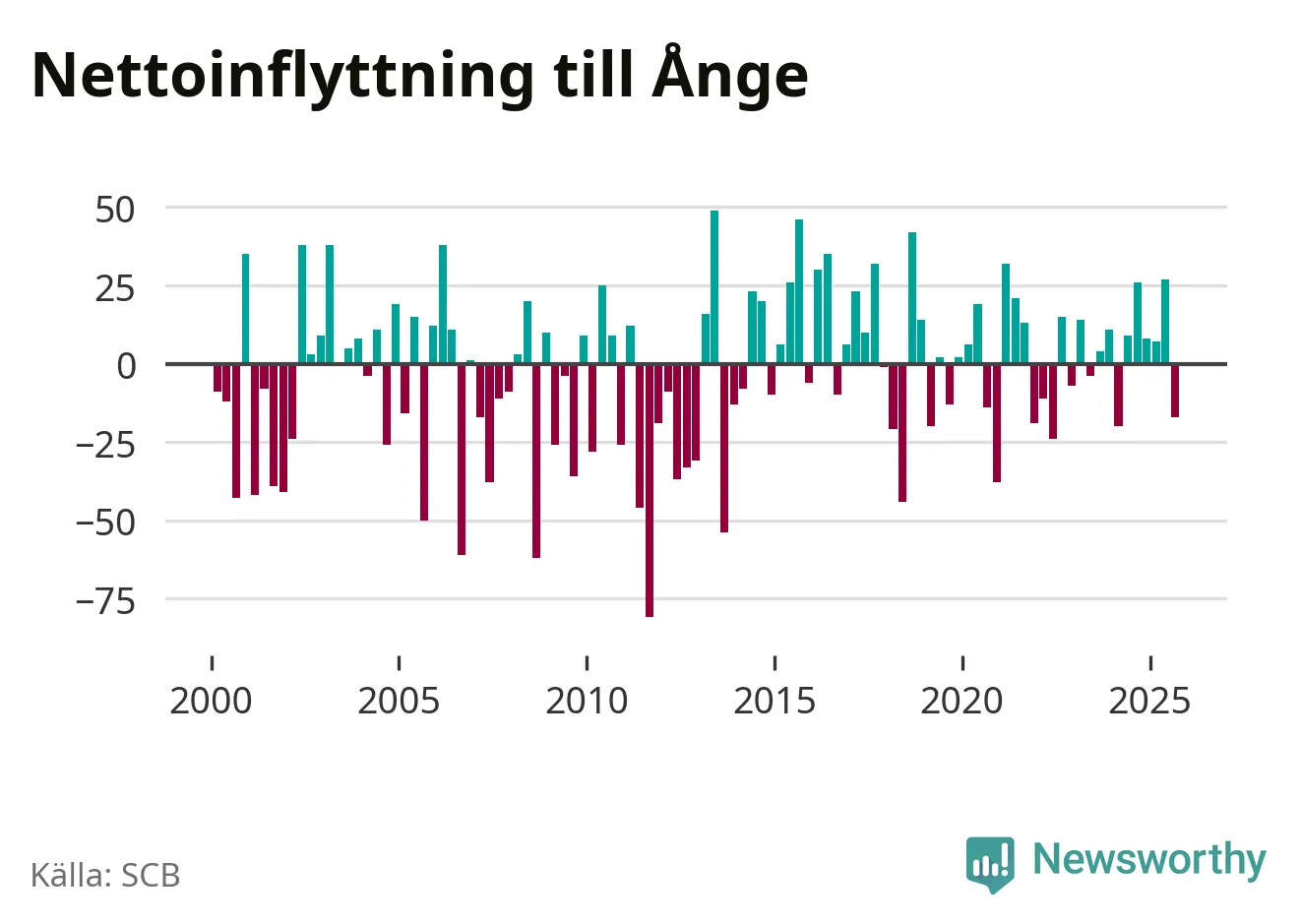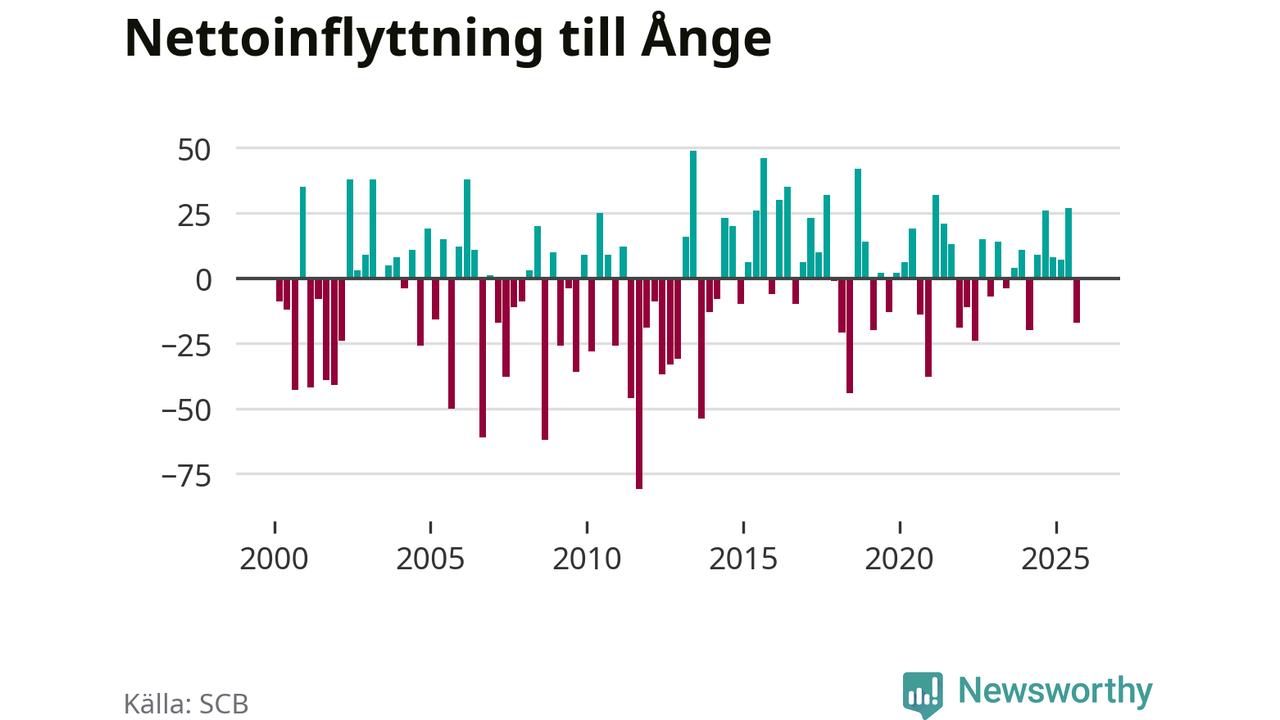 Antalet avlidna var större än antalet födda – och fler flyttade från än till Ånge kommun. Befolkningen minskade under det tredje kvartalet 2025. Det visar nya siffror från SCB.