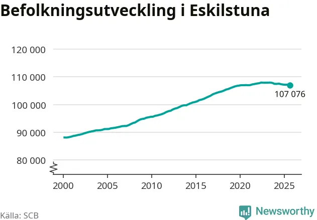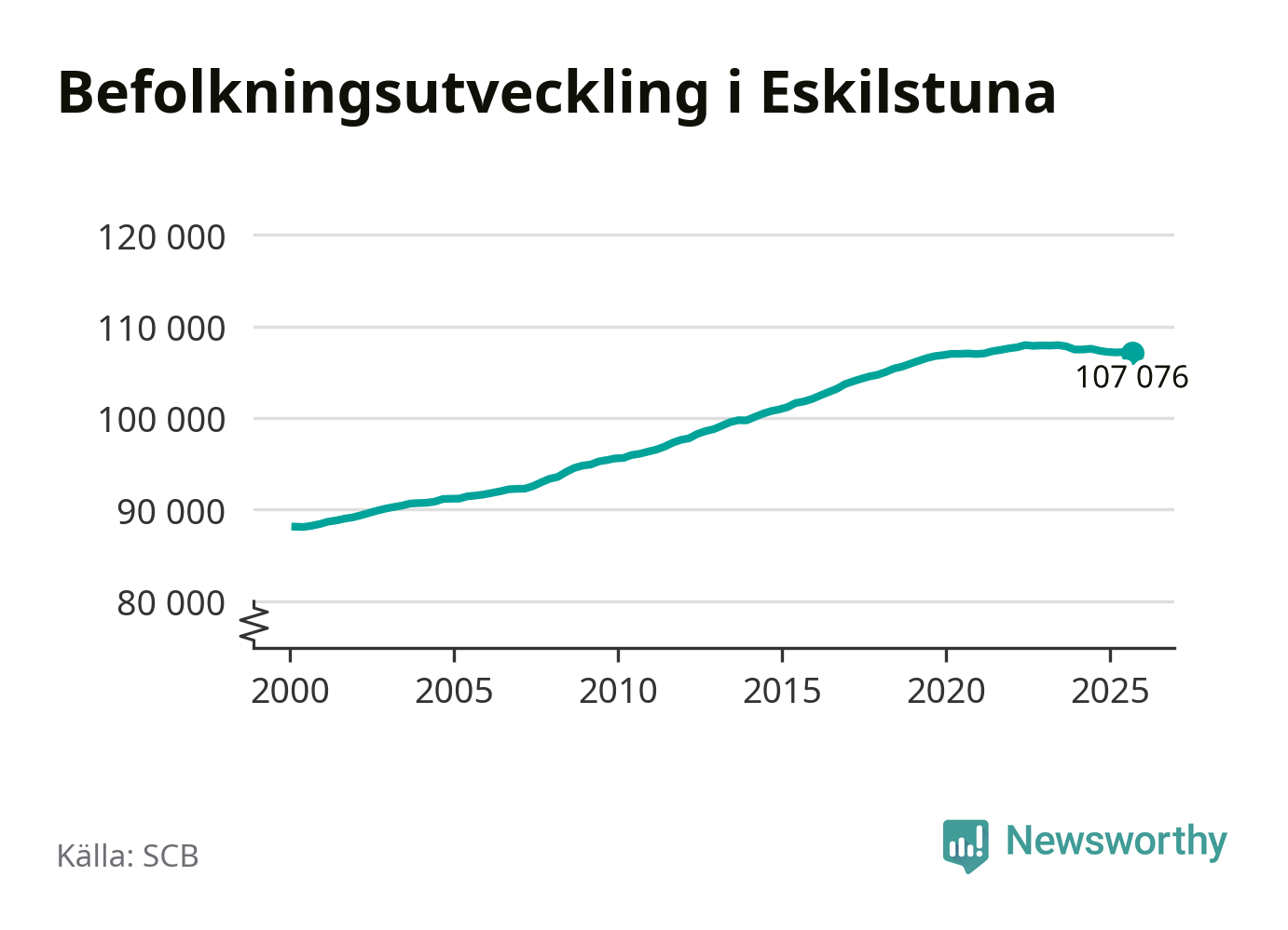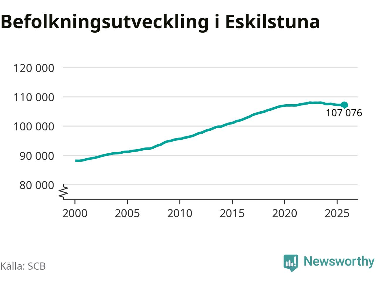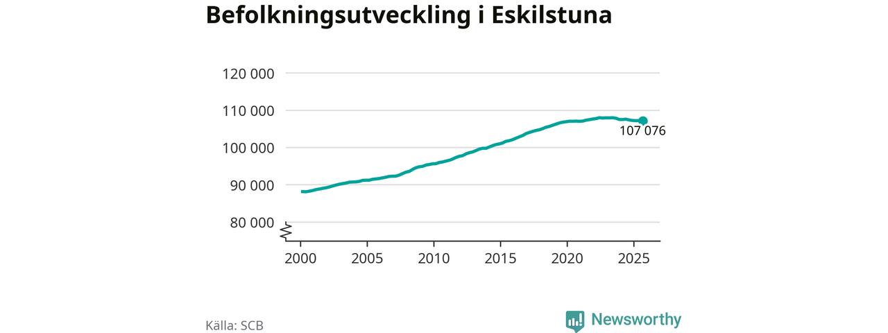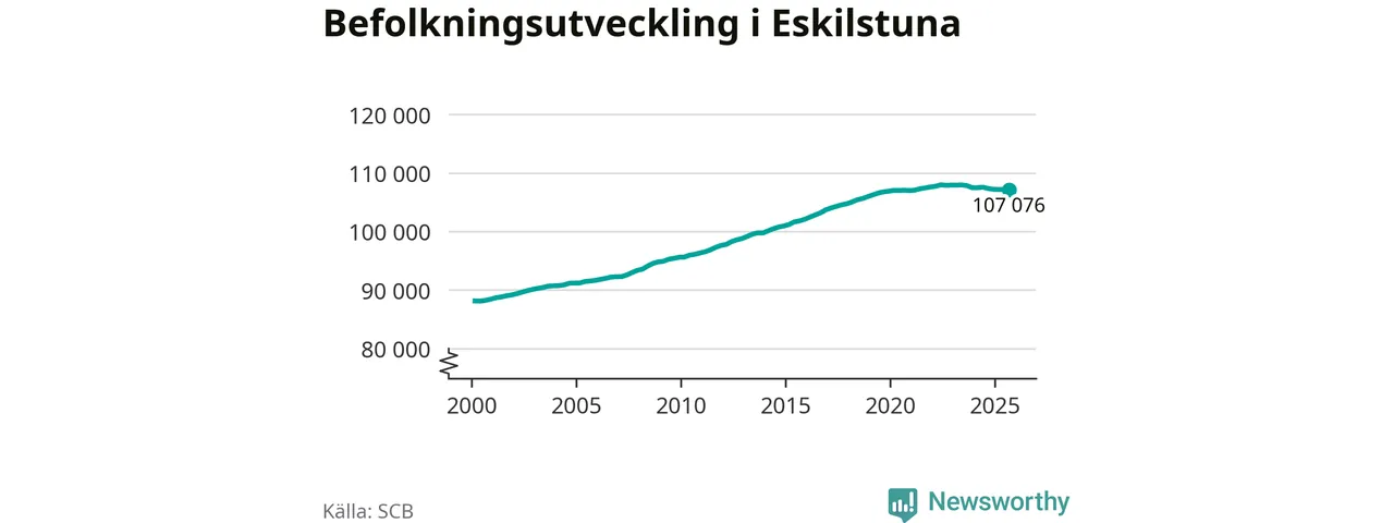 Befolkningen minskade i Eskilstuna kommun under det tredje kvartalet 2025. Den 30 september bodde enligt SCB:s senaste siffror 107 076 personer i kommunen, vilket är 113 färre än i slutet av andra kvartalet.