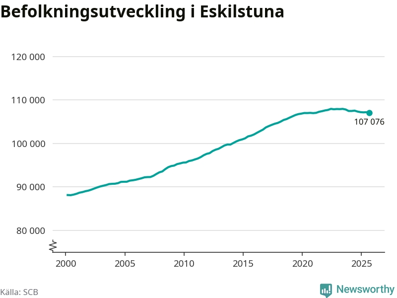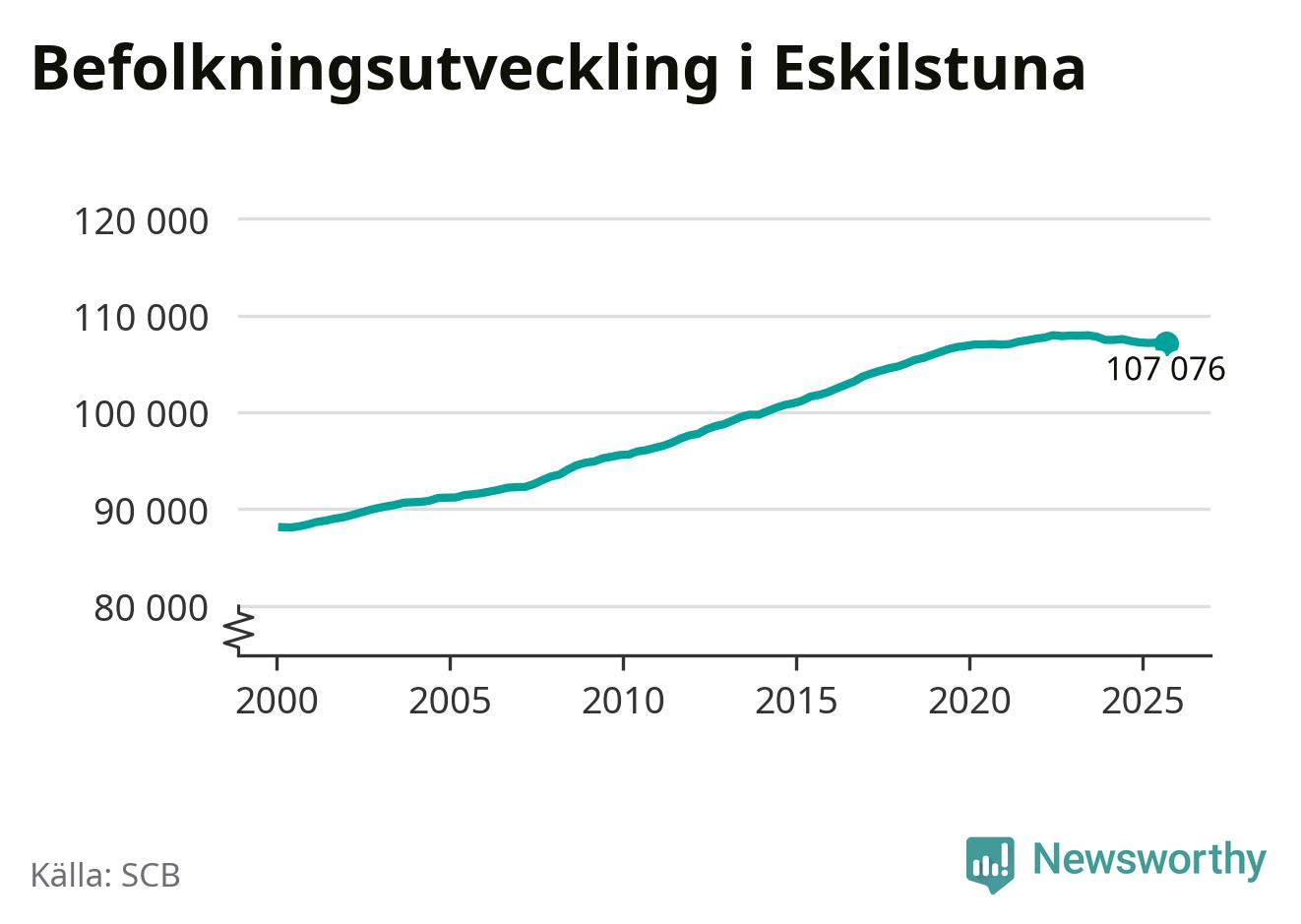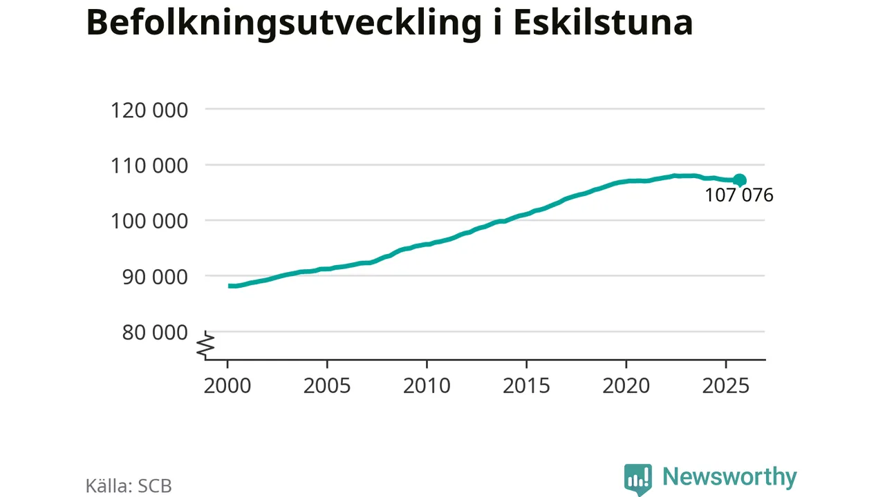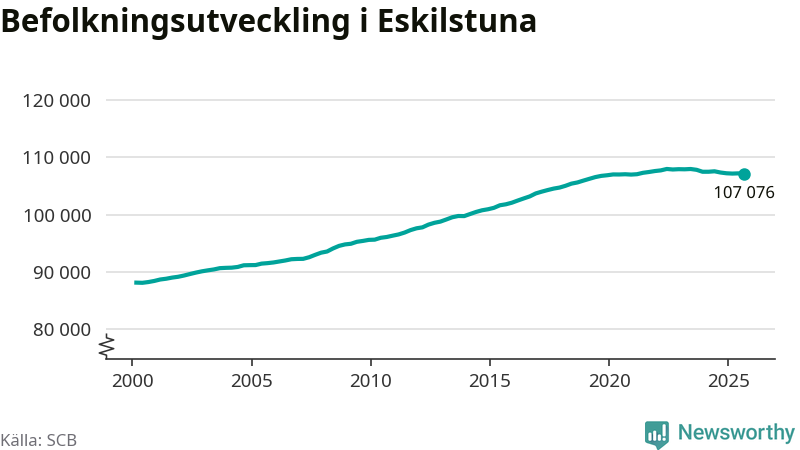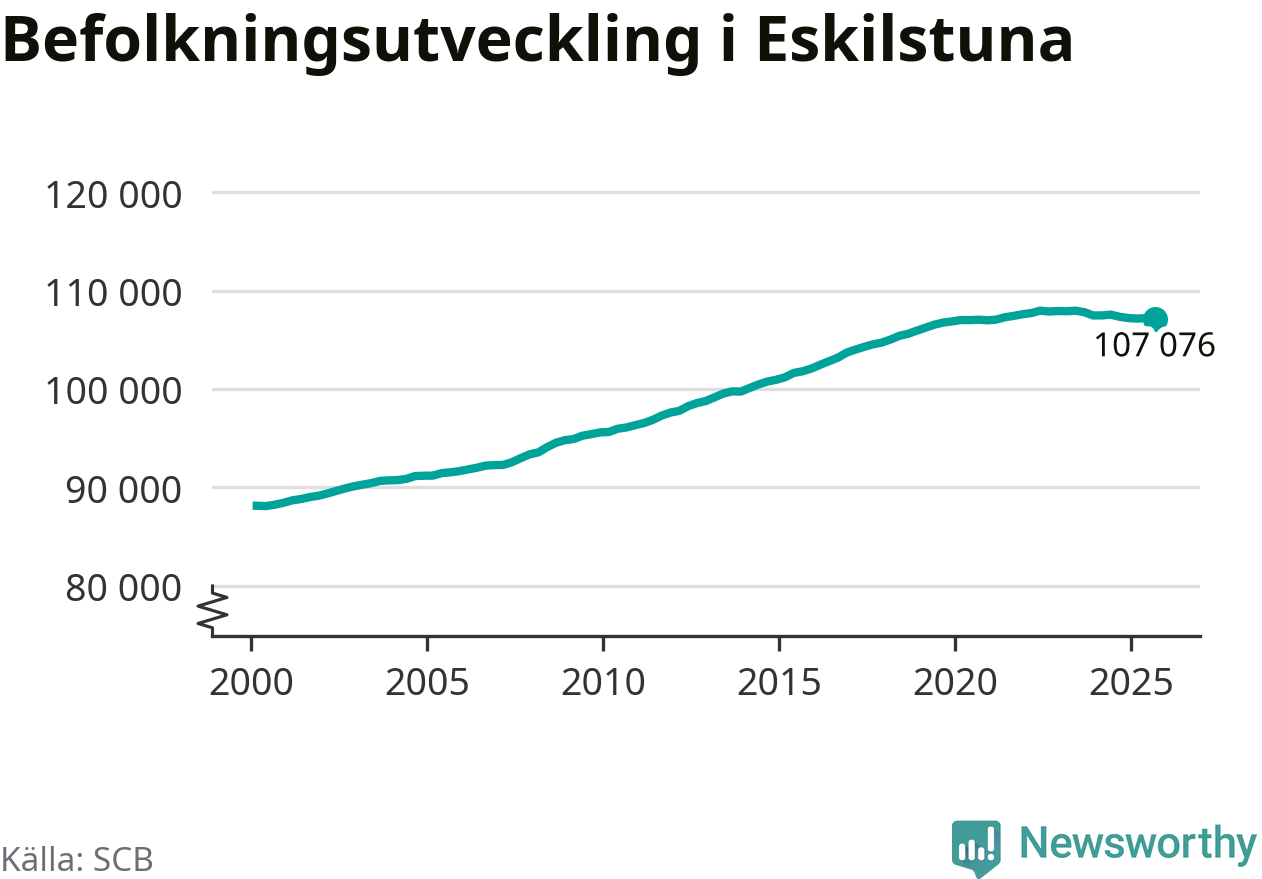Befolkningen minskade i Eskilstuna kommun under det tredje kvartalet 2025. Den 30 september bodde enligt SCB:s senaste siffror 107 076 personer i kommunen, vilket är 113 färre än i slutet av andra kvartalet.