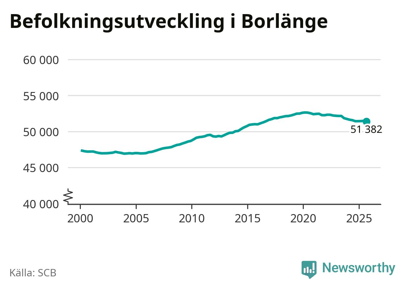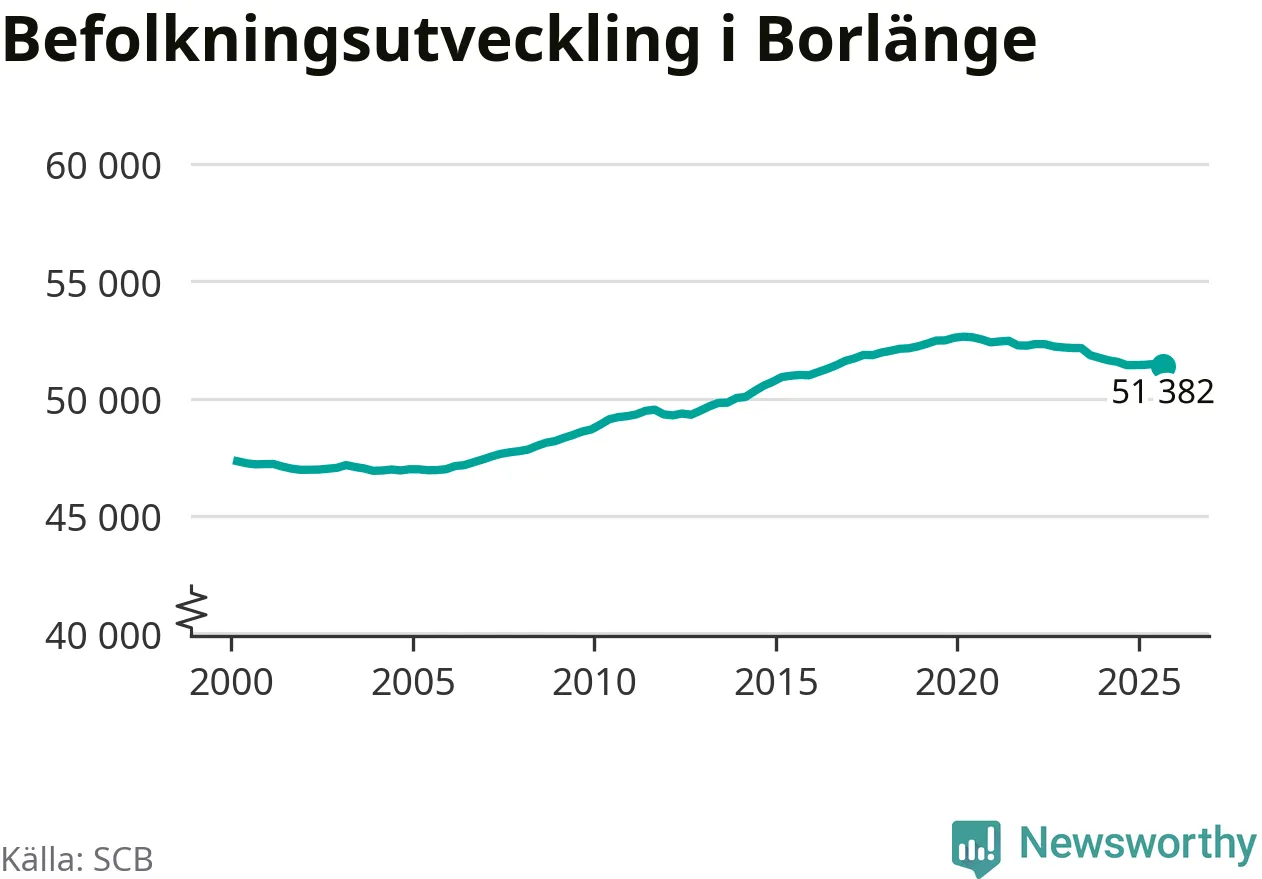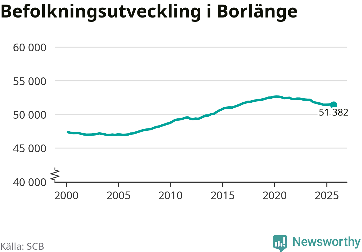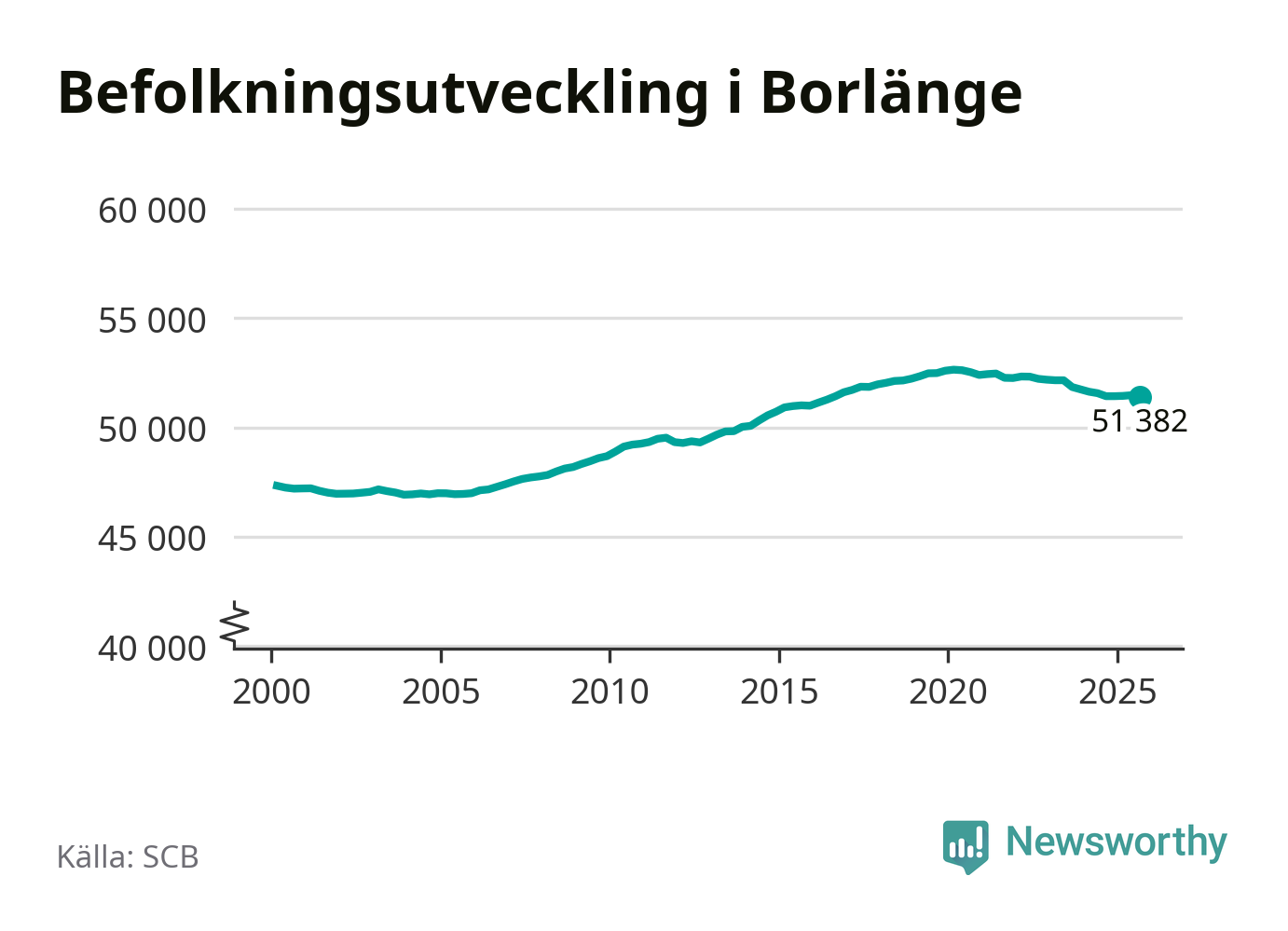 Befolkningen minskade i Borlänge kommun under det tredje kvartalet 2025. Den 30 september bodde enligt SCB:s senaste siffror 51 382 personer i kommunen, vilket är 87 färre än i slutet av andra kvartalet.