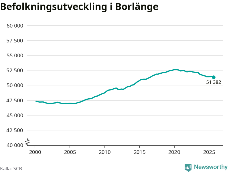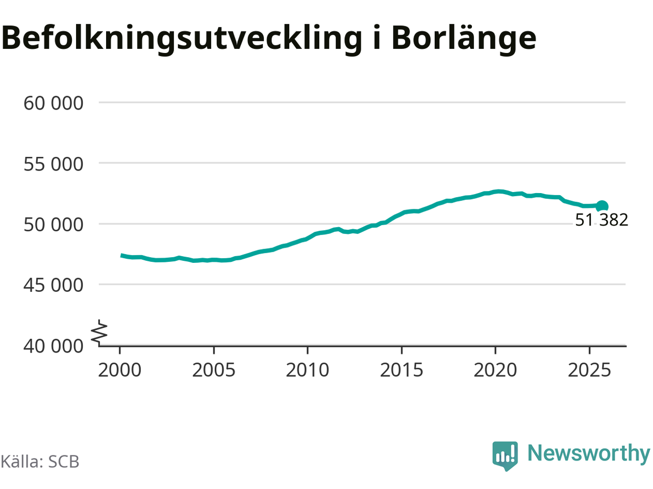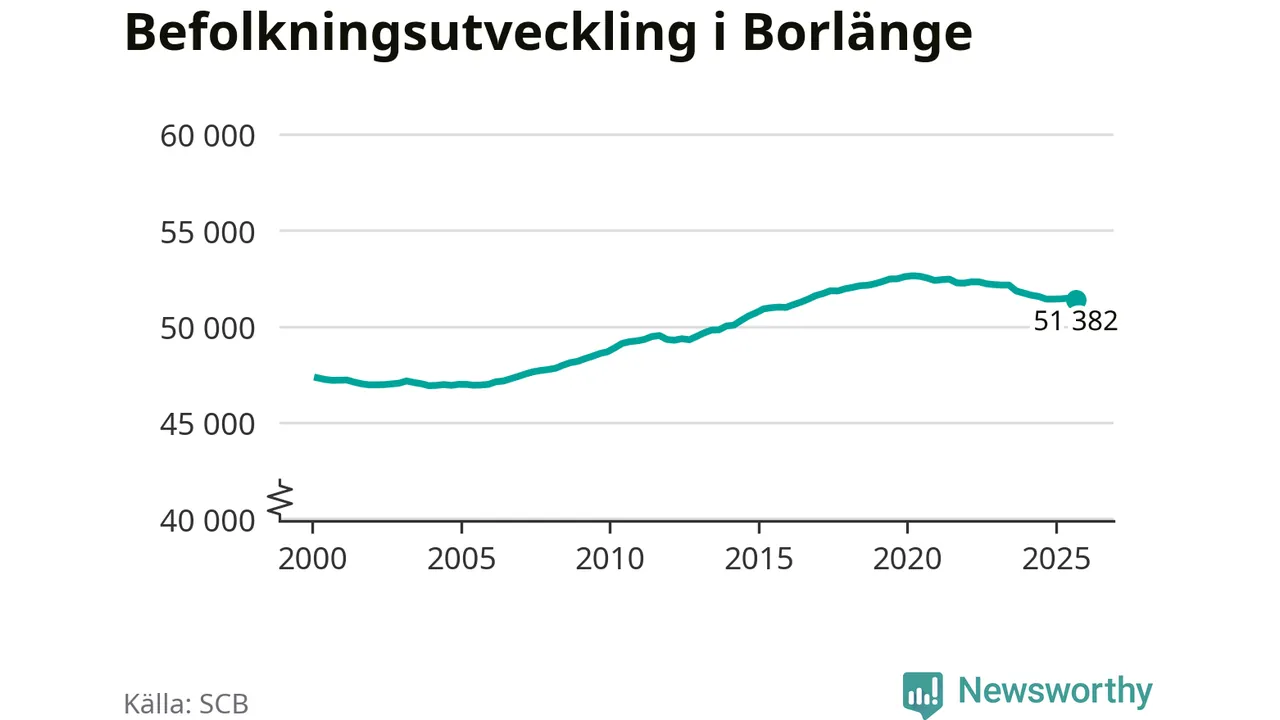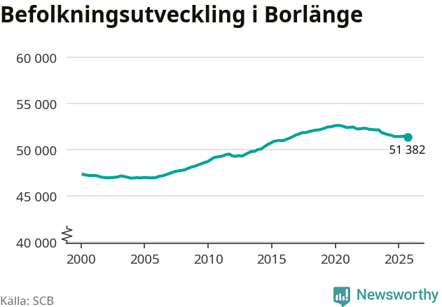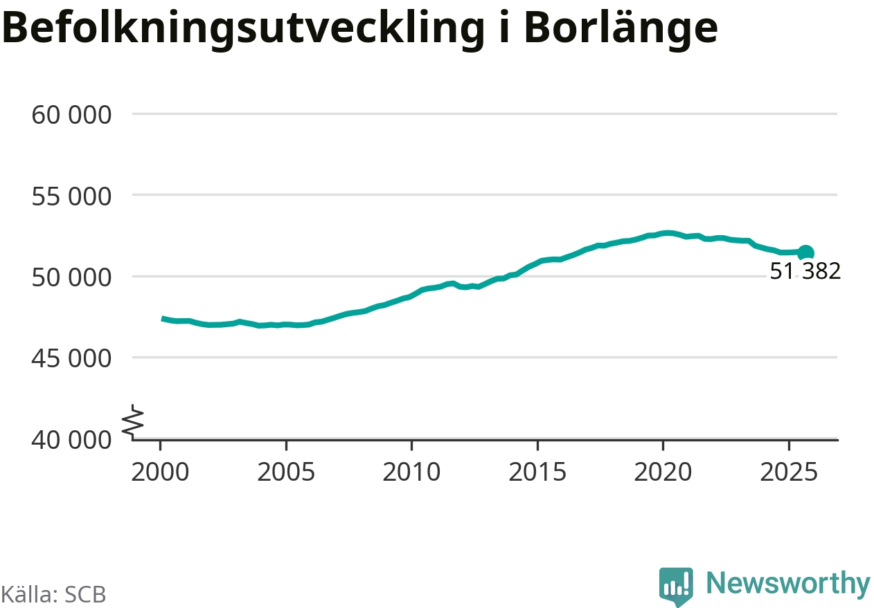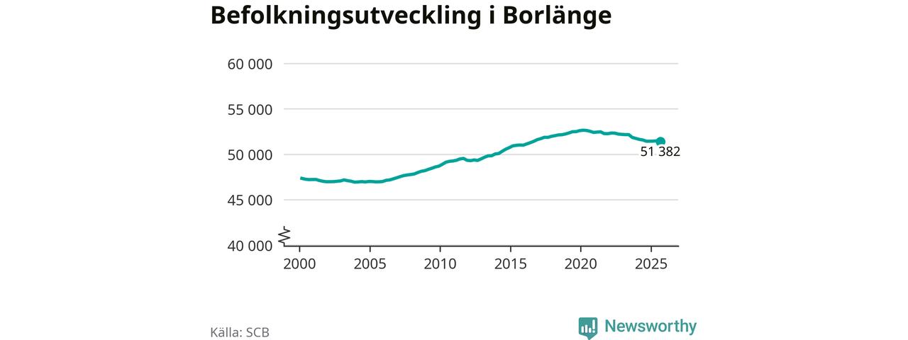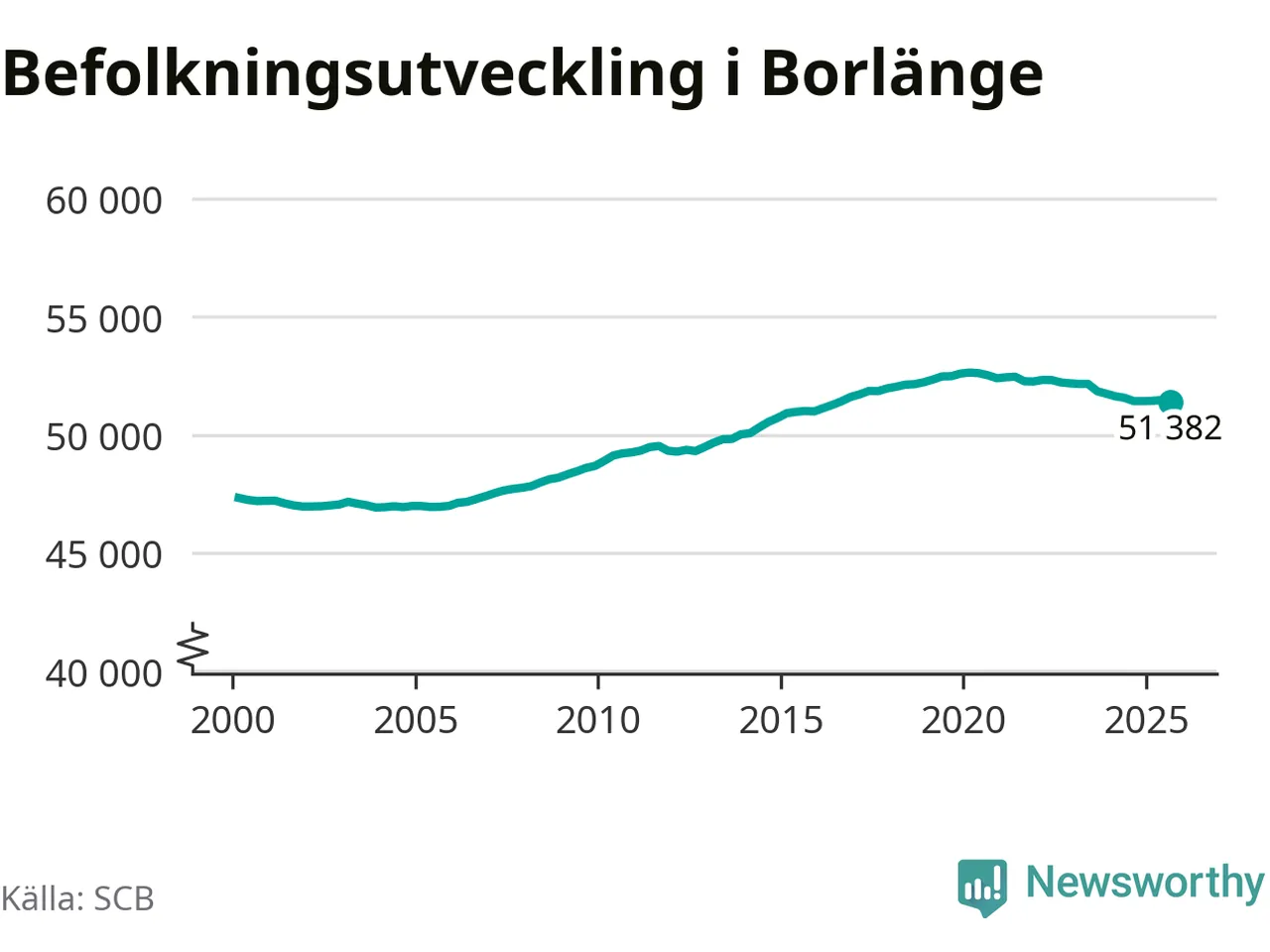Befolkningen minskade i Borlänge kommun under det tredje kvartalet 2025. Den 30 september bodde enligt SCB:s senaste siffror 51 382 personer i kommunen, vilket är 87 färre än i slutet av andra kvartalet.