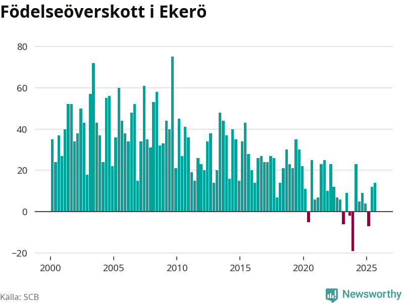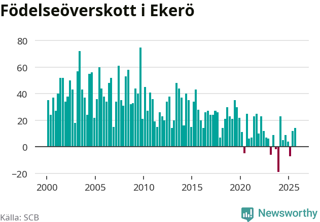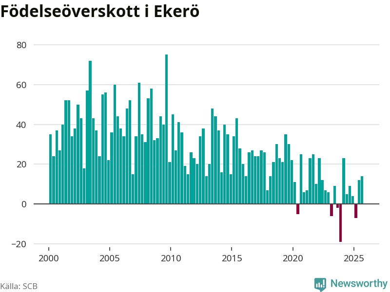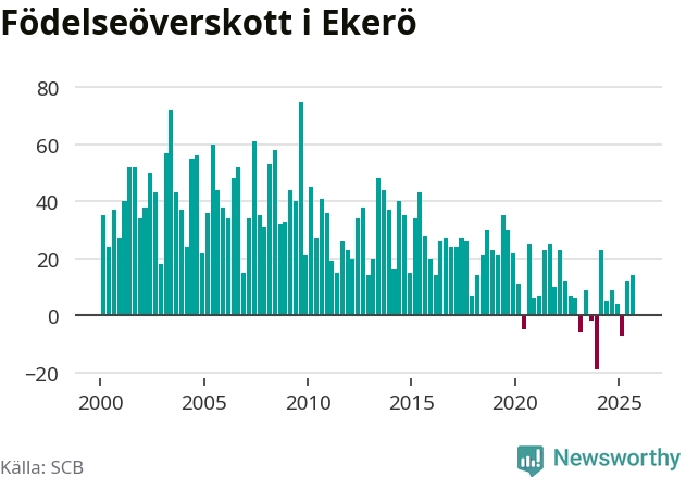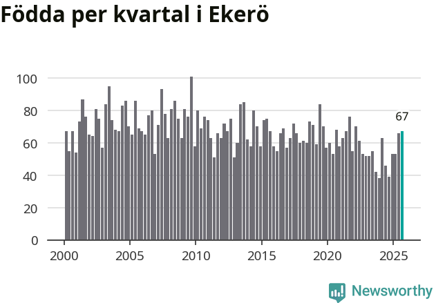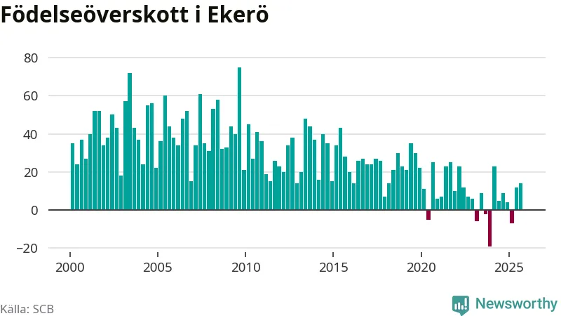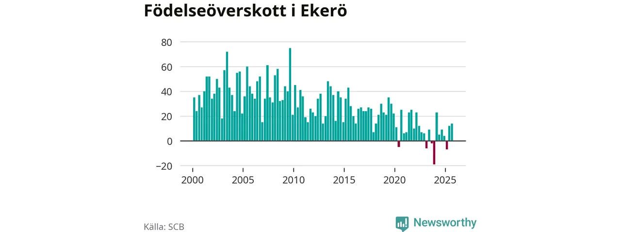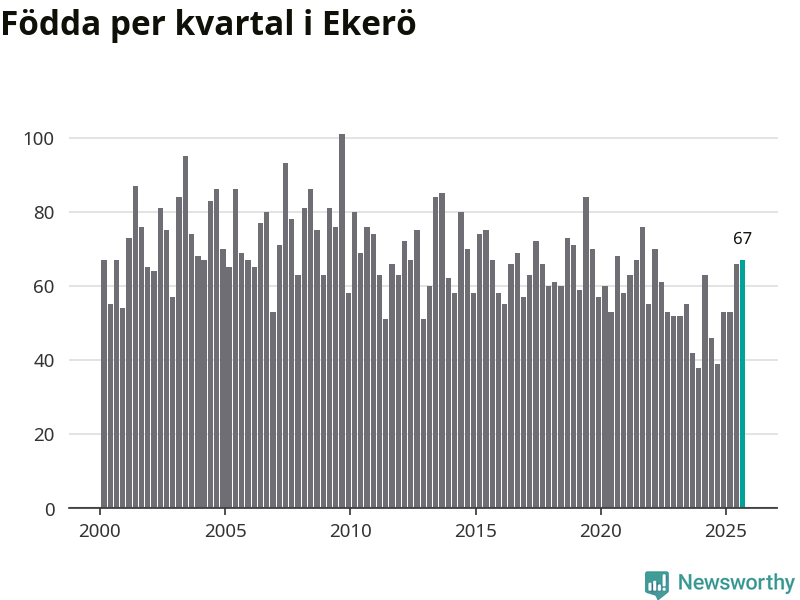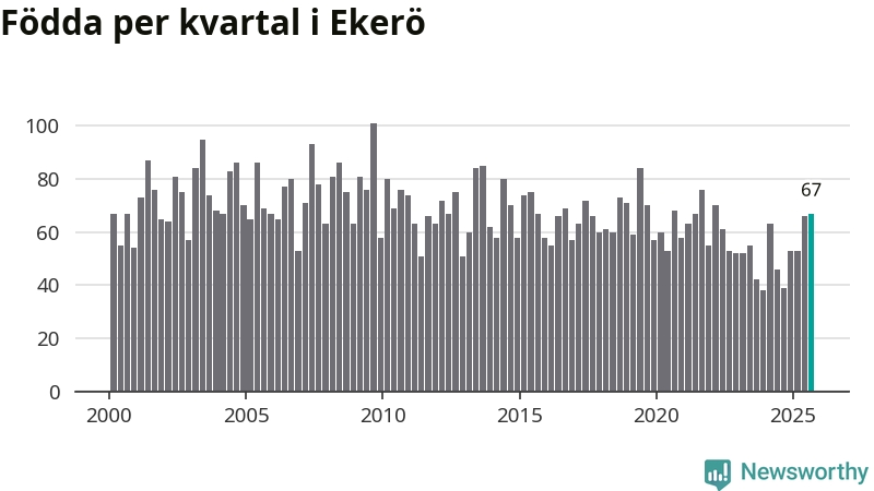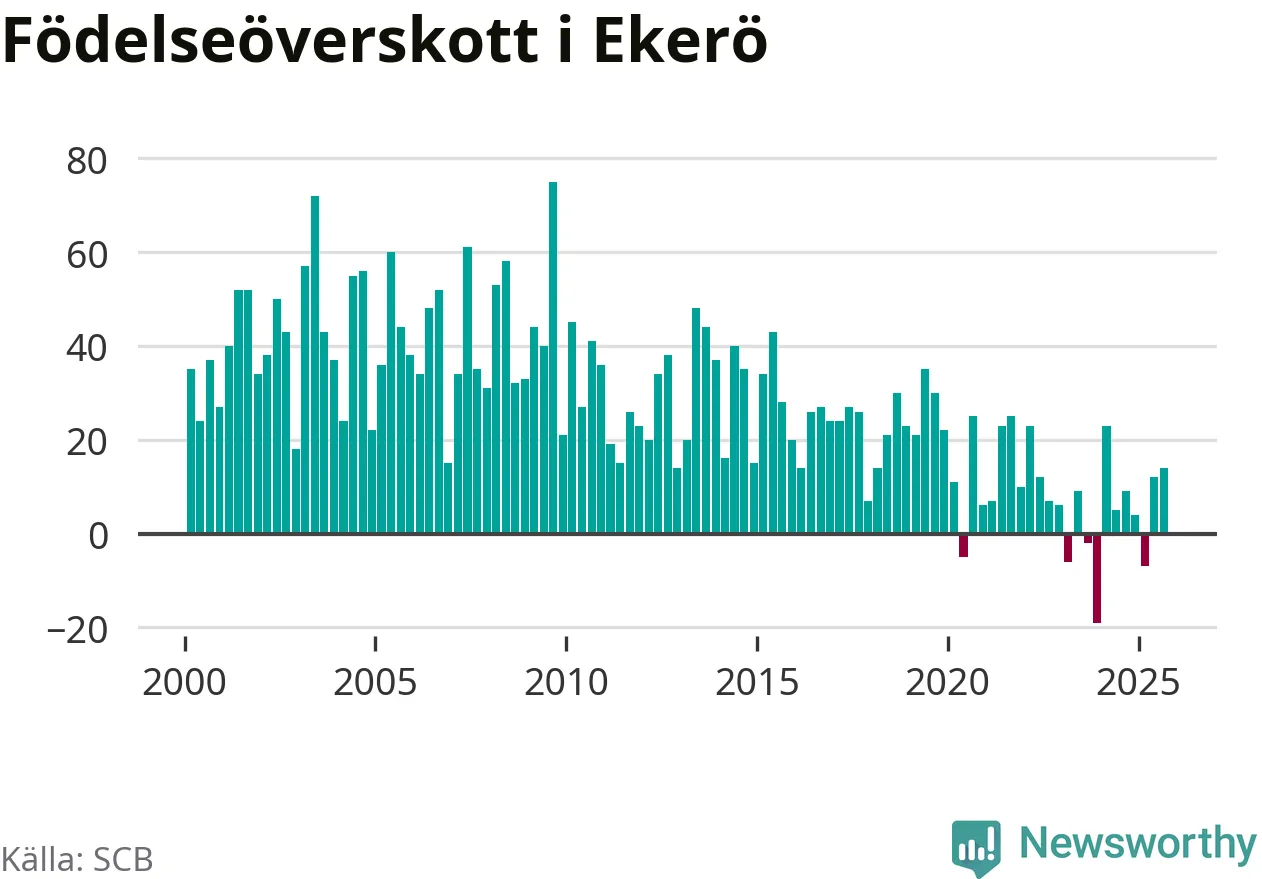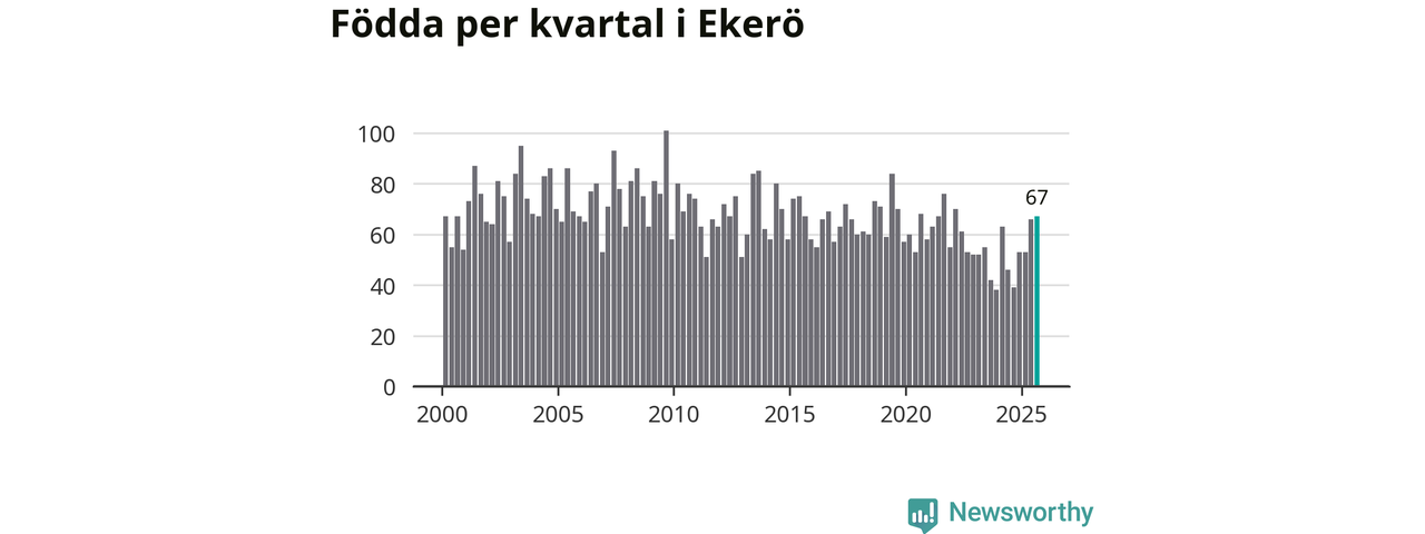 Enligt SCB:s siffror föddes 67 barn i Ekerö under det senaste kvartalet. Samtidigt avled 53 personer. Ekerö hade alltså ett positivt födelsenetto, vilket kommunen historiskt sett nästan alltid har haft.