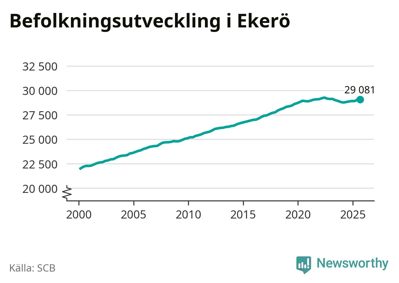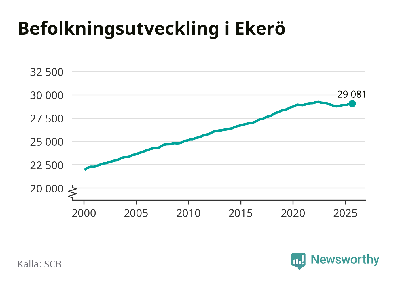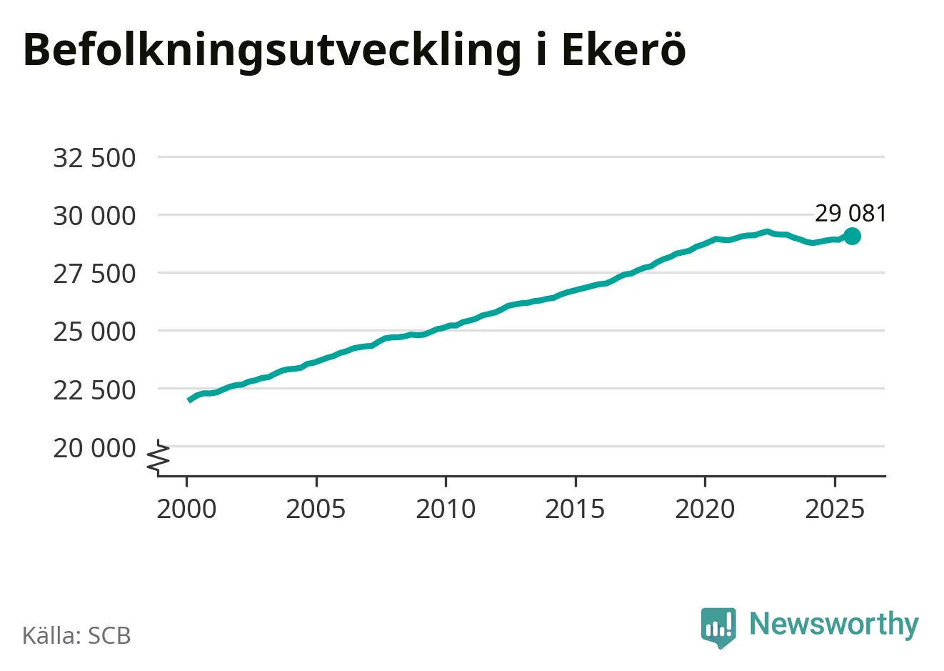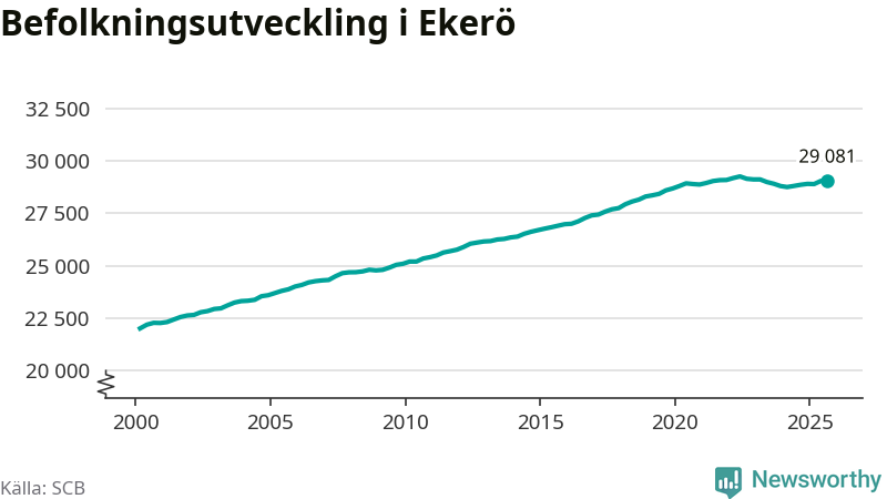 Befolkningen ökade i Ekerö kommun under det tredje kvartalet 2025. Den 30 september bodde enligt SCB:s senaste siffror 29 081 personer i kommunen, vilket är 31 fler än i slutet av andra kvartalet.