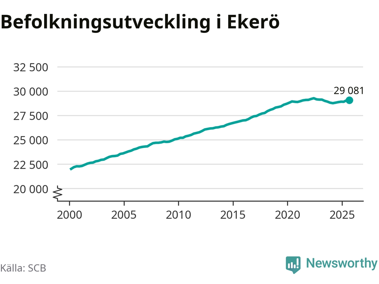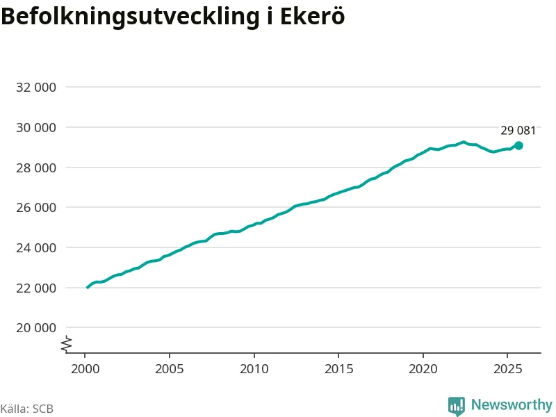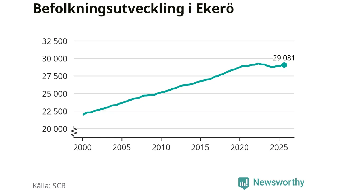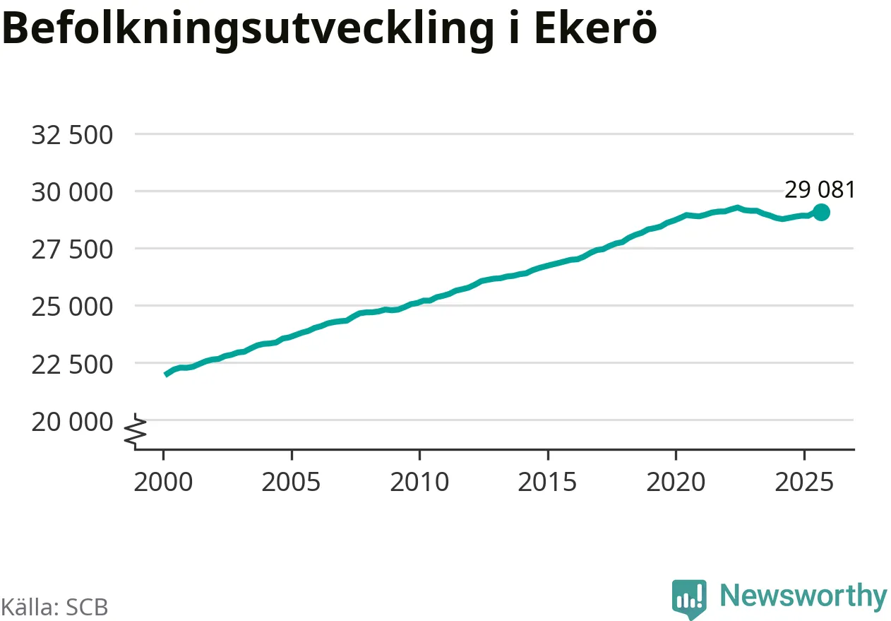 Befolkningen ökade i Ekerö kommun under det tredje kvartalet 2025. Den 30 september bodde enligt SCB:s senaste siffror 29 081 personer i kommunen, vilket är 31 fler än i slutet av andra kvartalet.
