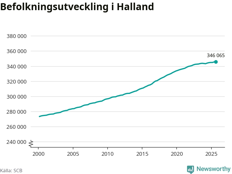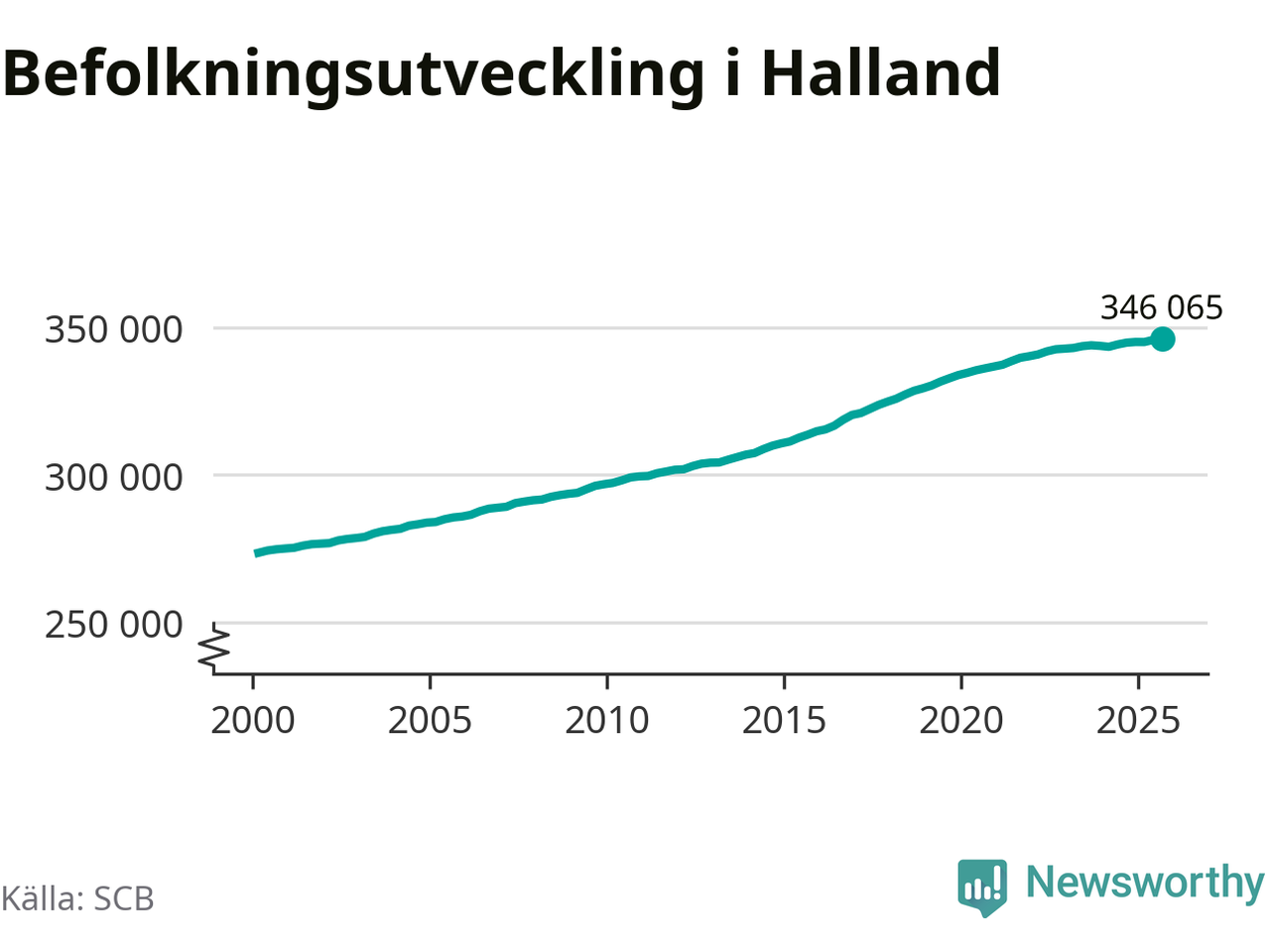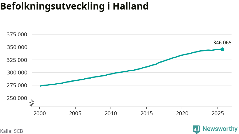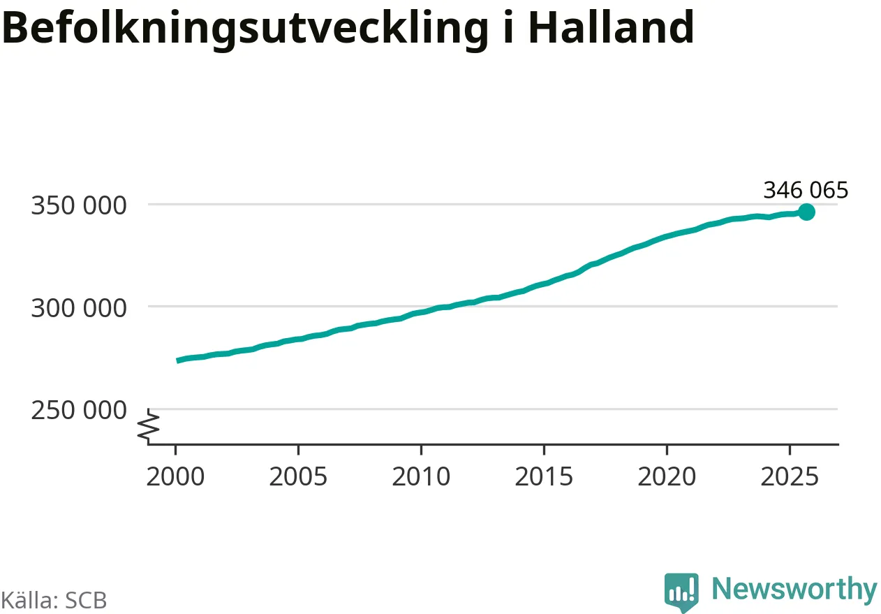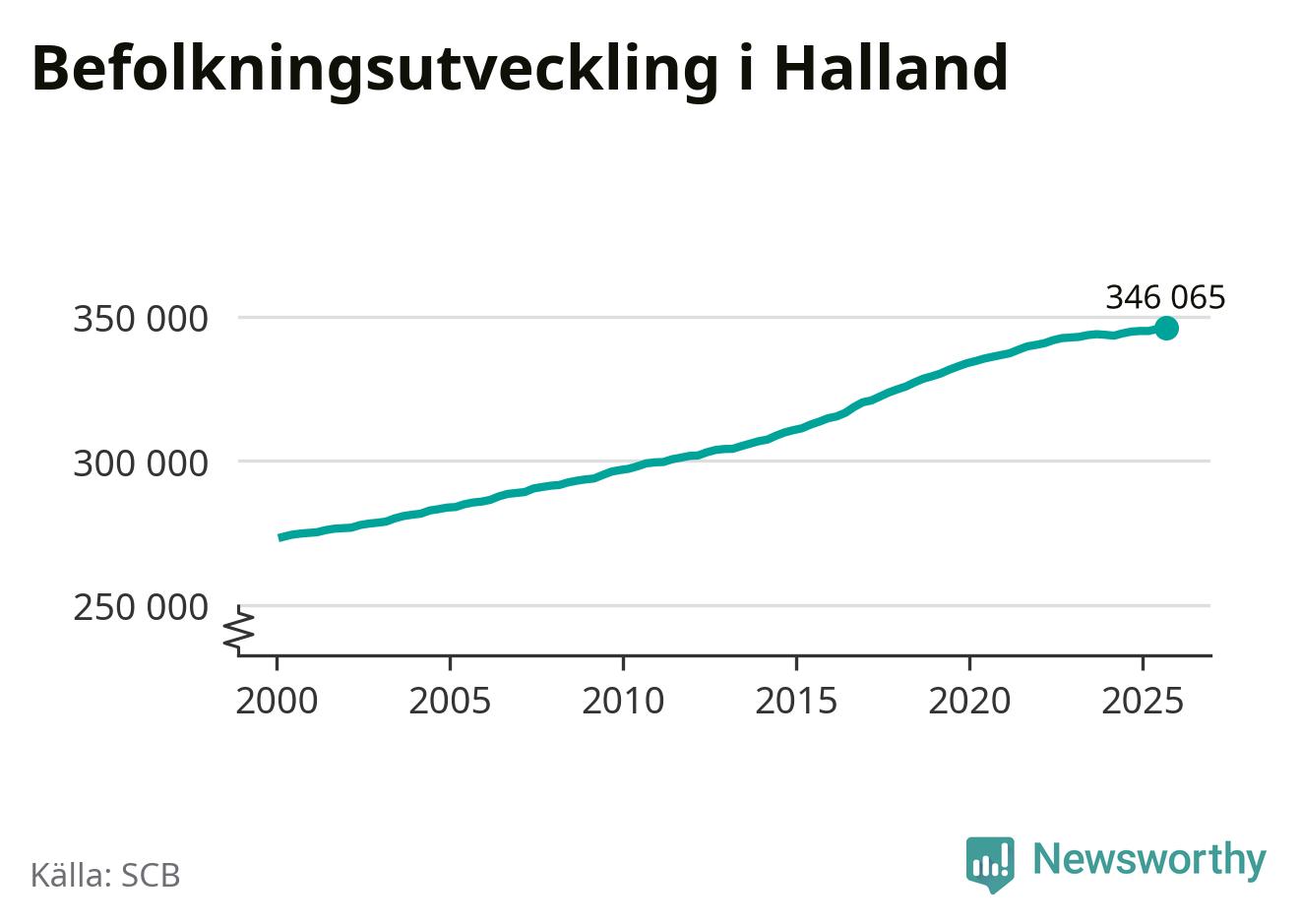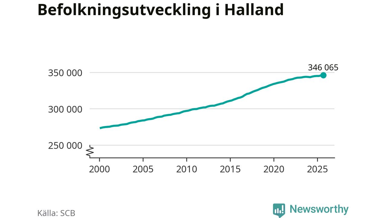 Befolkningen ökade i Hallands län under det tredje kvartalet 2025. Den 30 september bodde enligt SCB:s senaste siffror 346 065 personer i länet, vilket är 288 fler än i slutet av andra kvartalet.