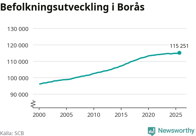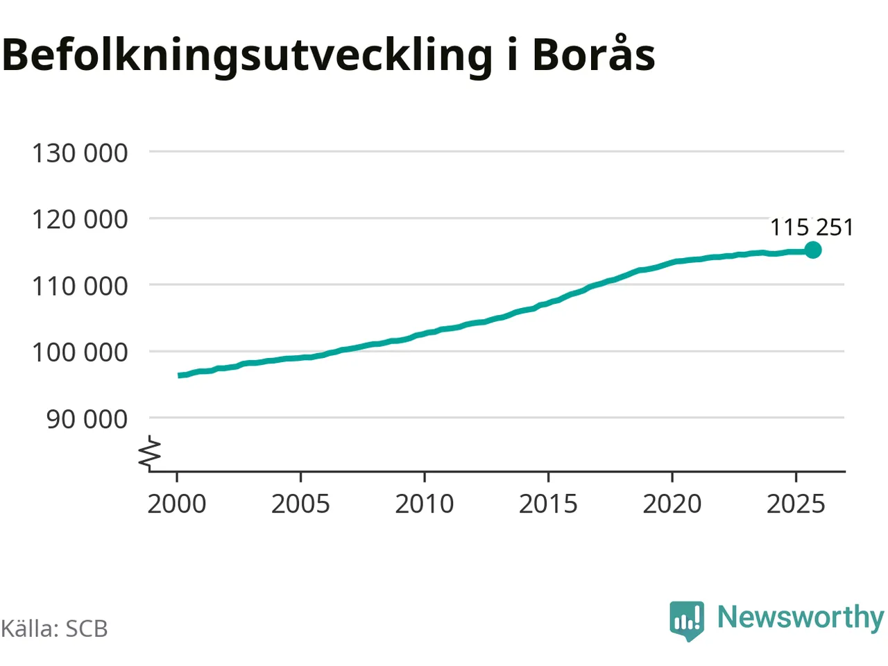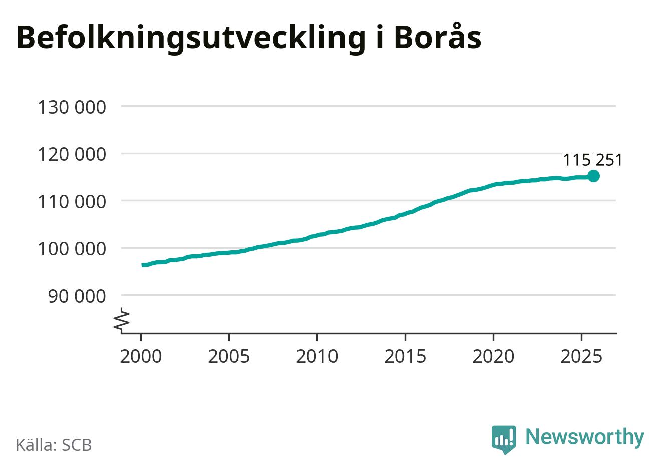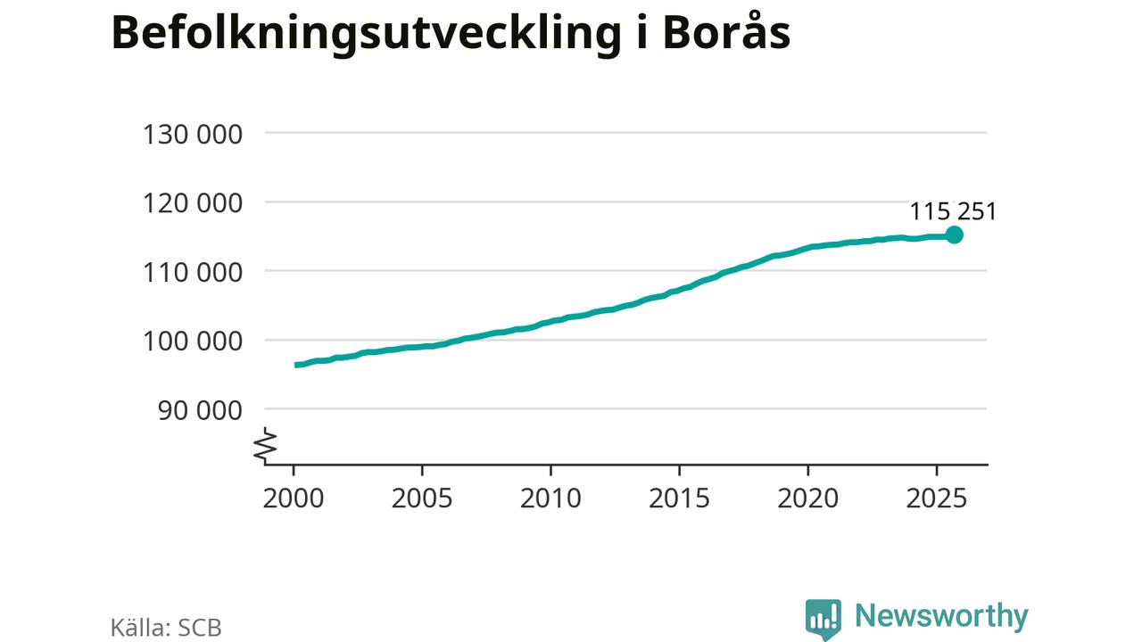 Befolkningen ökade i Borås kommun under det tredje kvartalet 2025. Den 30 september bodde enligt SCB:s senaste siffror 115 251 personer i kommunen, vilket är 356 fler än i slutet av andra kvartalet.