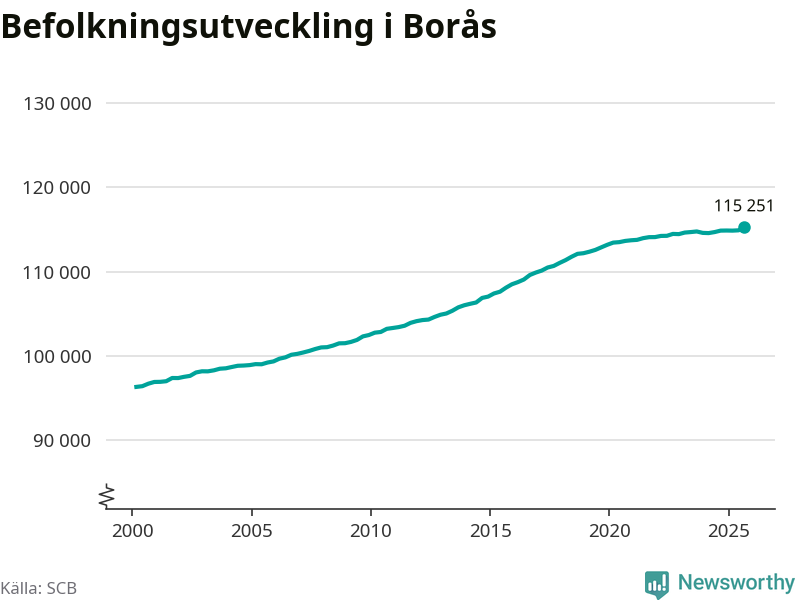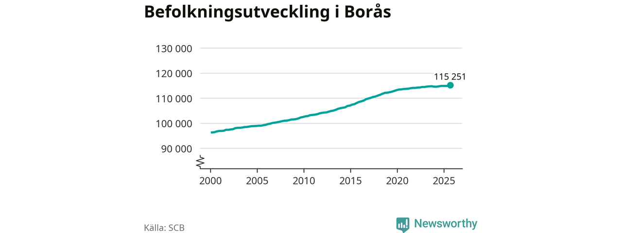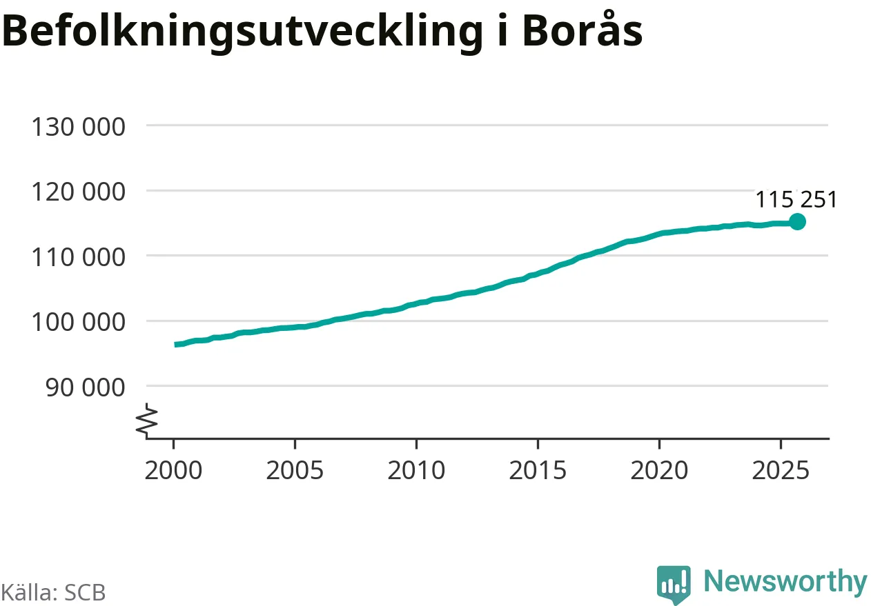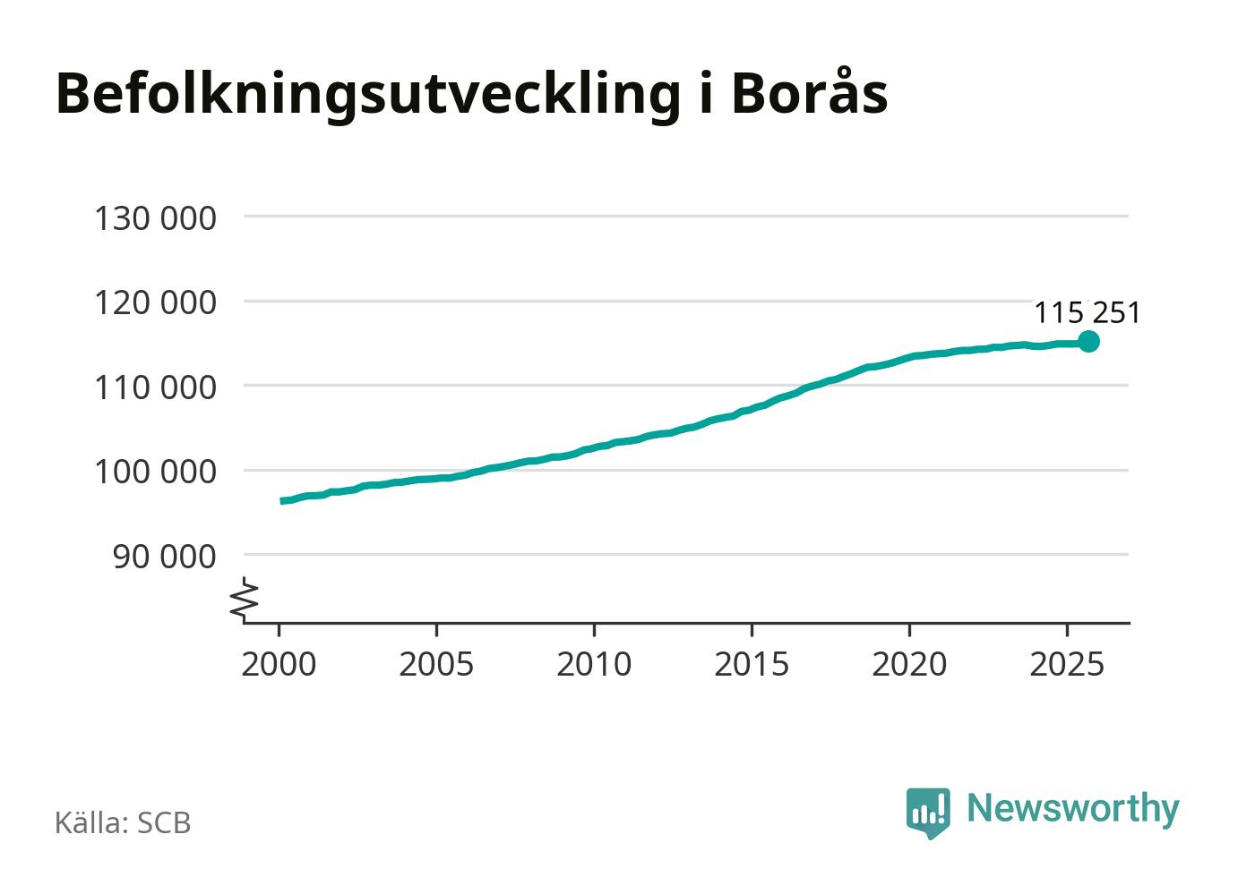 Befolkningen ökade i Borås kommun under det tredje kvartalet 2025. Den 30 september bodde enligt SCB:s senaste siffror 115 251 personer i kommunen, vilket är 356 fler än i slutet av andra kvartalet.