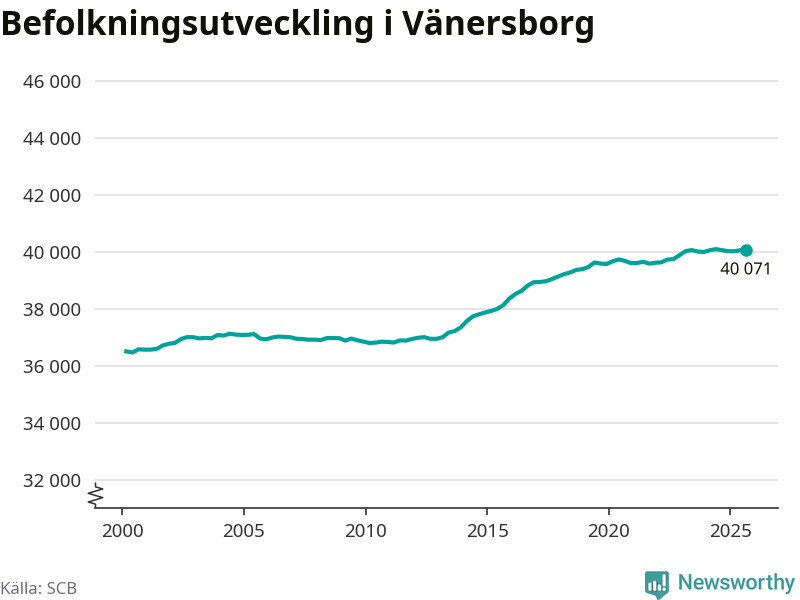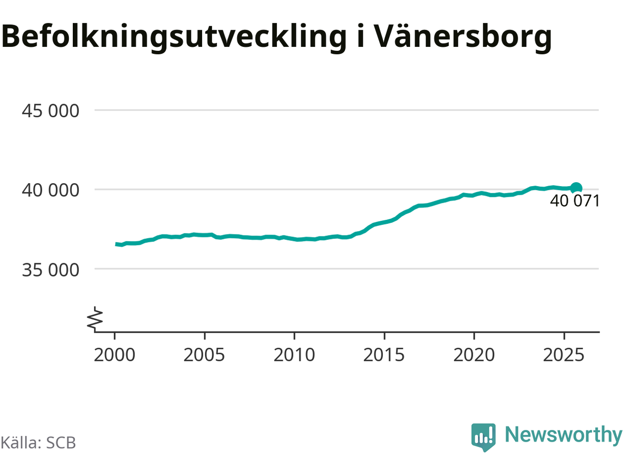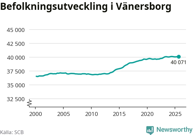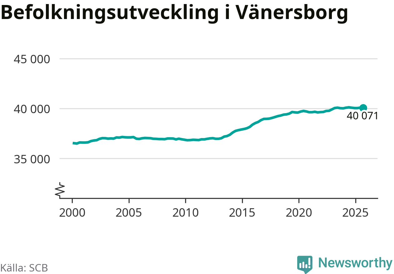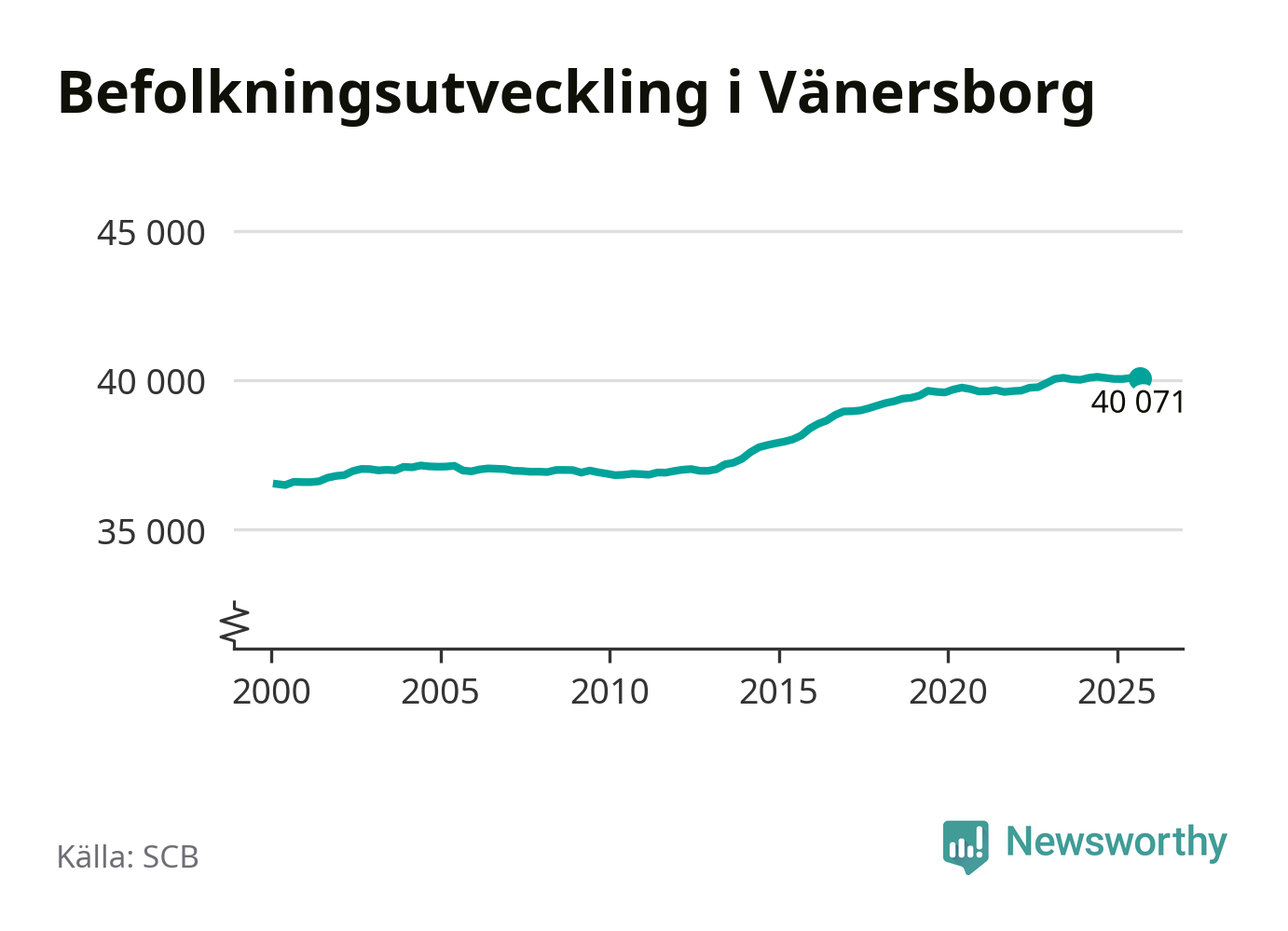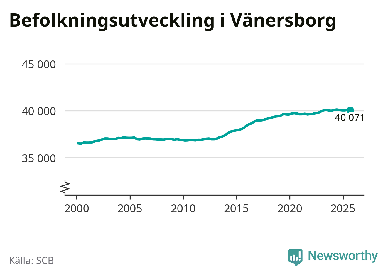 Den 30 september bodde 40 071 personer i Vänersborgs kommun, enligt SCB:s senaste siffror. Det är något färre än i slutet av andra kvartalet, men skillnaden är så liten att den lika gärna kan bero på den lilla justering som SCB gör av siffrorna för att skydda enskilda individers identitet.