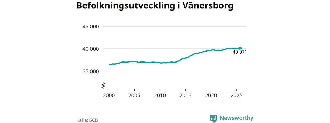 I slutet av tredje kvartalet 2025 bodde 40 071 personer i Vänersborgs kommun, enligt SCB:s senaste siffror.
