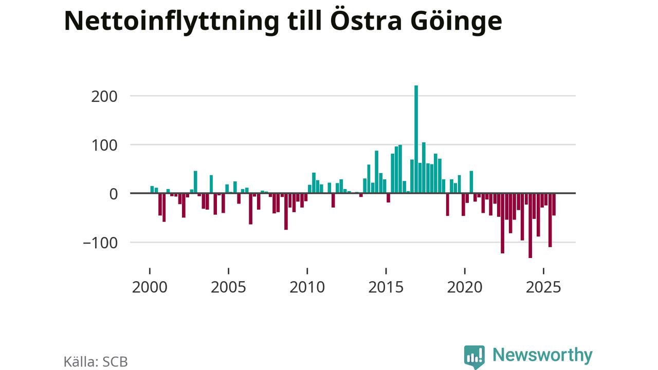 Fler flyttade från än till Östra Göinge kommun. Befolkningen minskade under det tredje kvartalet 2025. Det visar nya siffror från SCB.