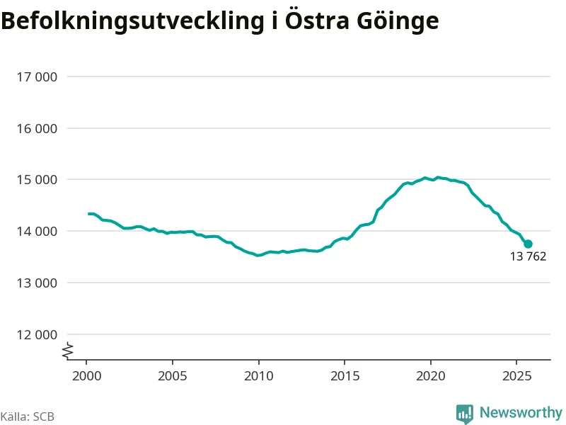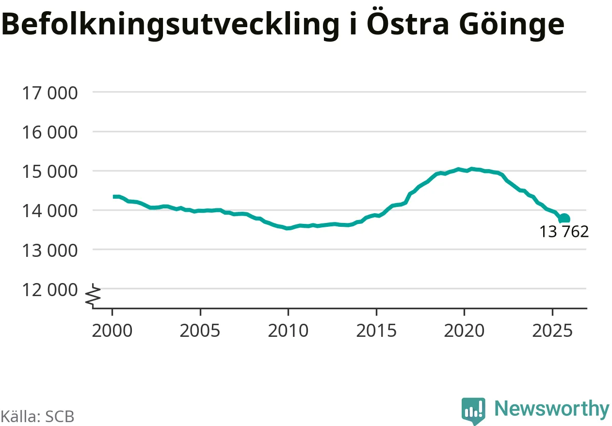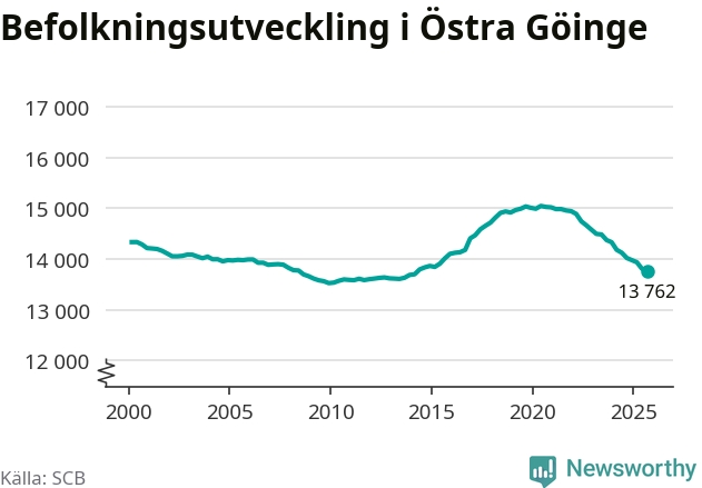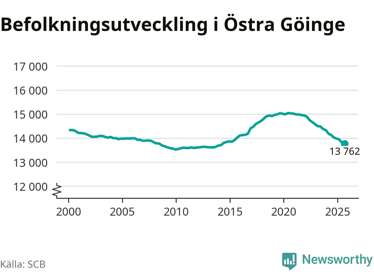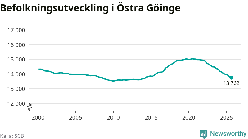 Befolkningen minskade i Östra Göinge kommun under det tredje kvartalet 2025. Den 30 september bodde enligt SCB:s senaste siffror 13 762 personer i kommunen, vilket är 48 färre än i slutet av andra kvartalet. Minskningen är procentuellt sett en av de största i Skåne.
