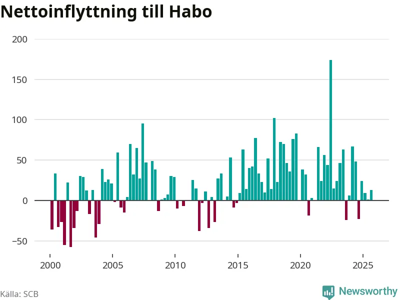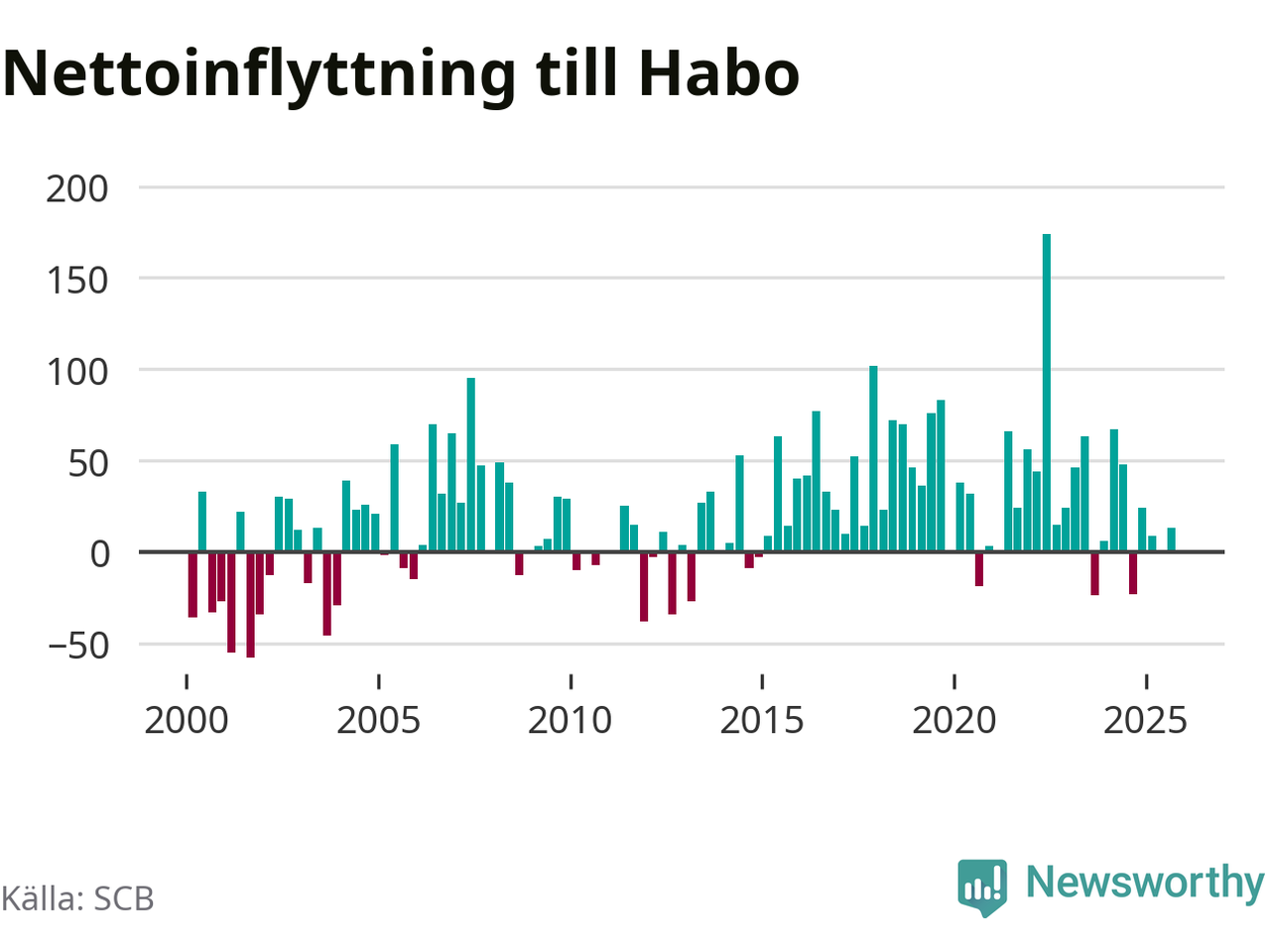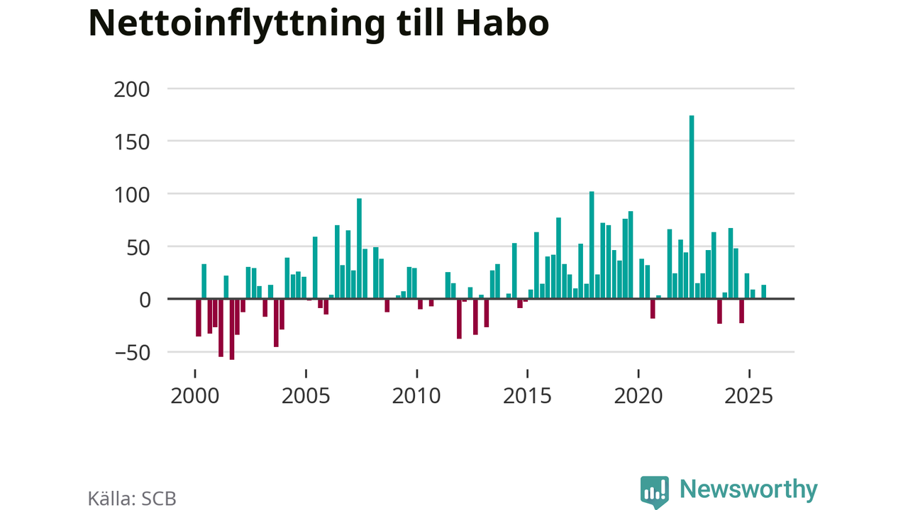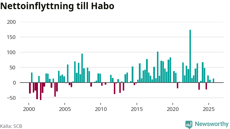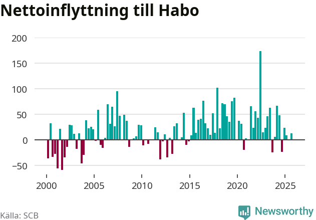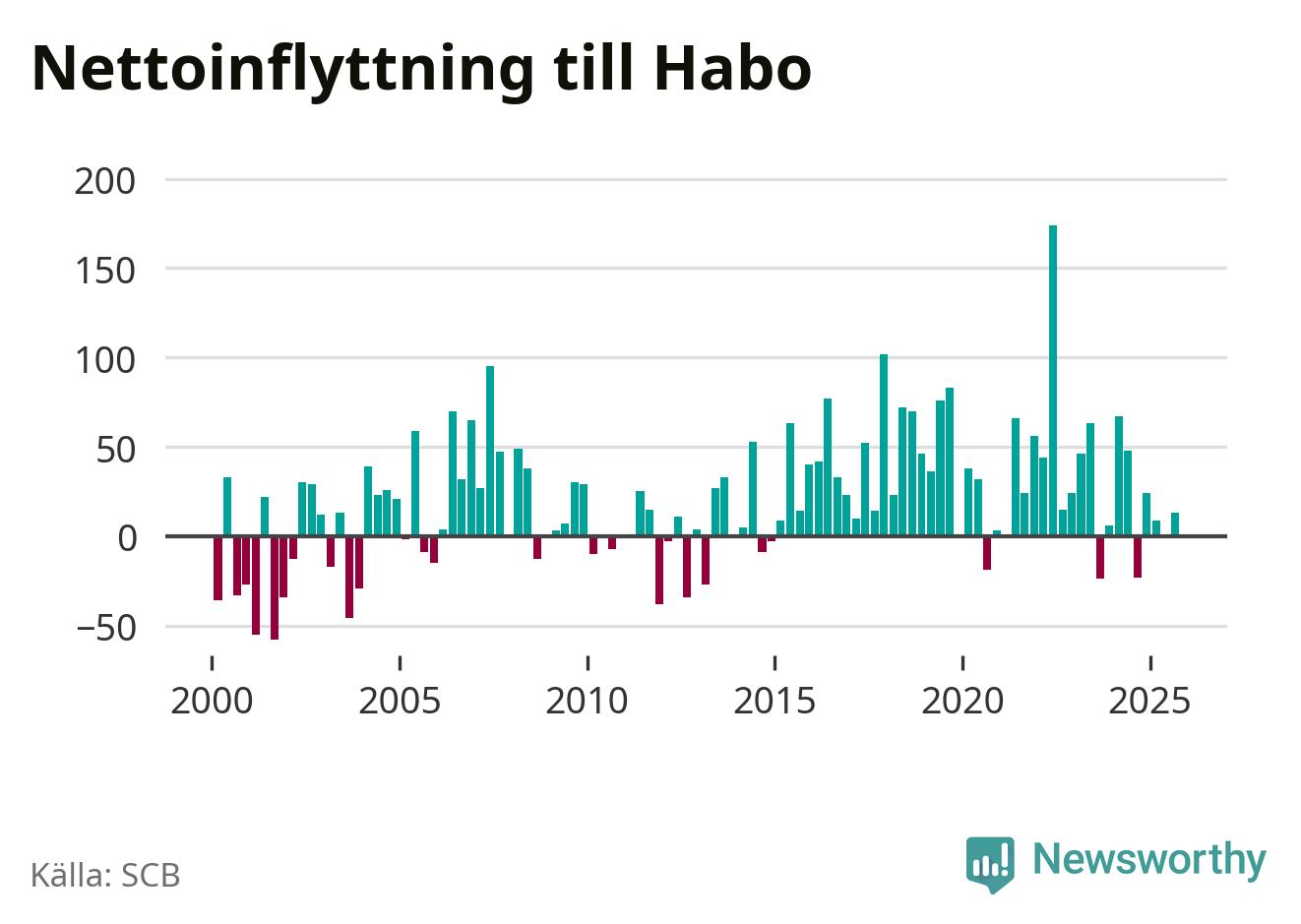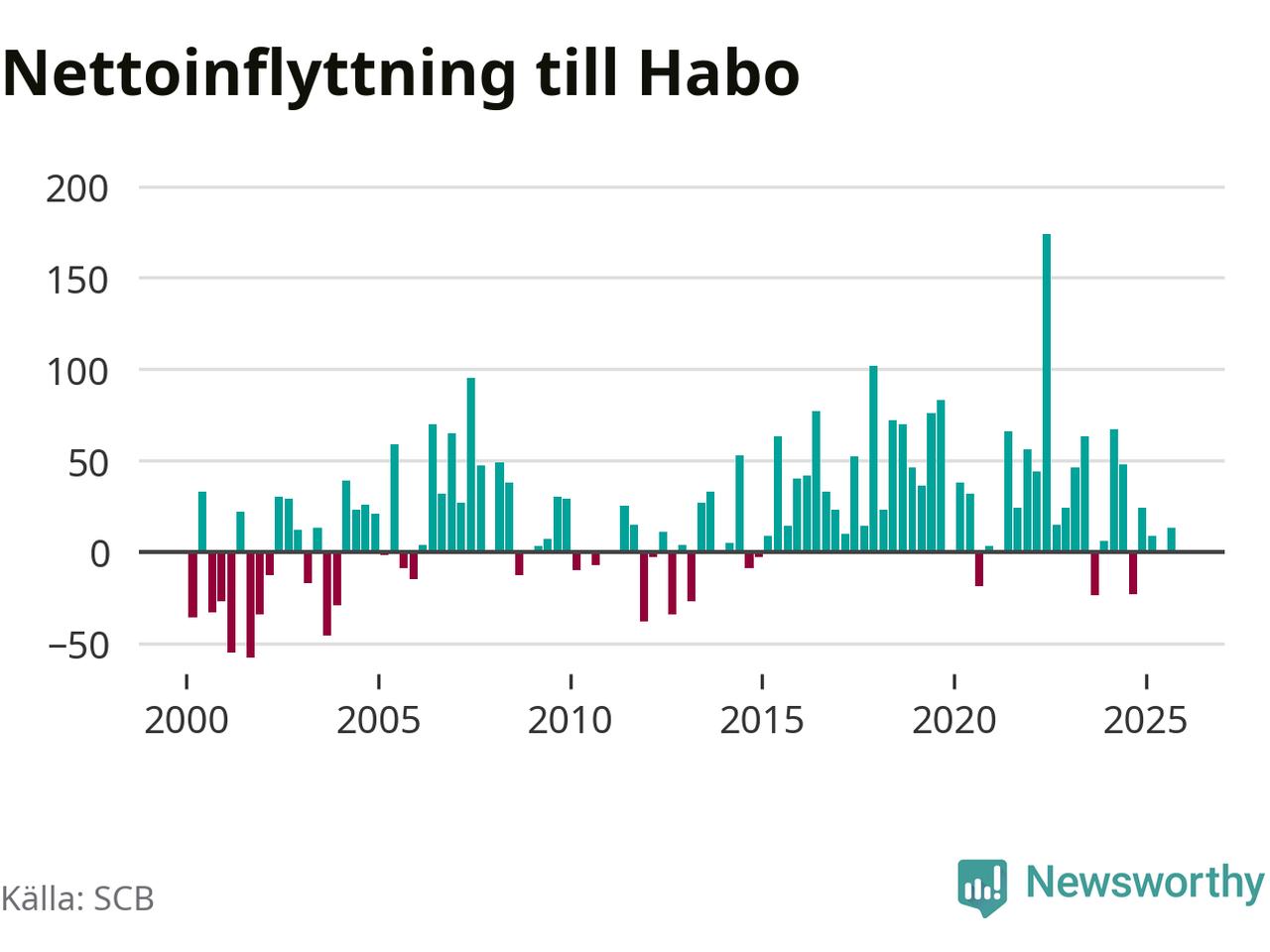 Enligt SCB:s siffror föddes 39 barn i Habo under det senaste kvartalet. Samtidigt avled 22 personer. Habo hade alltså ett positivt födelsenetto, vilket kommunen historiskt sett nästan alltid har haft.