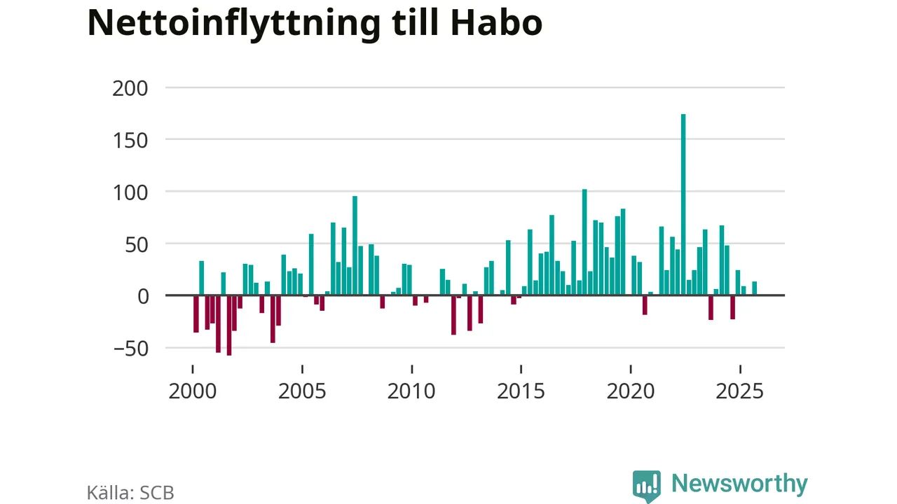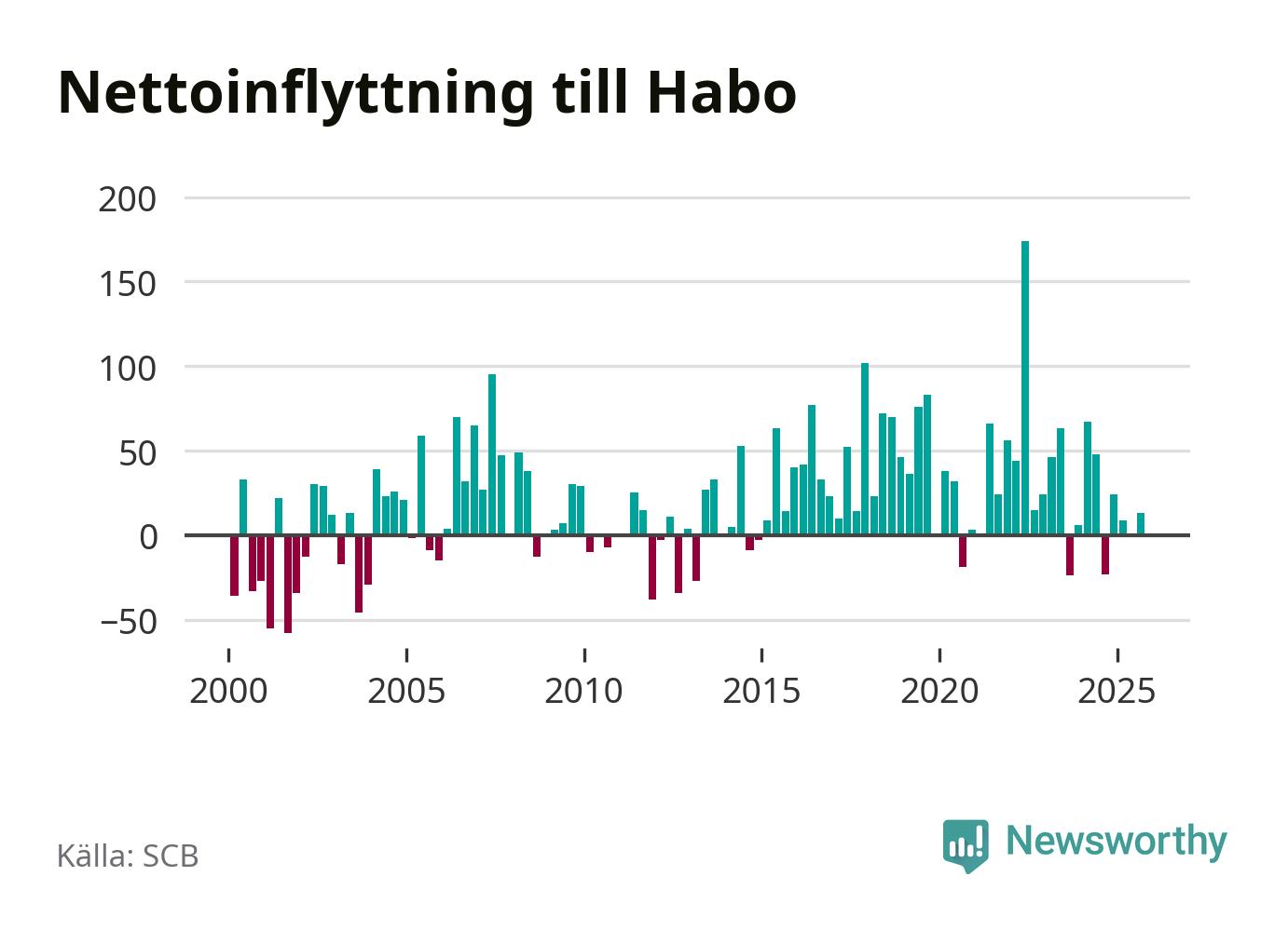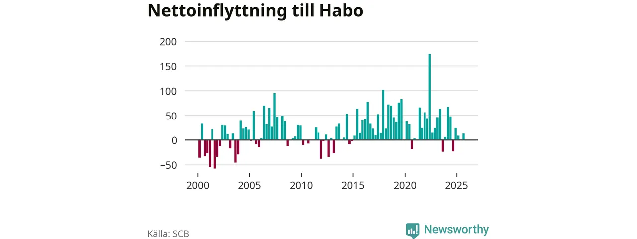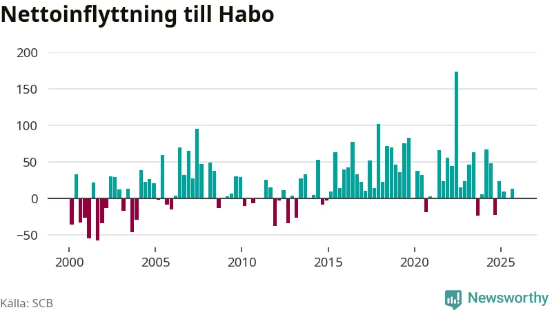 Under tredje kvartalet 2025 flyttade 172 personer till kommunen medan 159 personer flyttade därifrån. Sedan seklets början har Habo haft ett positivt flyttnetto under nästan alla kvartal, inklusive det senaste kvartalet.