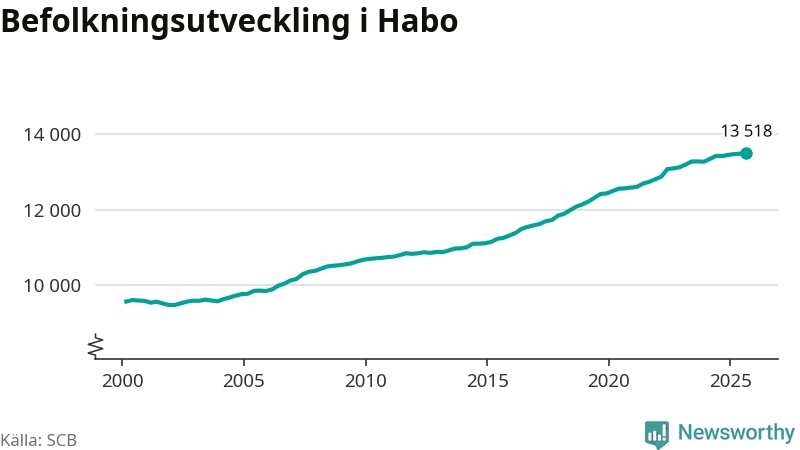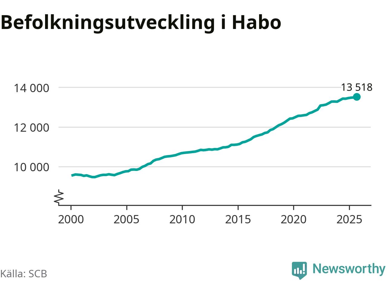 Jämfört med för ett år sedan har befolkningen i Habo ökat med drygt 90 personer – vilket motsvarar en ökning på 0,7 procent. Sedan millennieskiftet har folkmängden ökat med runt 3 960 personer, eller 41 procent. Det är den största ökningen i Jönköpings län under den perioden.