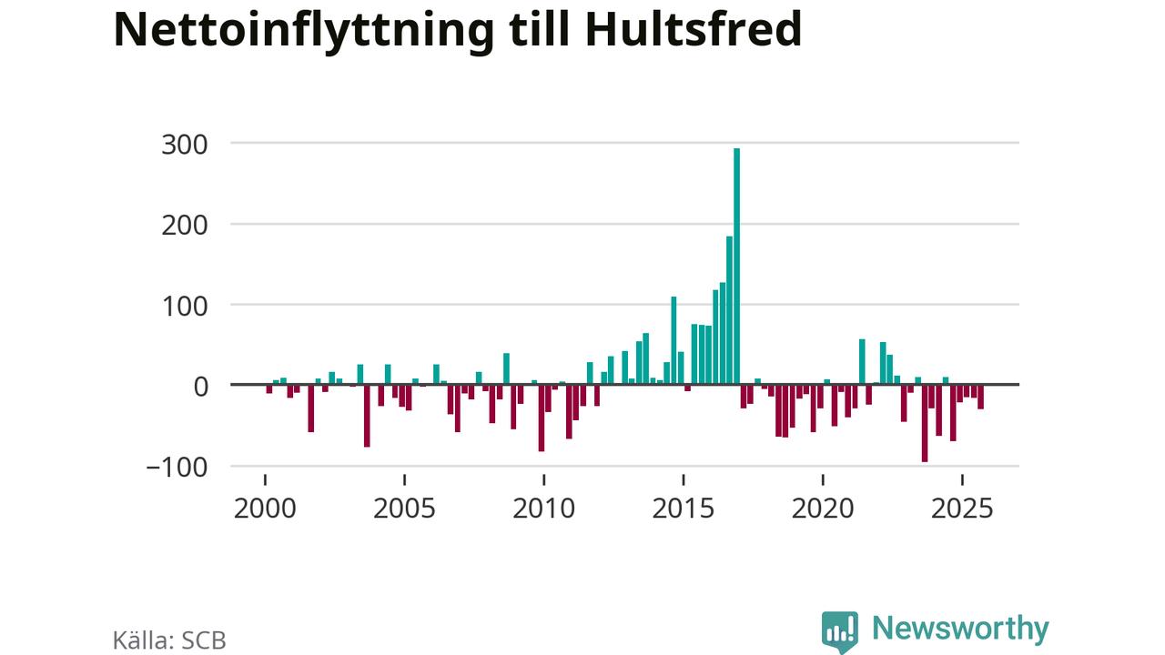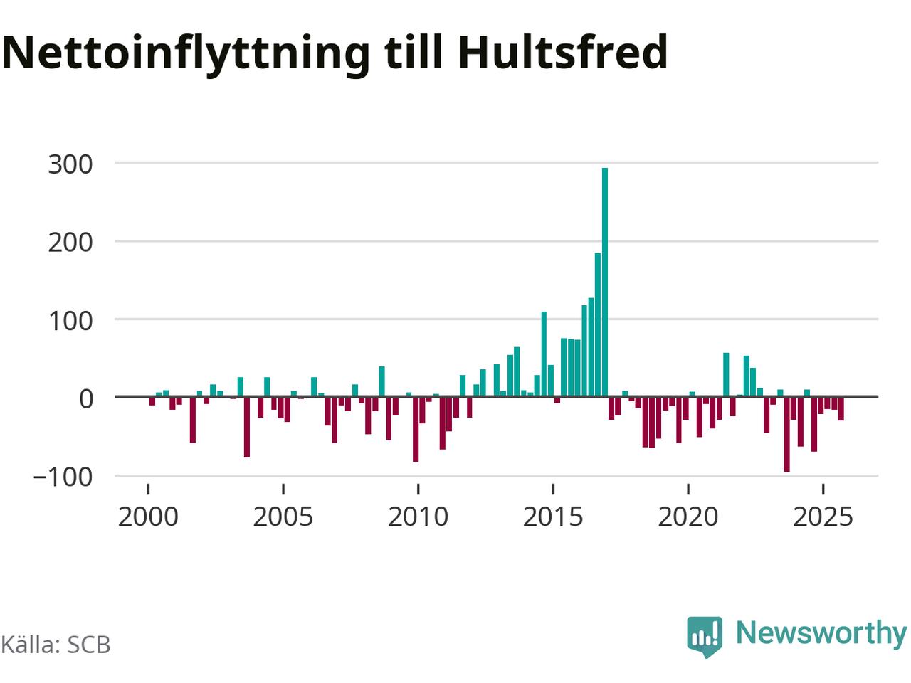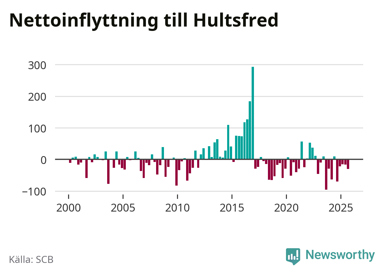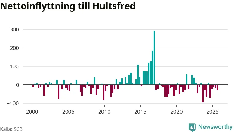 Under tredje kvartalet 2025 flyttade 164 personer till kommunen medan 194 personer flyttade därifrån. Sedan seklets början har Hultsfred oftast haft ett negativt flyttnetto.