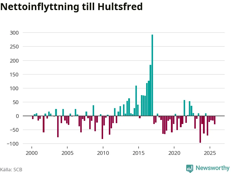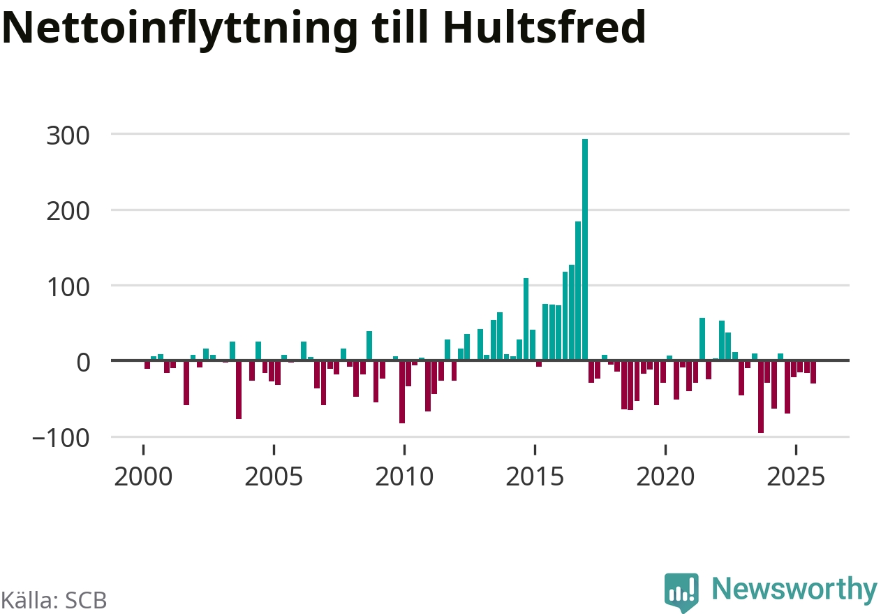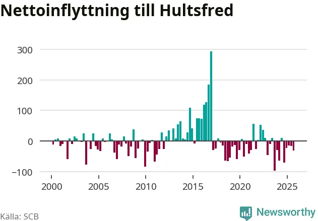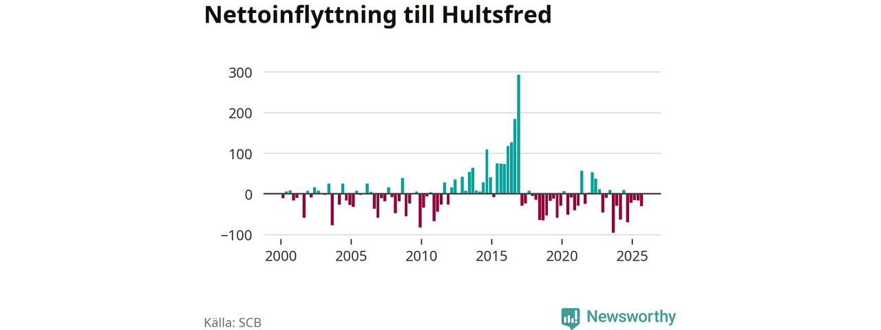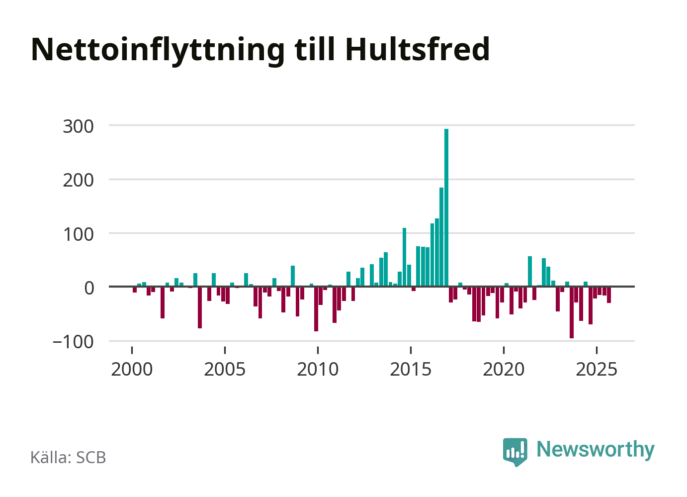 Under tredje kvartalet 2025 flyttade 164 personer till kommunen medan 194 personer flyttade därifrån. Sedan seklets början har Hultsfred oftast haft ett negativt flyttnetto.