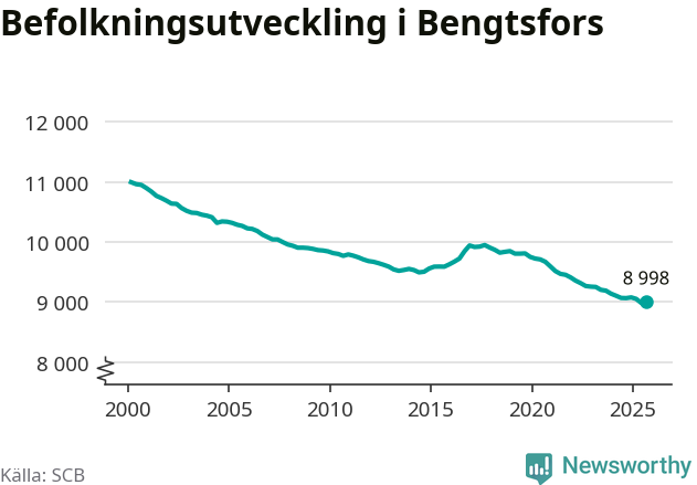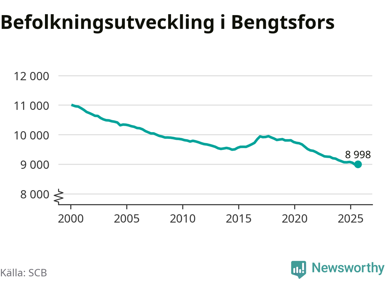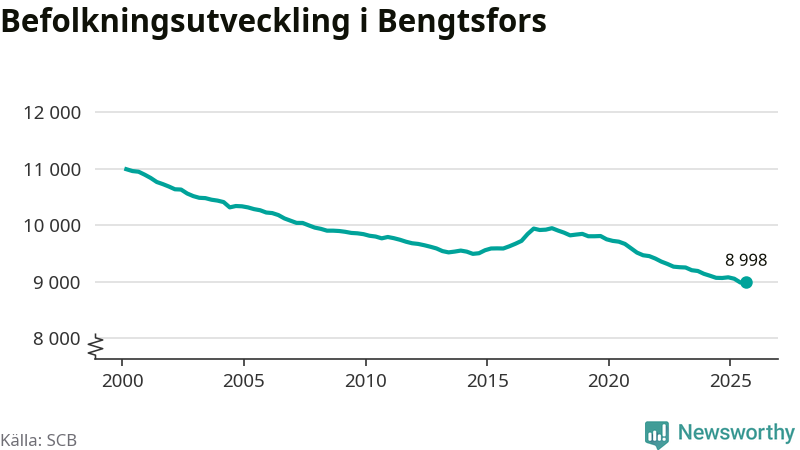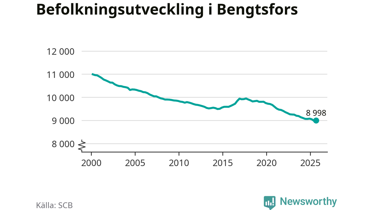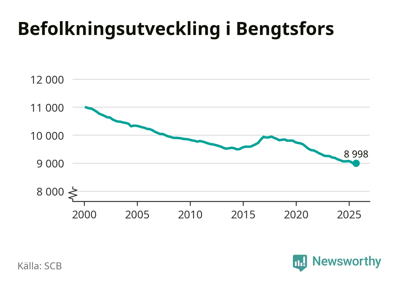 Befolkningen ökade i Bengtsfors kommun under det tredje kvartalet 2025. Den 30 september bodde enligt SCB:s senaste siffror 8 998 personer i kommunen, vilket är 14 fler än i slutet av andra kvartalet.