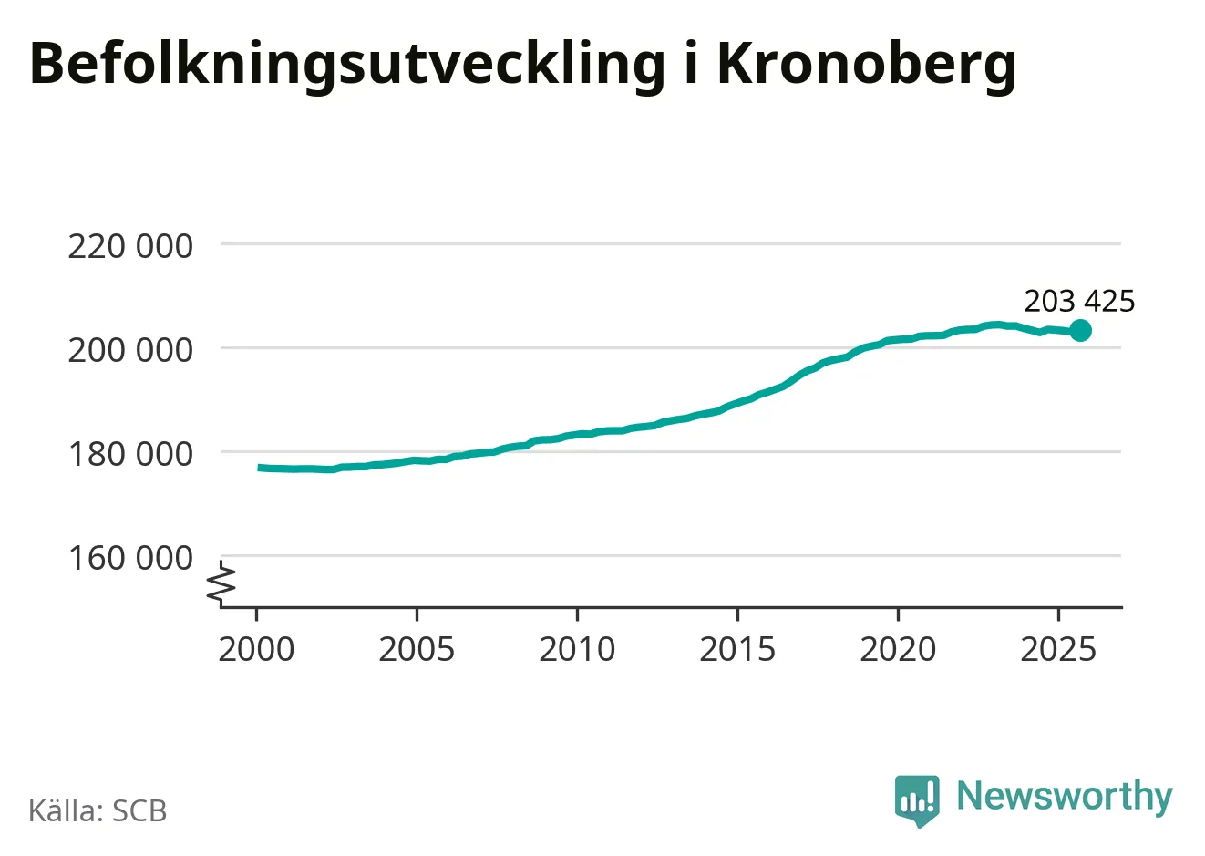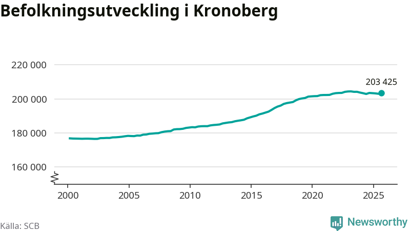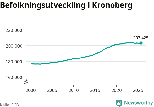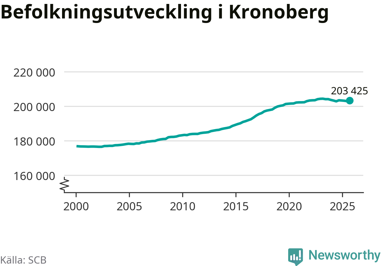 Befolkningen ökade i Kronobergs län under det tredje kvartalet 2025. Den 30 september bodde enligt SCB:s senaste siffror 203 425 personer i länet, vilket är 443 fler än i slutet av andra kvartalet.
