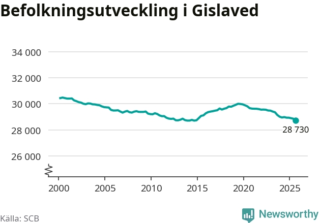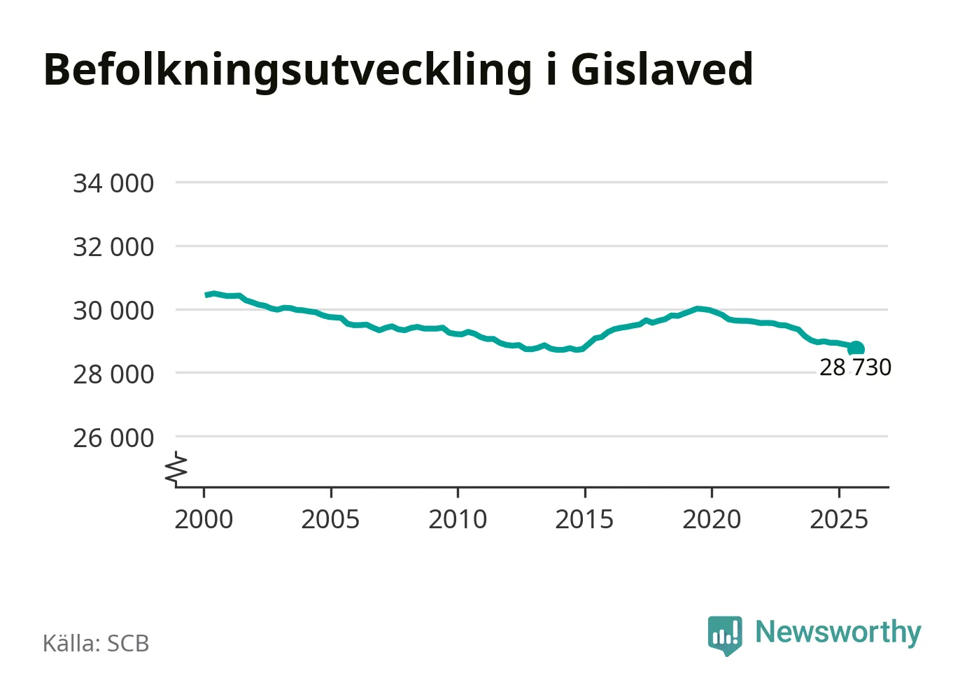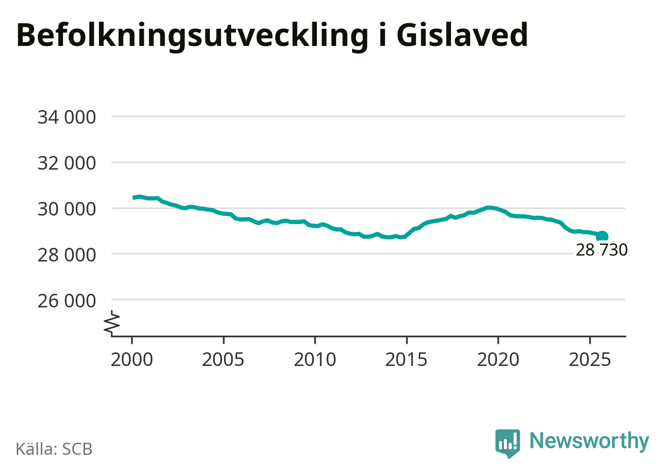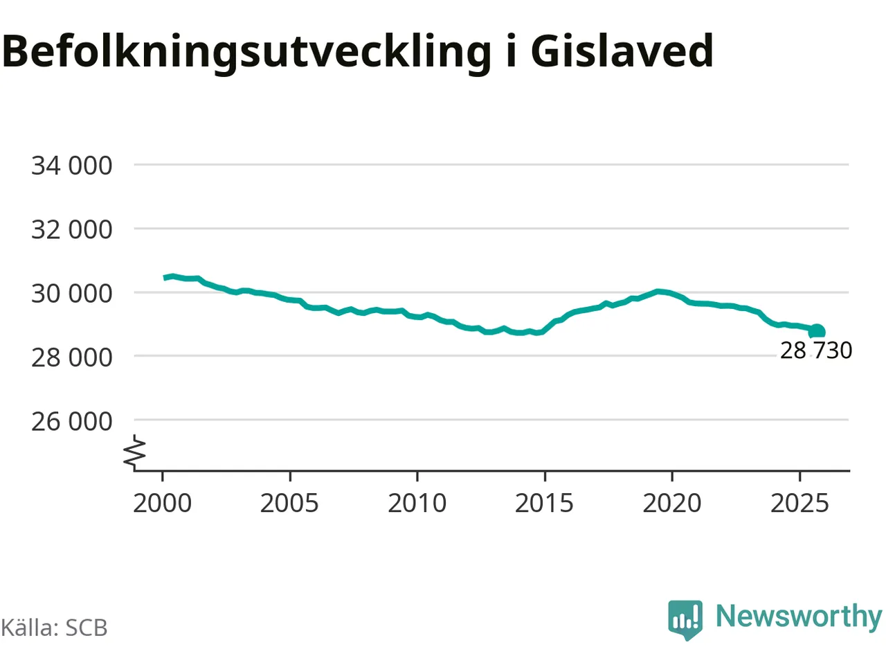 Befolkningen minskade i Gislaveds kommun under det tredje kvartalet 2025. Den 30 september bodde enligt SCB:s senaste siffror 28 730 personer i kommunen, vilket är 126 färre än i slutet av andra kvartalet. Minskningen är procentuellt sett en av de största i Jönköpings län.