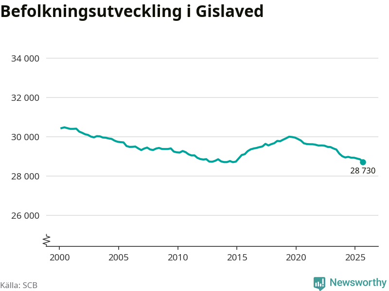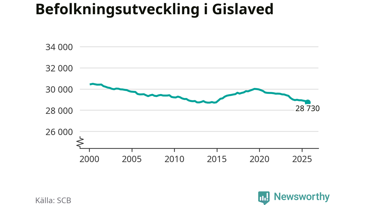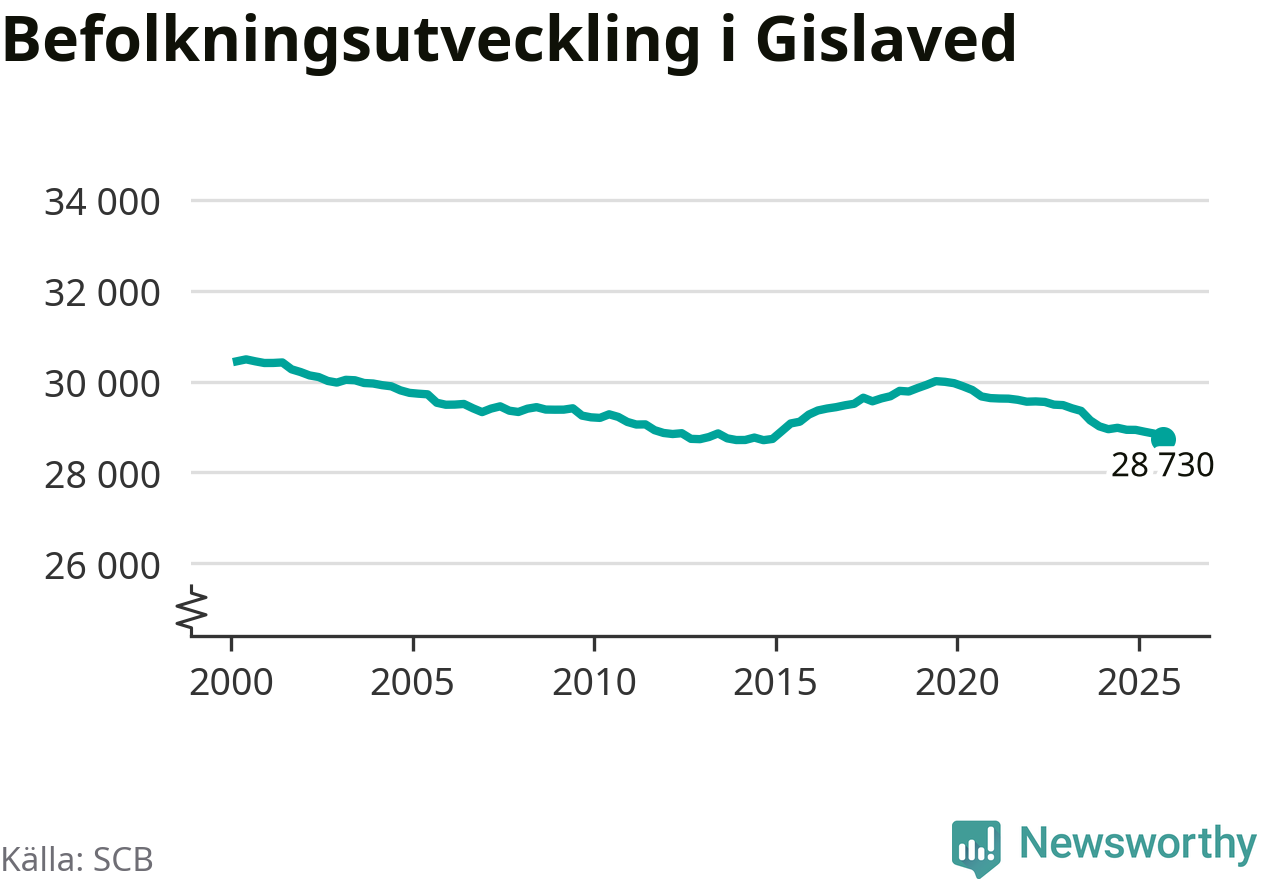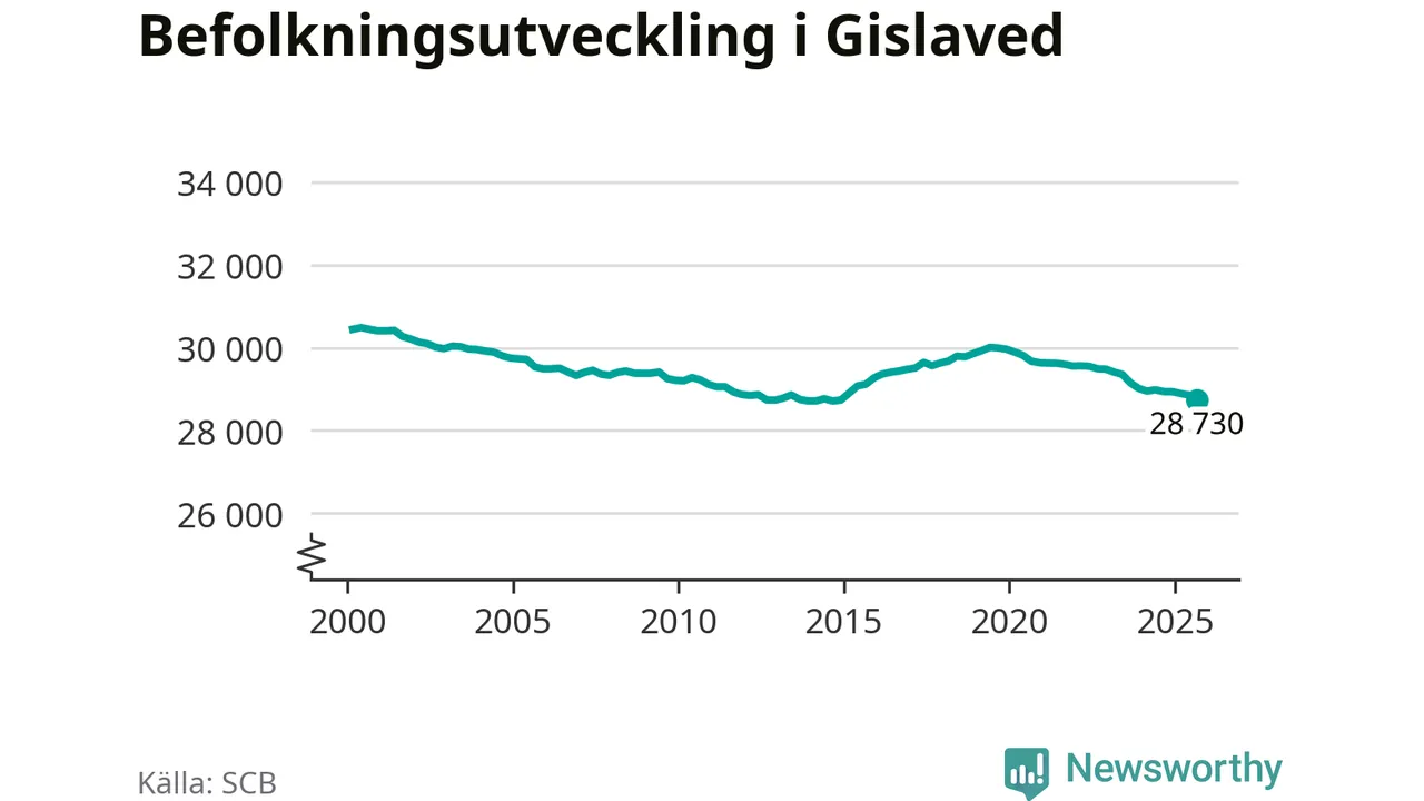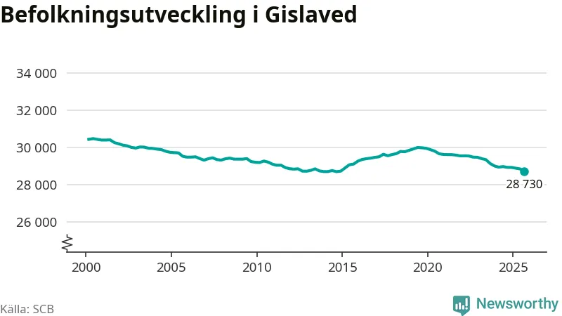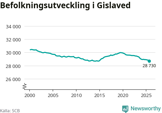 Befolkningen minskade i Gislaveds kommun under det tredje kvartalet 2025. Den 30 september bodde enligt SCB:s senaste siffror 28 730 personer i kommunen, vilket är 126 färre än i slutet av andra kvartalet. Minskningen är procentuellt sett en av de största i Jönköpings län.