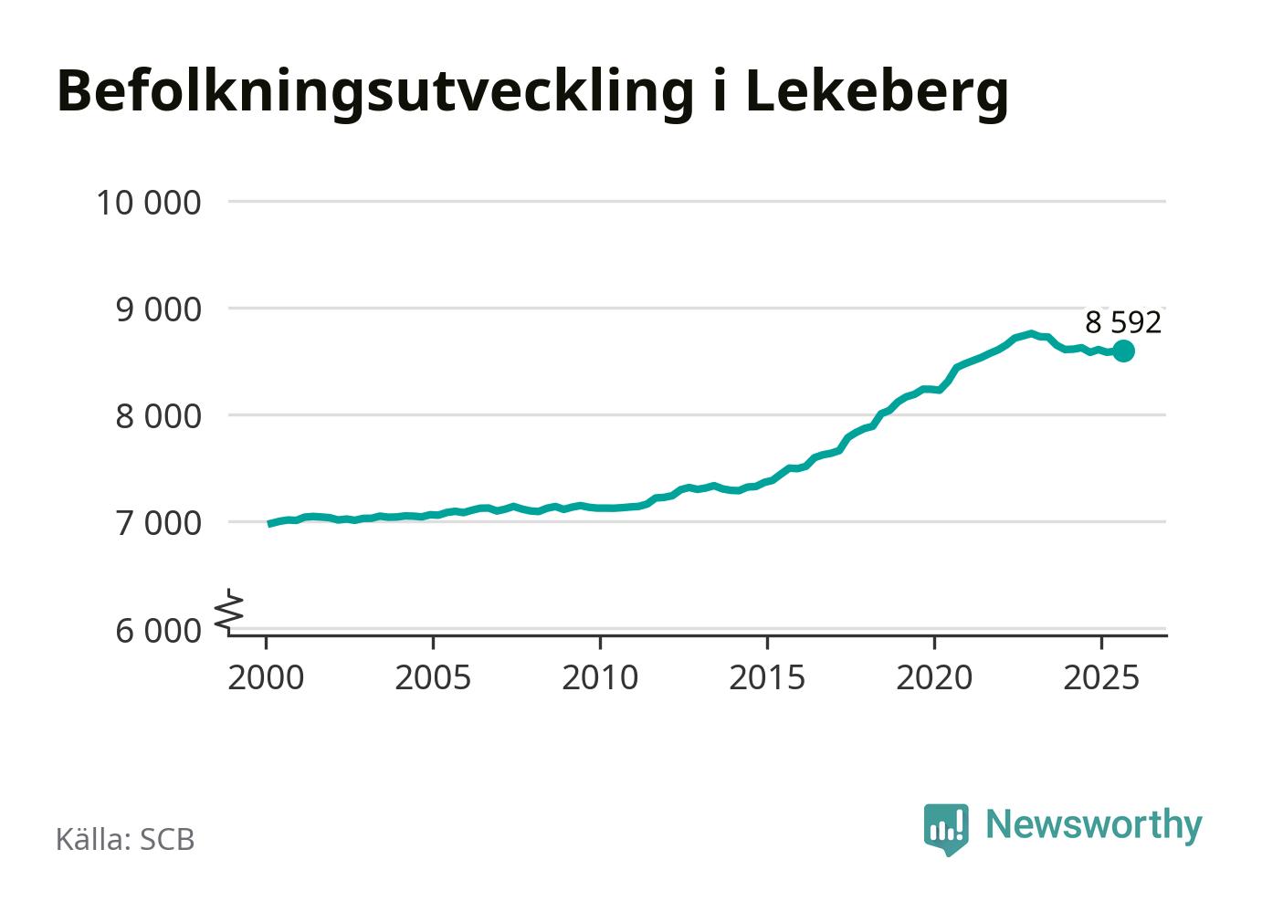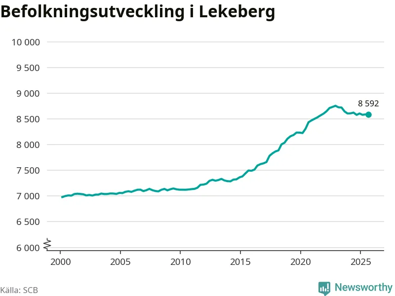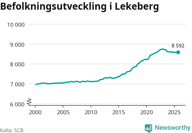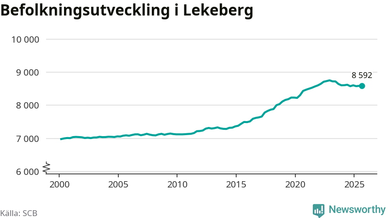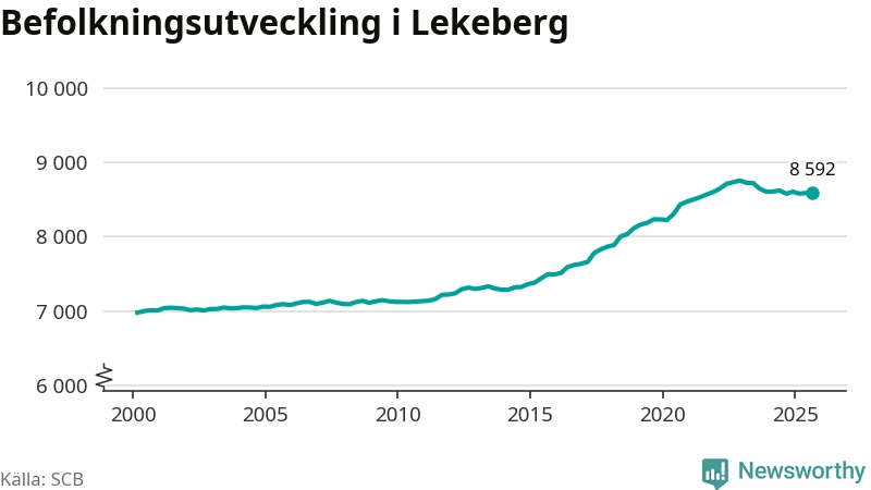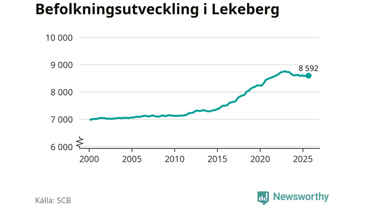 I slutet av tredje kvartalet 2025 bodde 8 592 personer i Lekebergs kommun, enligt SCB:s senaste siffror.
