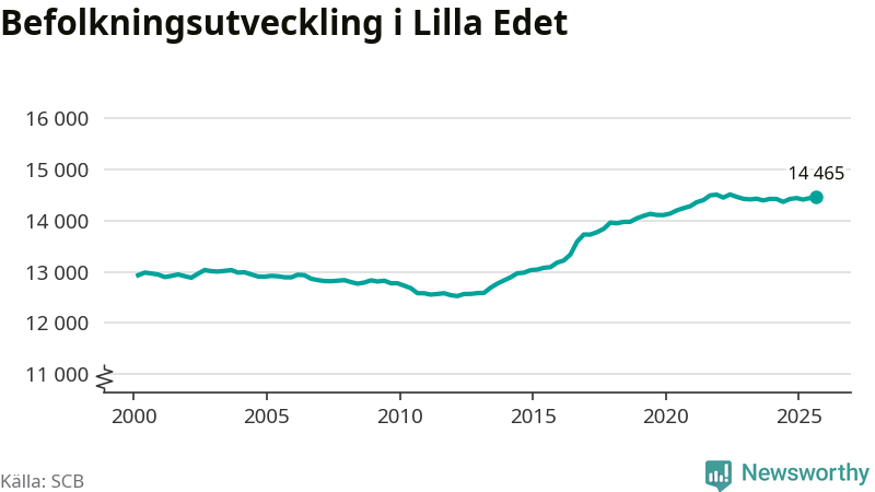 Befolkningen ökade i Lilla Edets kommun under det tredje kvartalet 2025. Den 30 september bodde enligt SCB:s senaste siffror 14 465 personer i kommunen, vilket är 24 fler än i slutet av andra kvartalet.