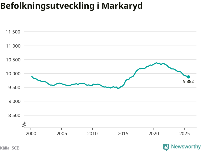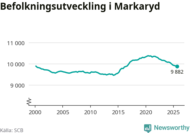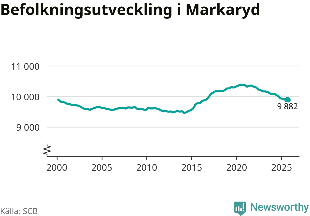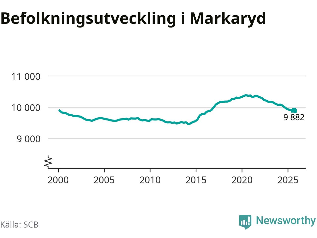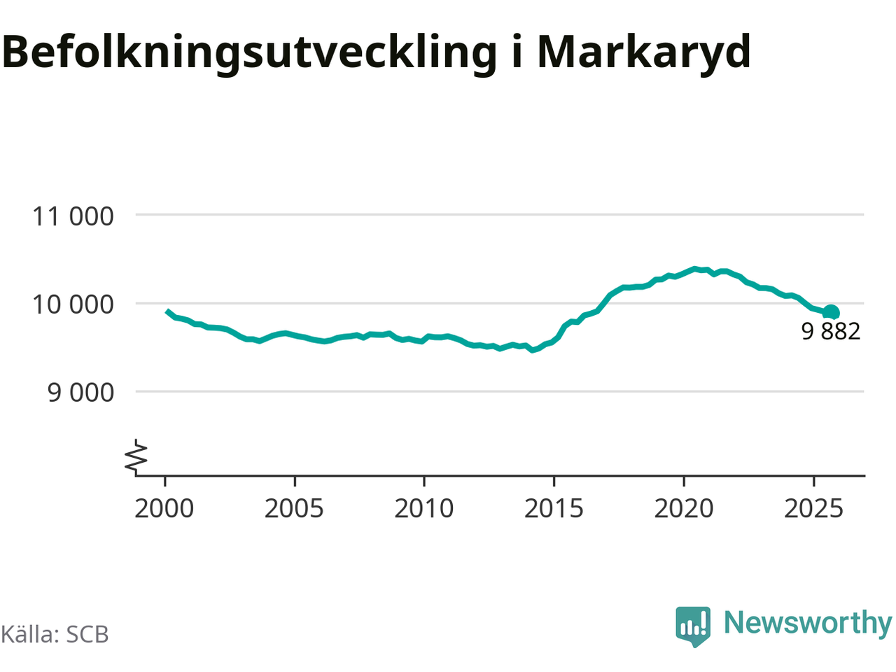Befolkningen minskade i Markaryds kommun under det tredje kvartalet 2025. Den 30 september bodde enligt SCB:s senaste siffror 9 882 personer i kommunen, vilket är 16 färre än i slutet av andra kvartalet.