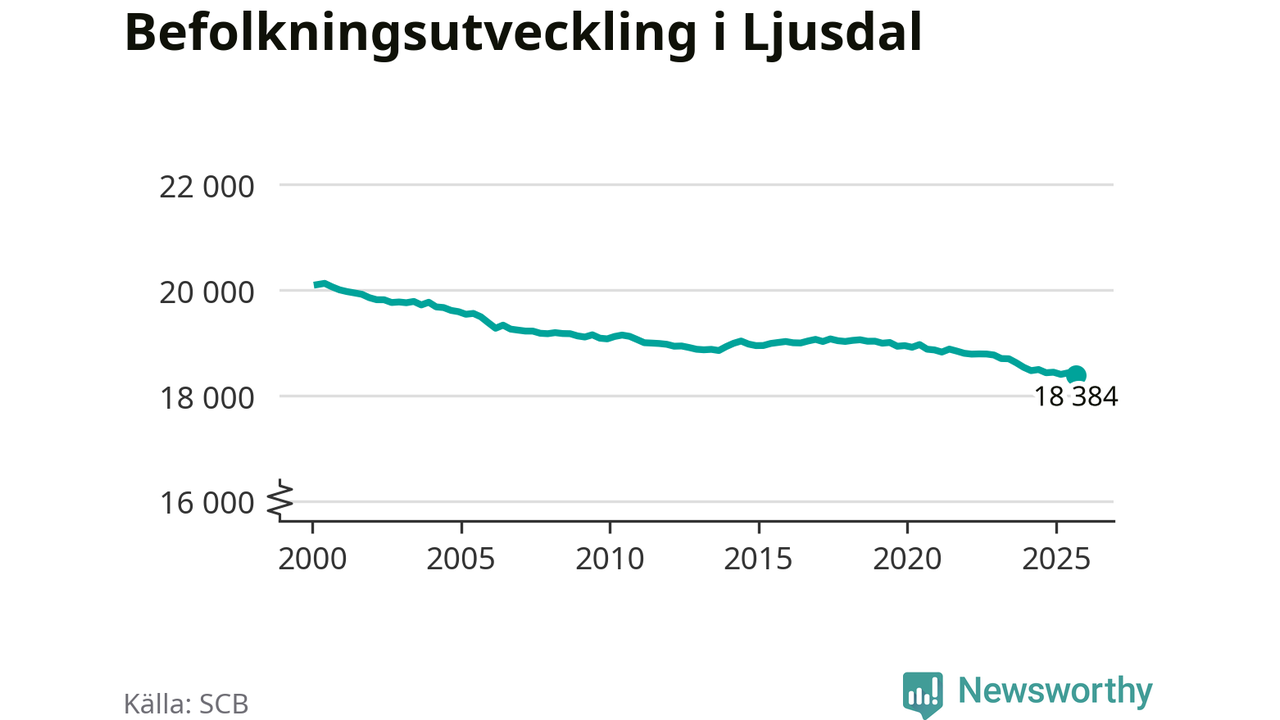 Befolkningen minskade i Ljusdals kommun under det tredje kvartalet 2025. Den 30 september bodde enligt SCB:s senaste siffror 18 384 personer i kommunen, vilket är 50 färre än i slutet av andra kvartalet.
